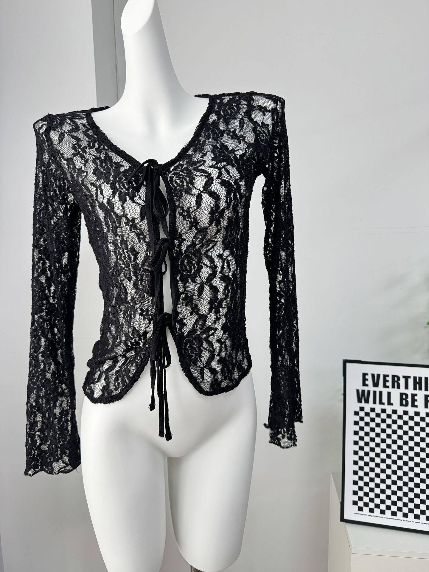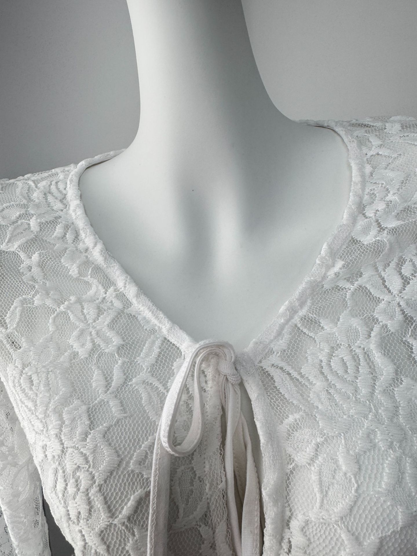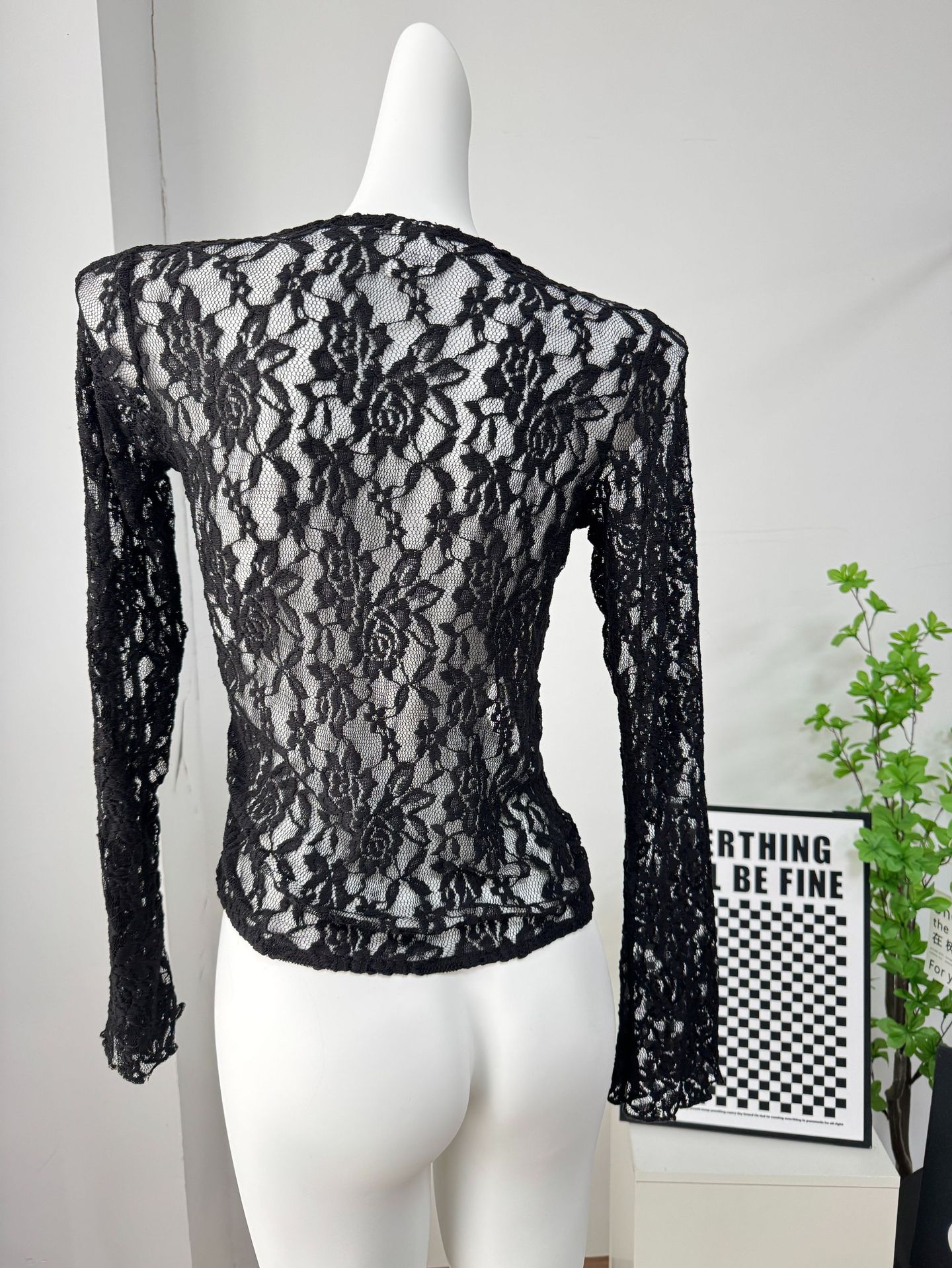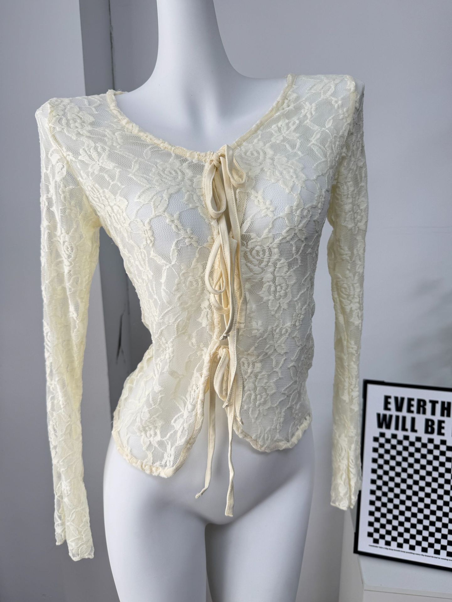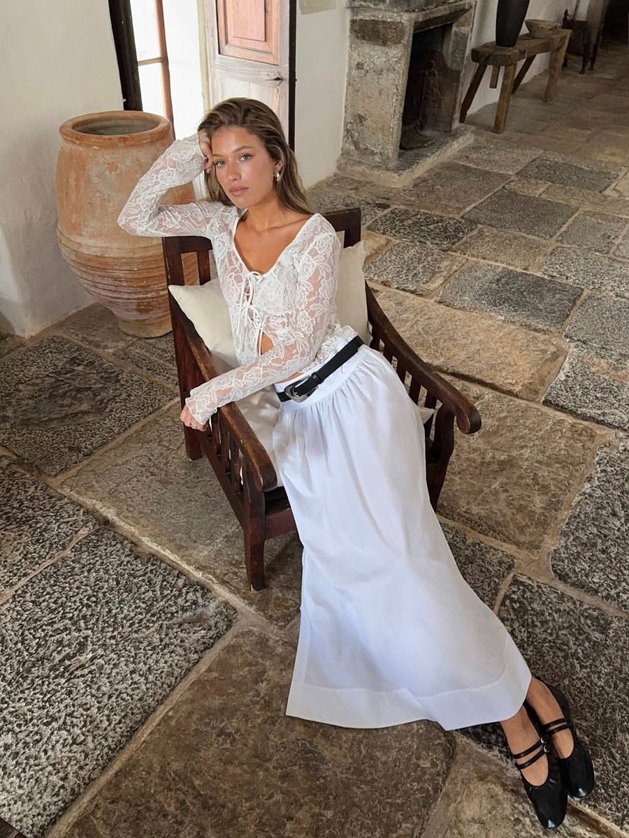 여성을위한 틈새 디자인 중공 흰색 긴팔 레이스 셔츠 여름 새로운 슬림 피트 니트 레이스 탑스토어 가기