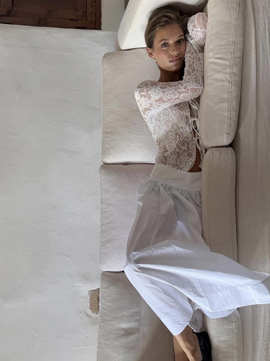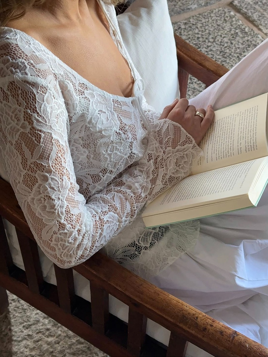 여성을위한 틈새 디자인 중공 흰색 긴팔 레이스 셔츠 여름 새로운 슬림 피트 니트 레이스 탑