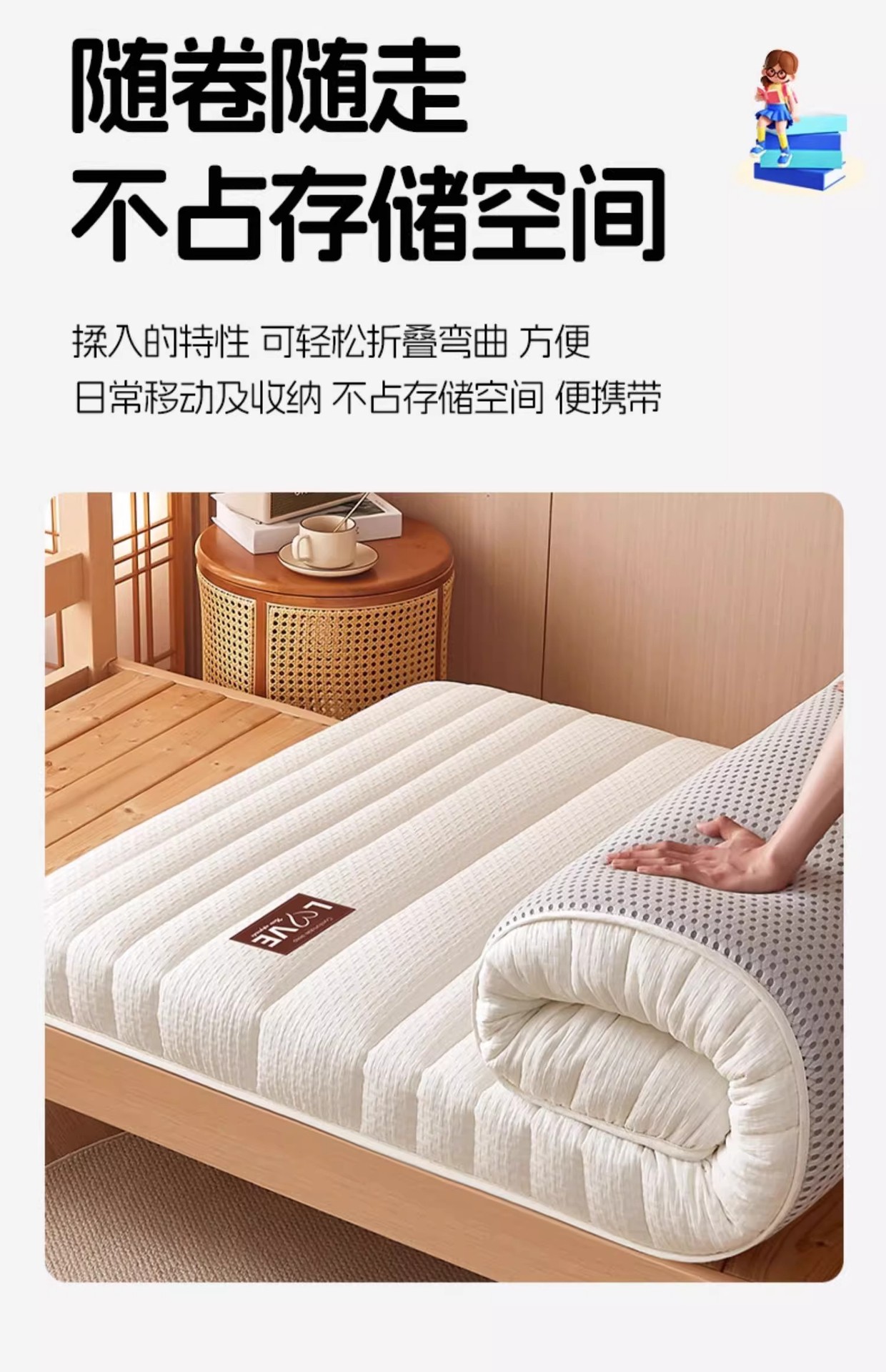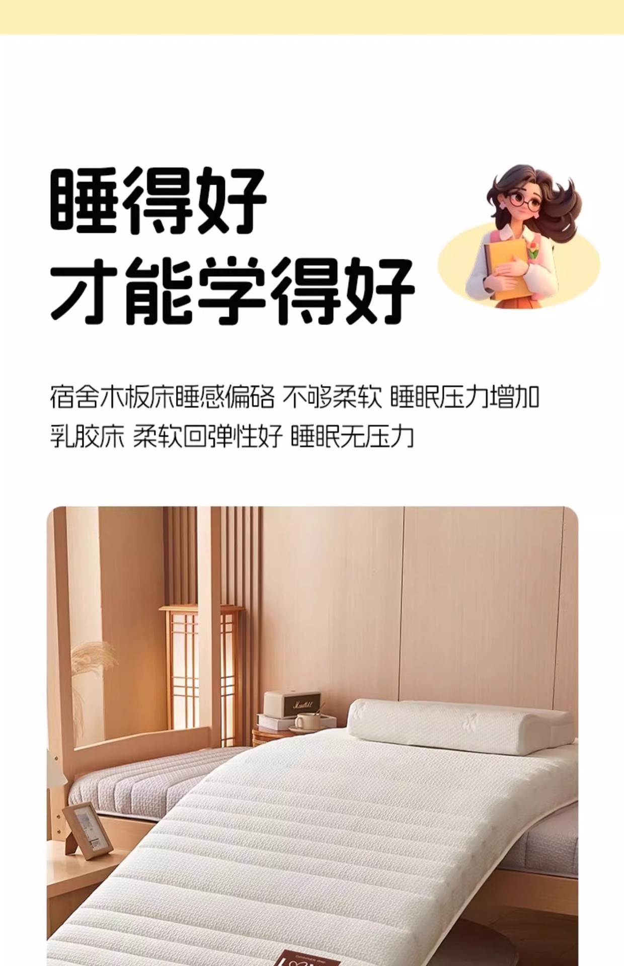 2026년 신형 학생용 라텍스 매트리스 패드, 임대 기숙사/1인 침실용 두꺼운 매트리스 커버