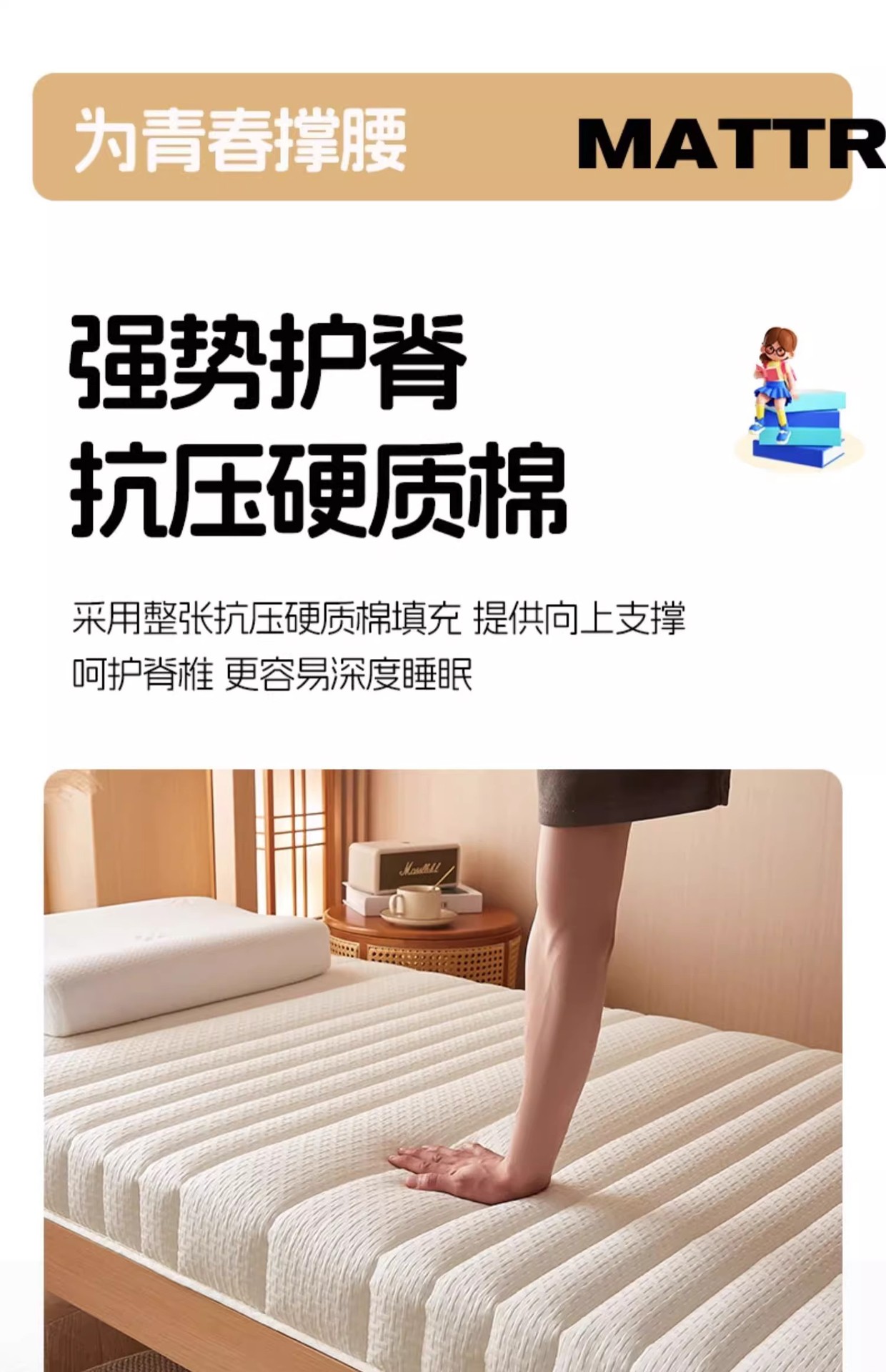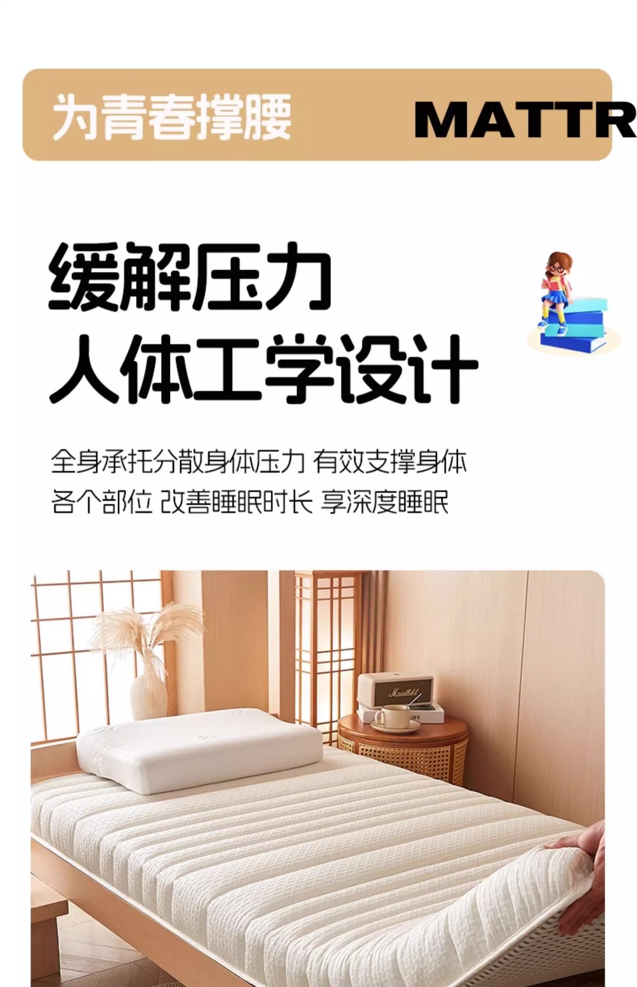 • [붕괴 거부] 바이탈리티 그린의 두께는 약 6cm입니다. [업그레이드되고 두꺼워진 라텍스 충전재]