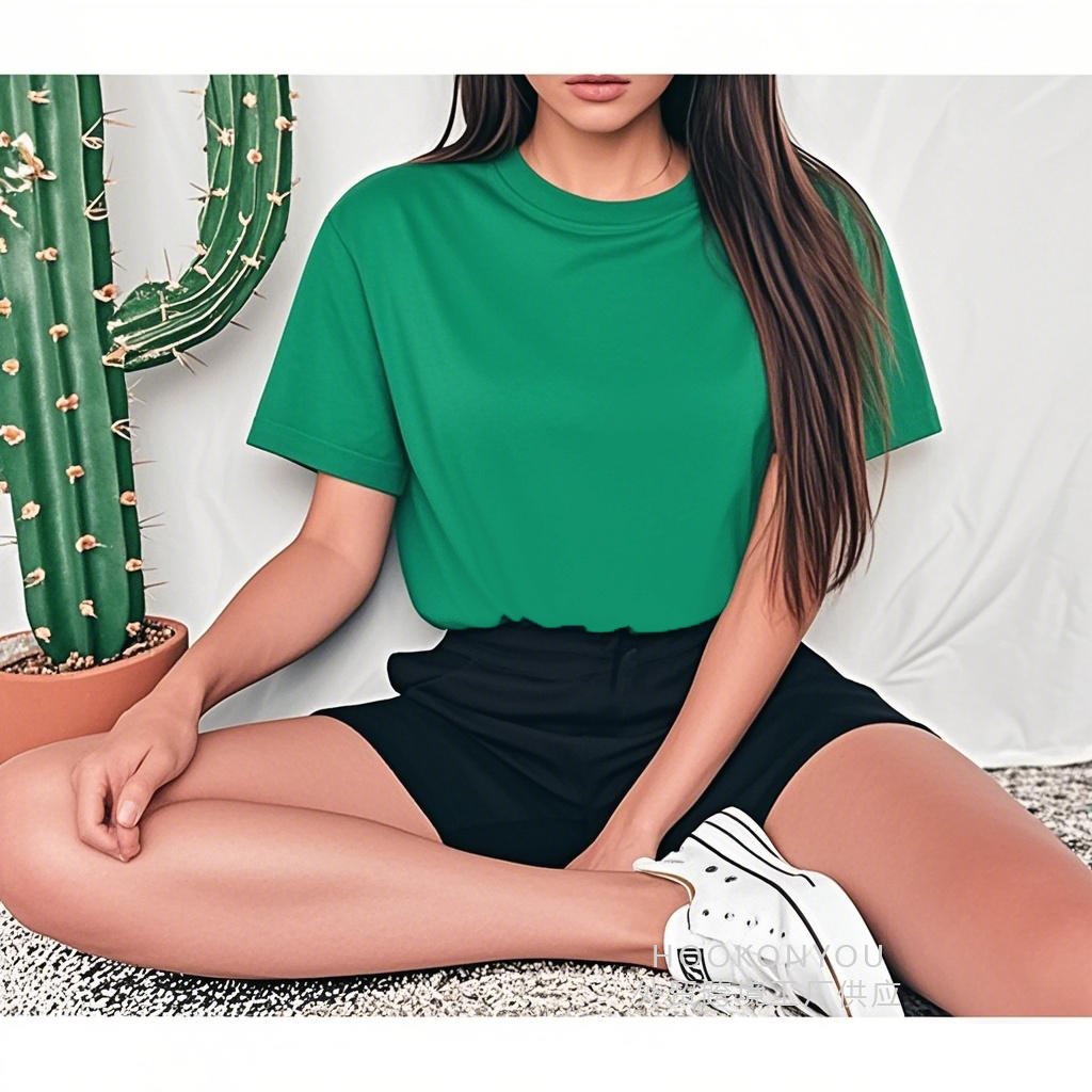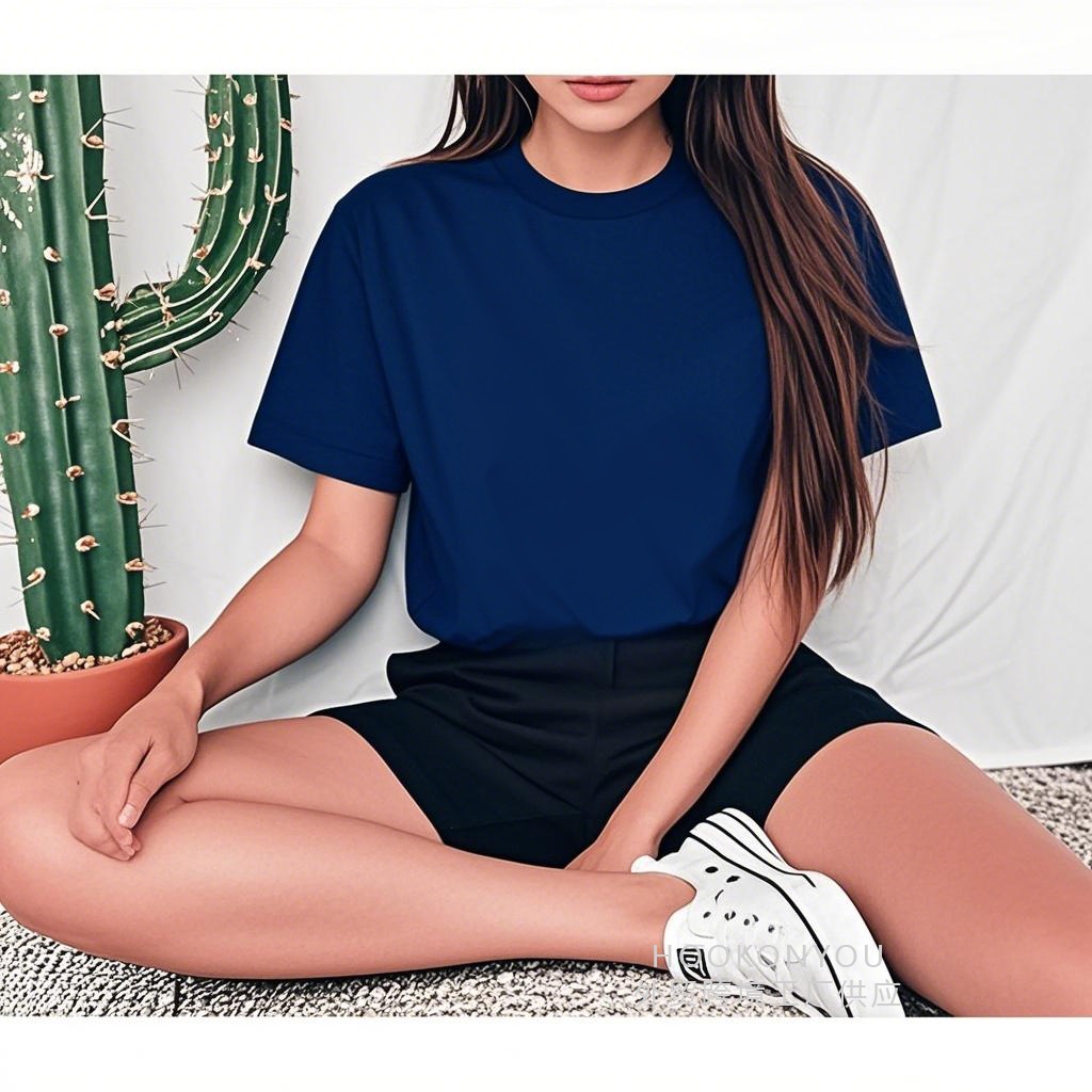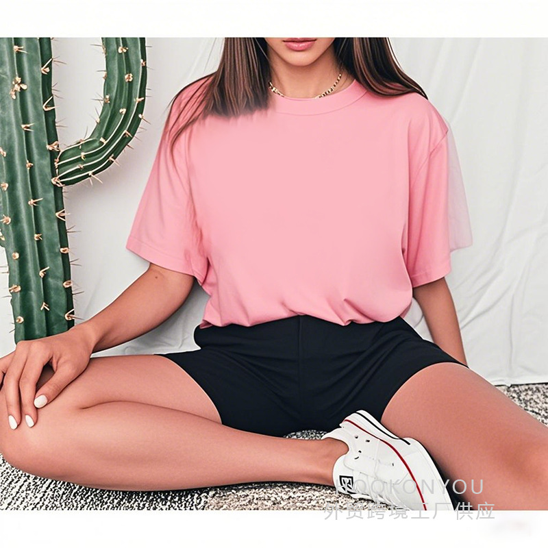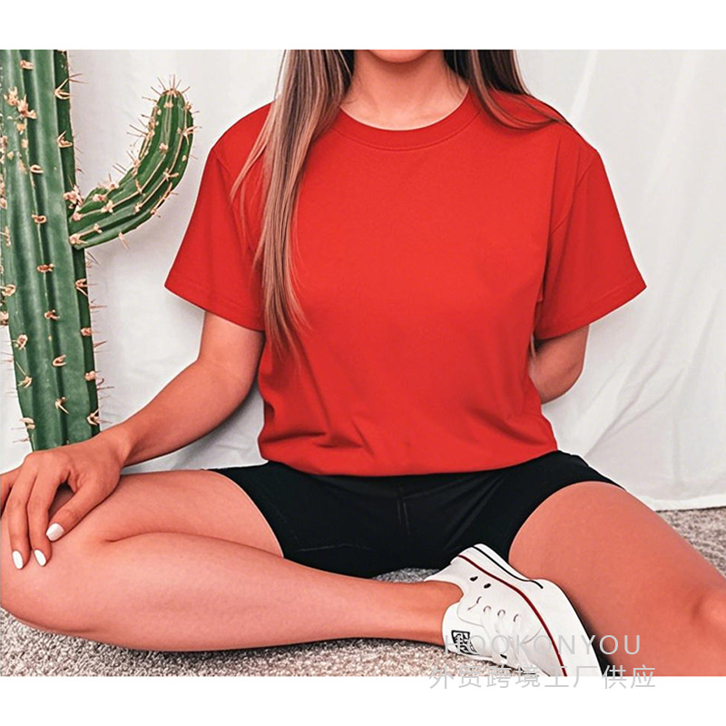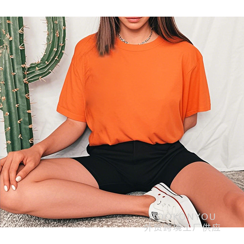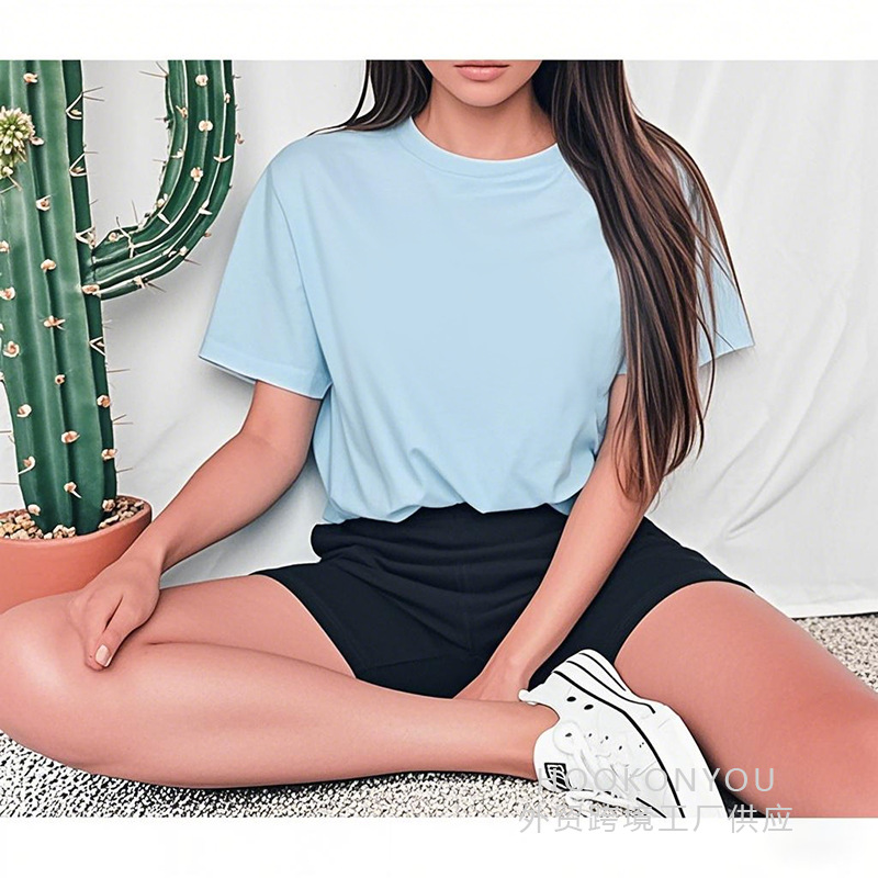 2025 캐주얼 솔리드 컬러 유럽 사이즈 반팔 여성 티셔츠 빈 버전 레귤러 탑 솔리드 컬러 티셔츠 코튼 대외 무역스토어 가기