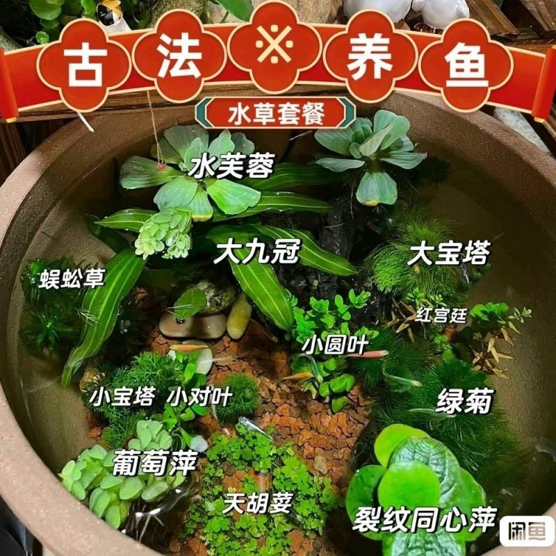 고대 방식의 물고기 및 수초 생태 원주민 수조 산소화 게으른 식물 붉은 연잎 연잎 수초 조합 패키지스토어 가기