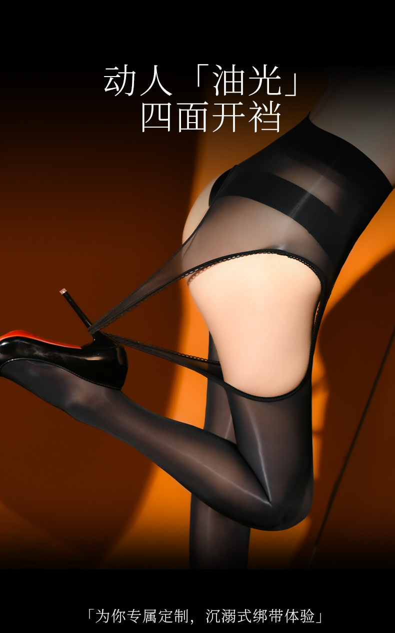 마유 사방 오픈 가랑이 슬링 일체형 양말, 광택이 나는 긴 검은색 여성용 스타킹, 걸림 방지 팬티 스타킹, 사방 오픈 얇은 양말스토어 가기