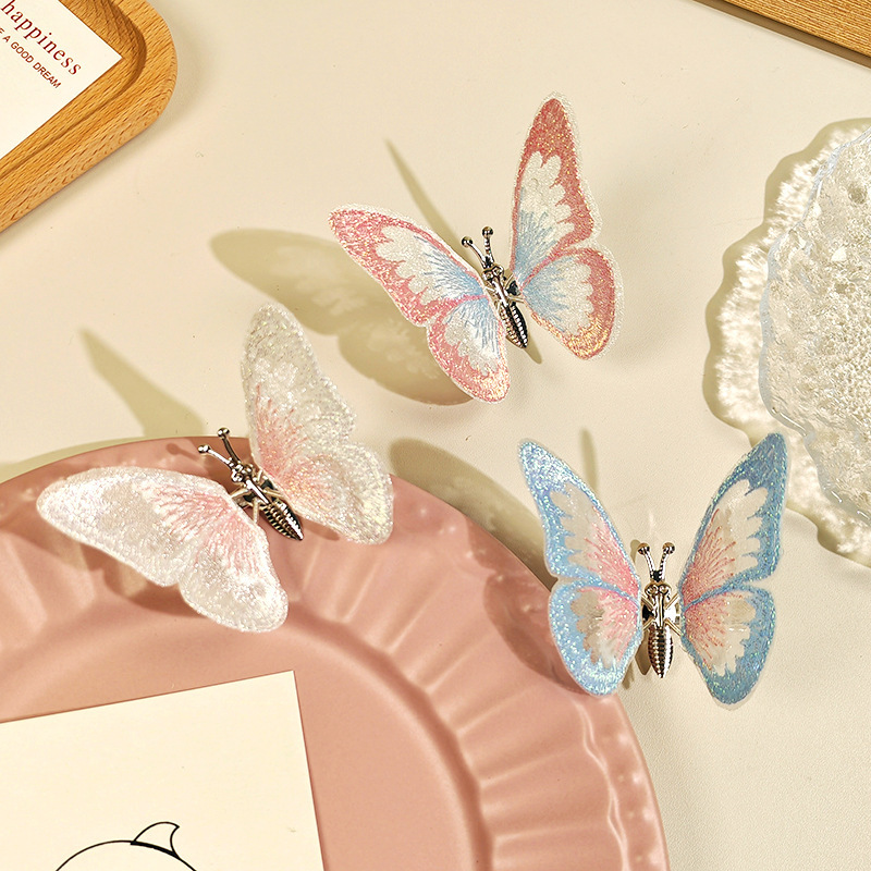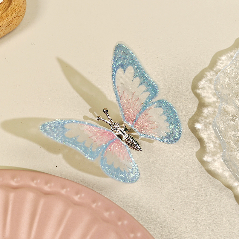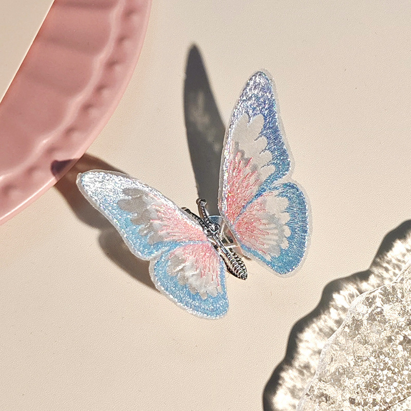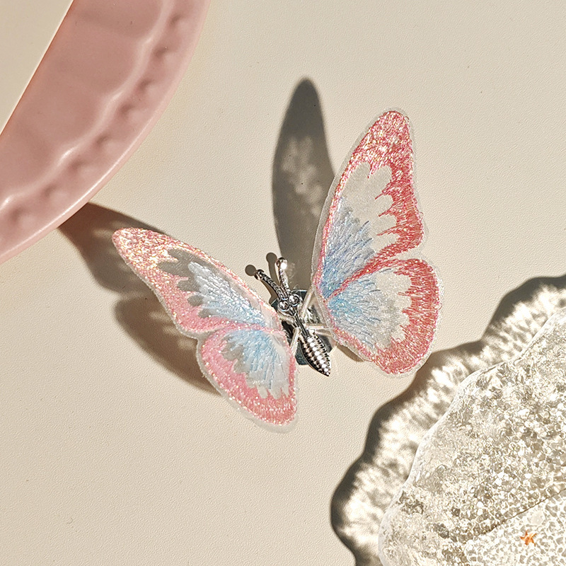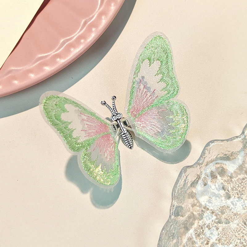 움직이는 나비 머리핀 자동차 자수 여름 어린이 귀여운 소녀 골동품 머리 장식 헤어 액세서리 Hanfu 머리핀
