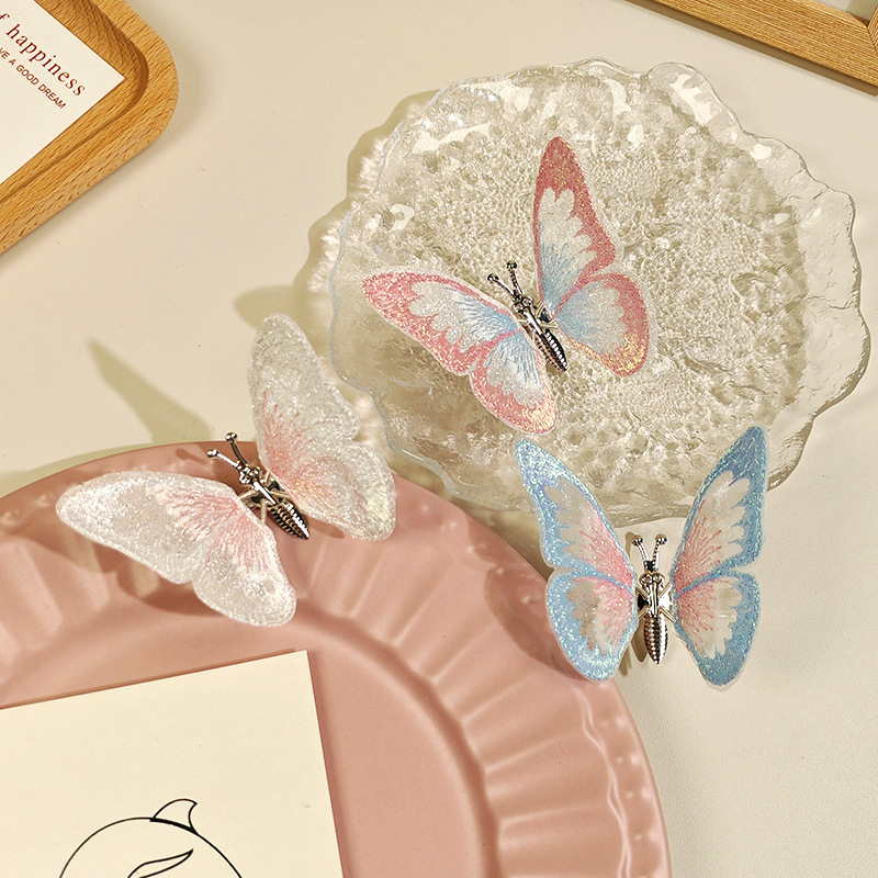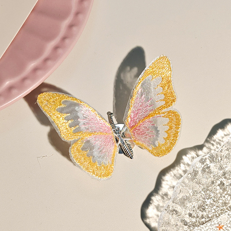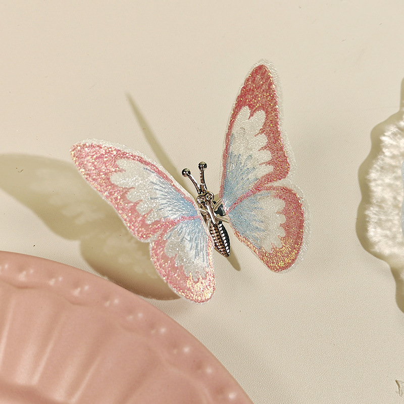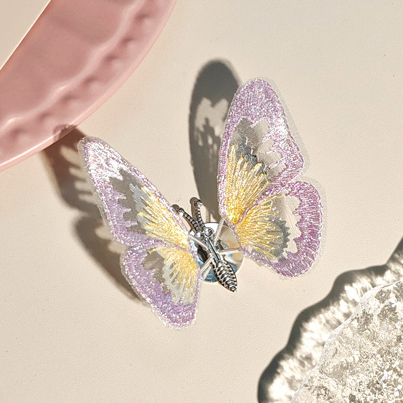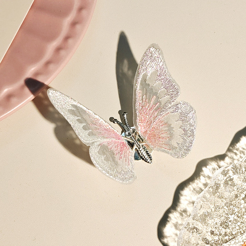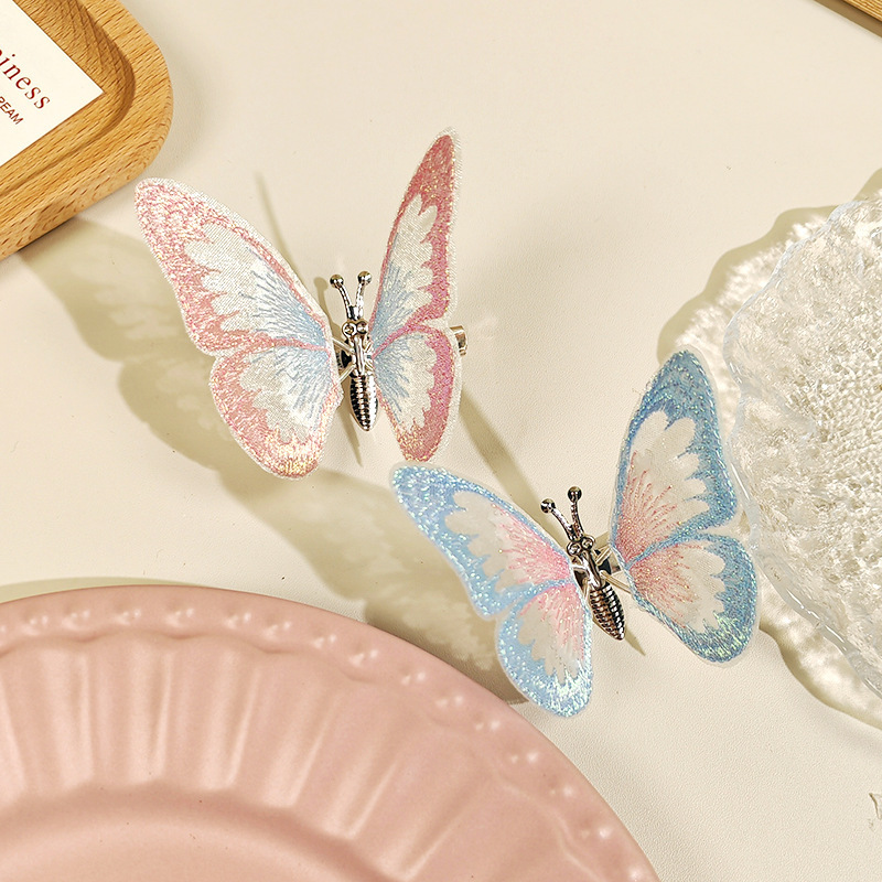 움직이는 나비 머리핀 자동차 자수 여름 어린이 귀여운 소녀 골동품 머리 장식 헤어 액세서리 Hanfu 머리핀