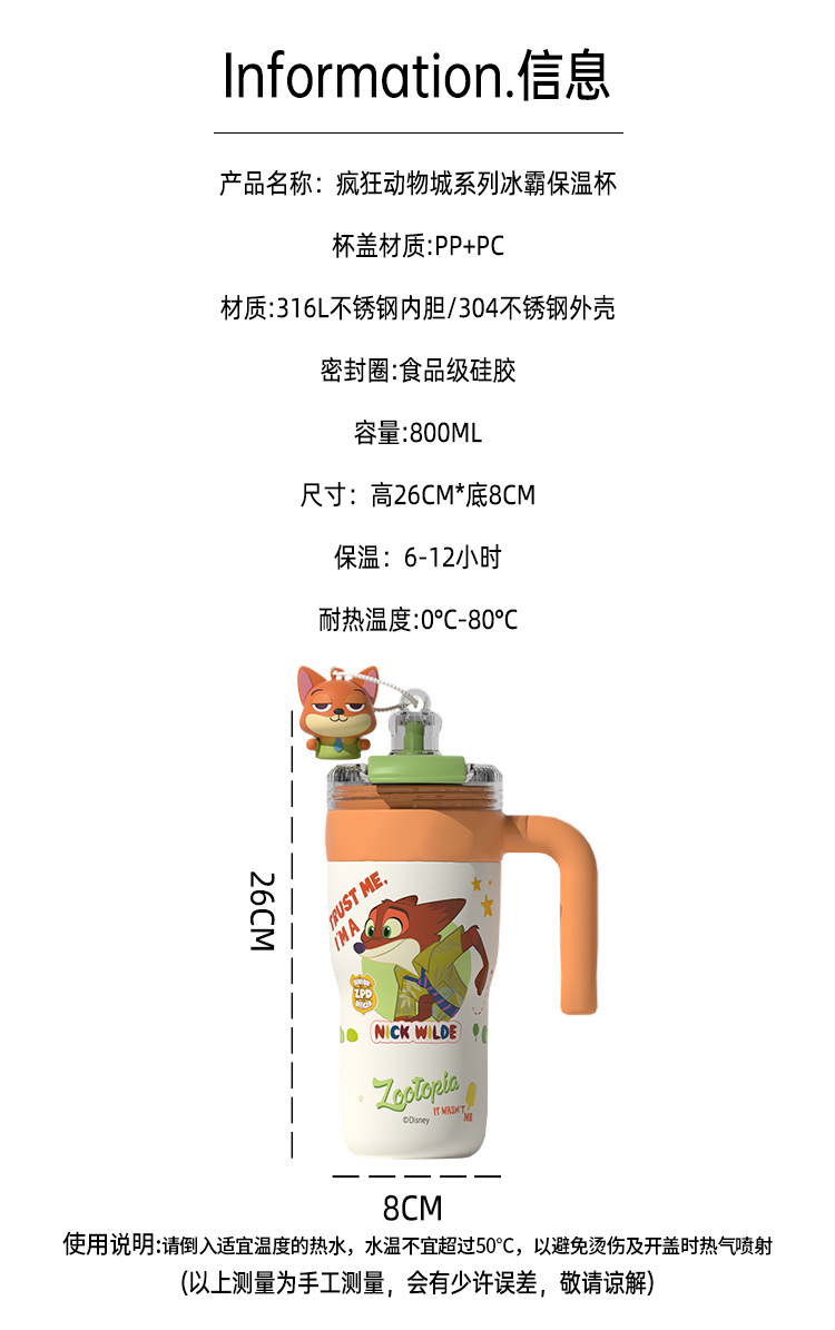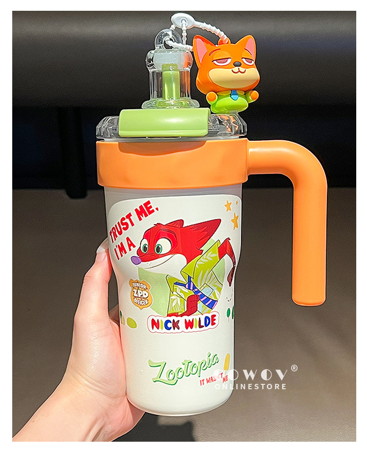 Zootopia Judy Nick 보온병 컵 여성용 대용량 커플 워터 컵 사무실 밀짚 컵 고급스러운
