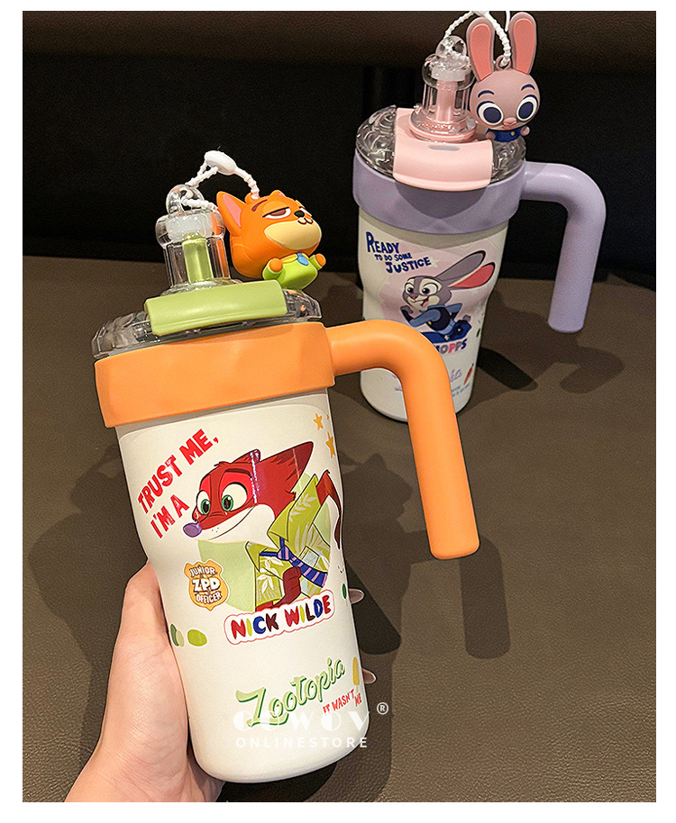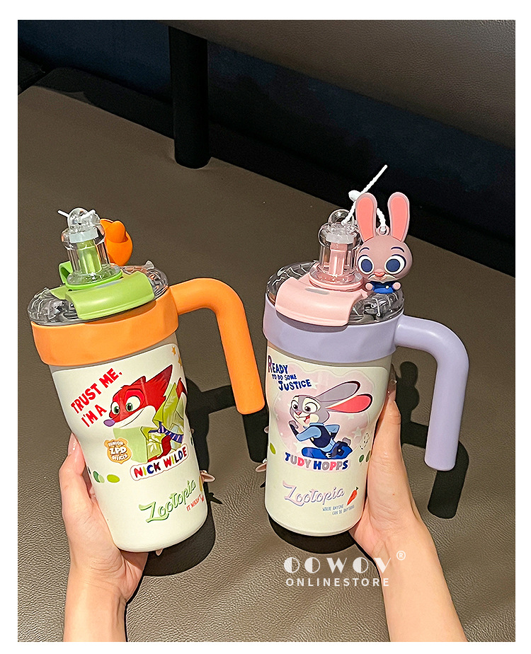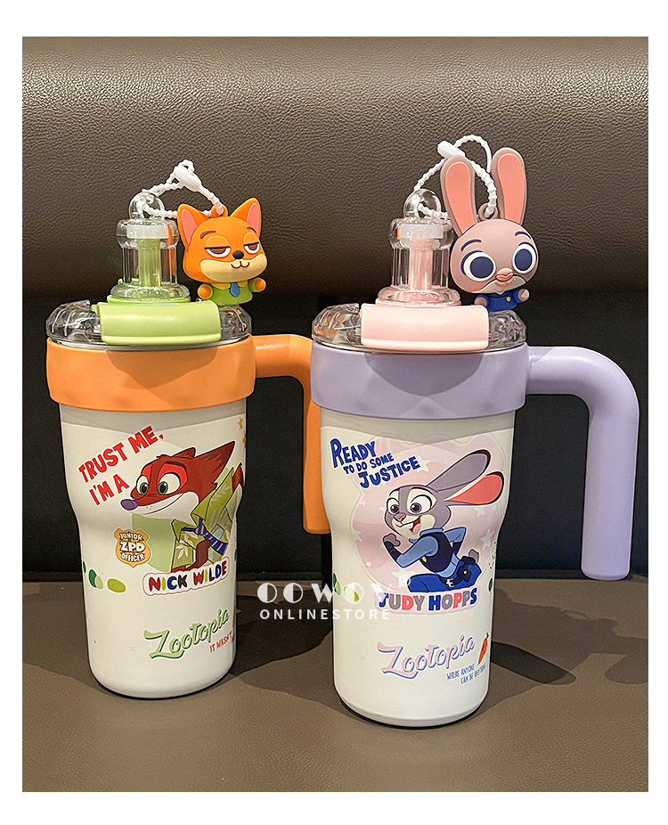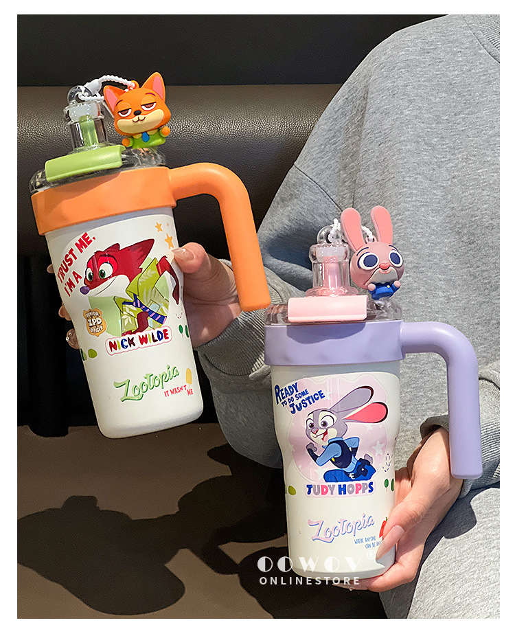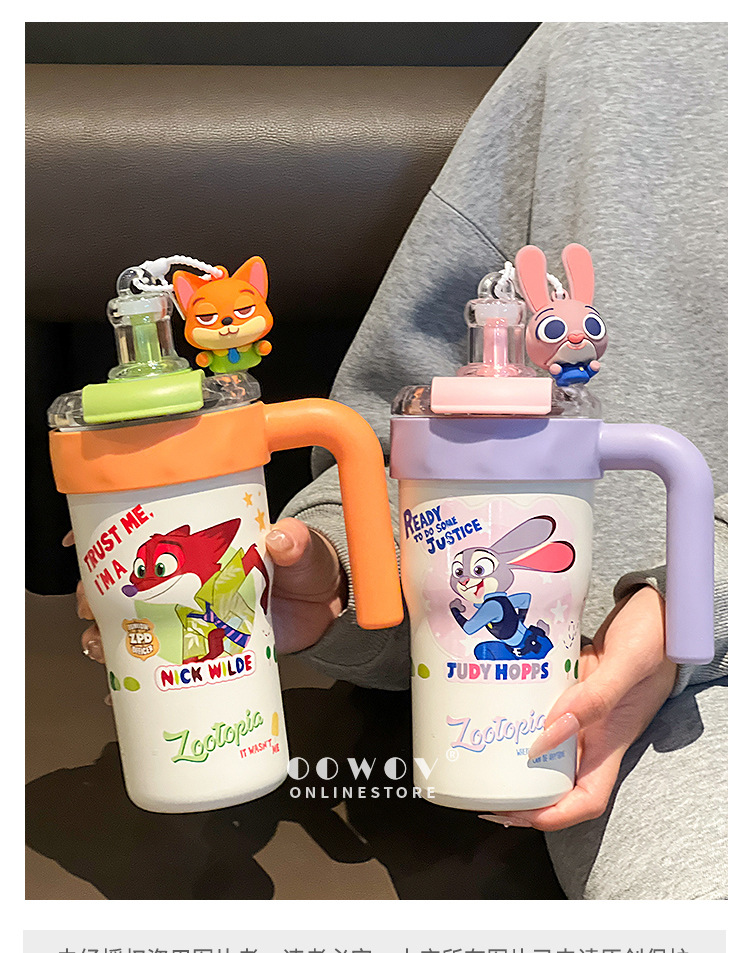 Zootopia Judy Nick 보온병 컵 여성용 대용량 커플 워터 컵 사무실 밀짚 컵 고급스러운스토어 가기