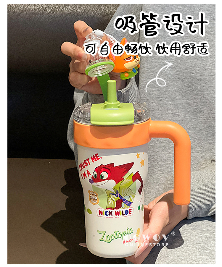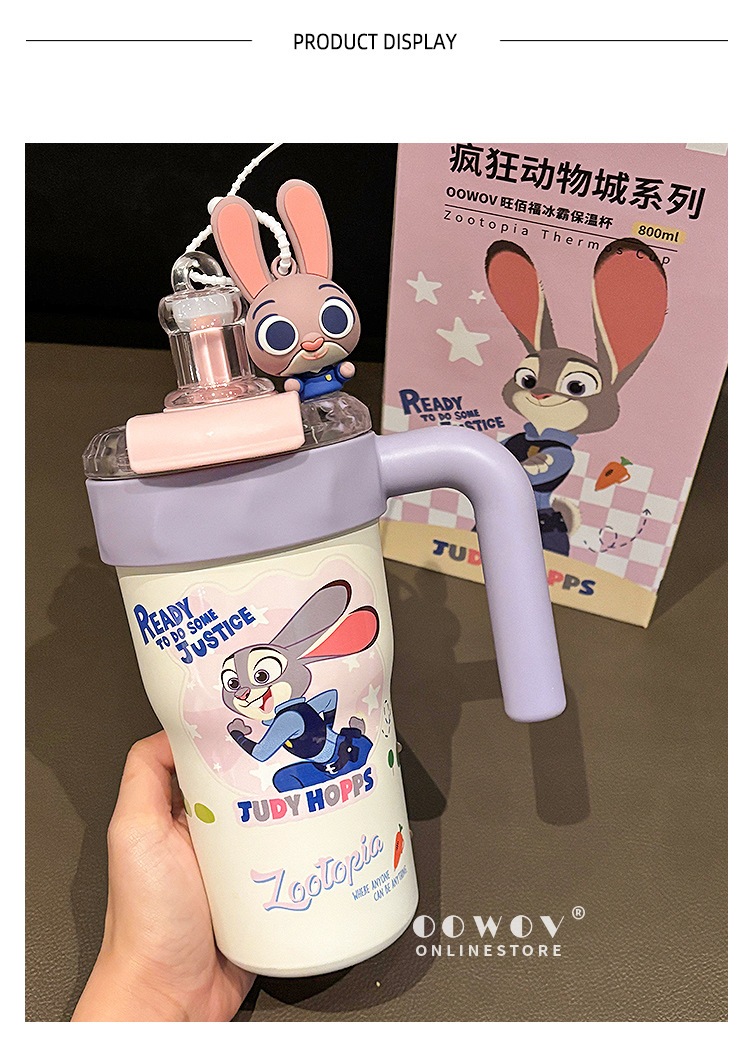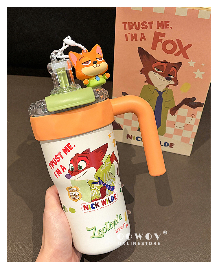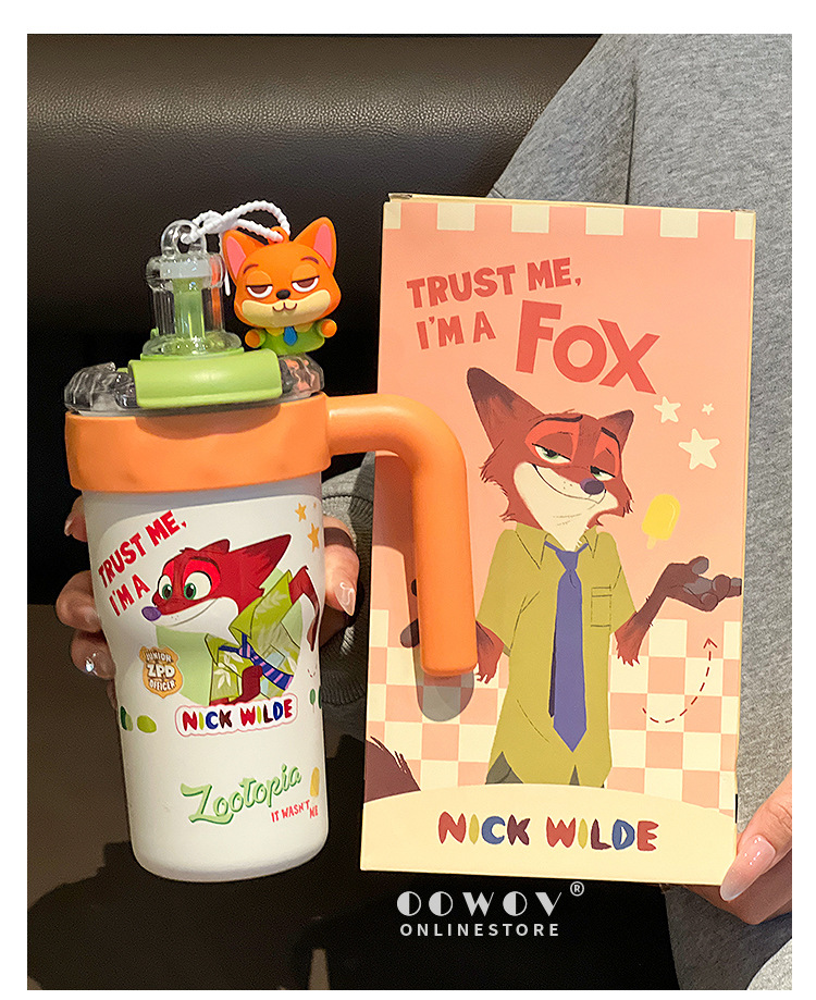 Zootopia Judy Nick 보온병 컵 여성용 대용량 커플 워터 컵 사무실 밀짚 컵 고급스러운스토어 가기