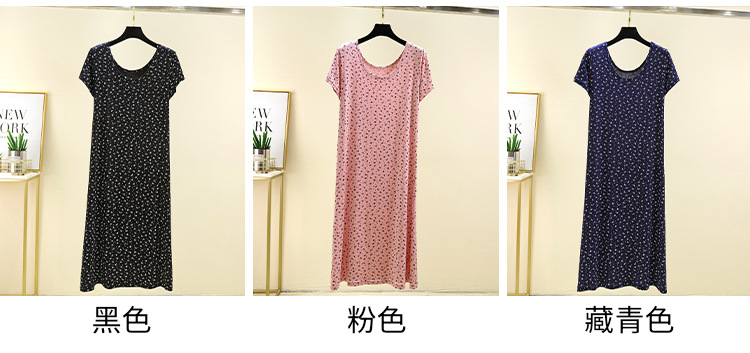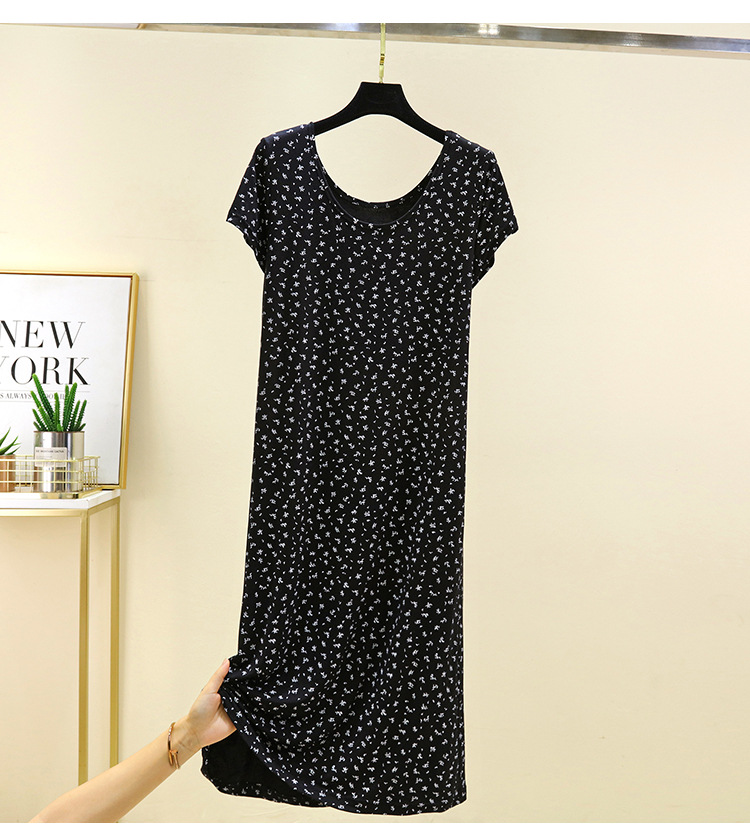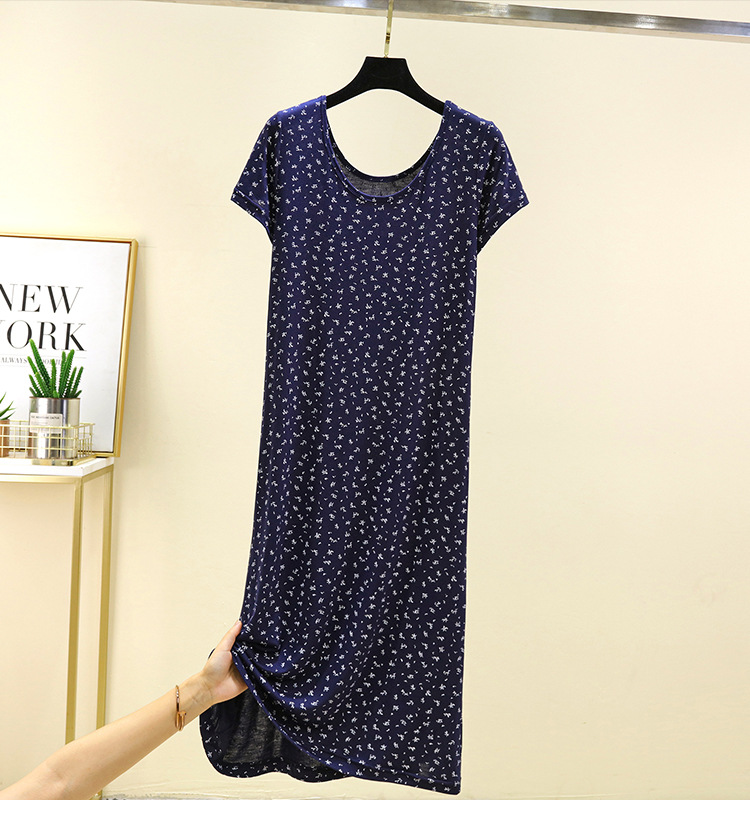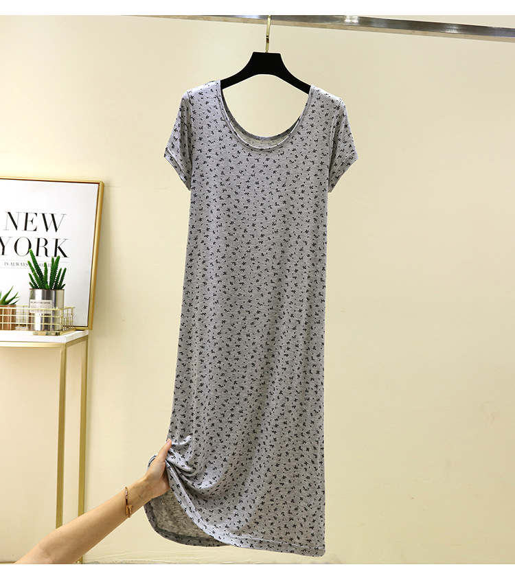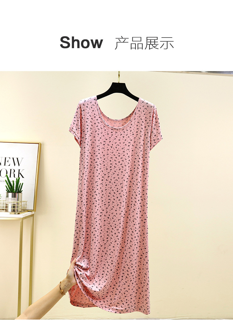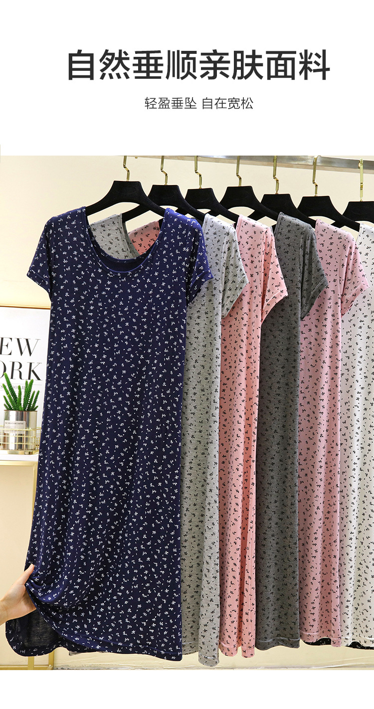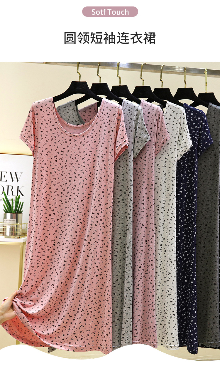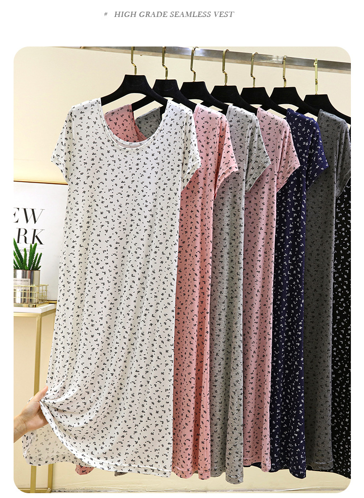 여성을위한 모달 꽃 반팔 잠옷 여름 얇은 홈 드레스 대형 루즈 캐주얼 라운드 넥 롱 스커트스토어 가기