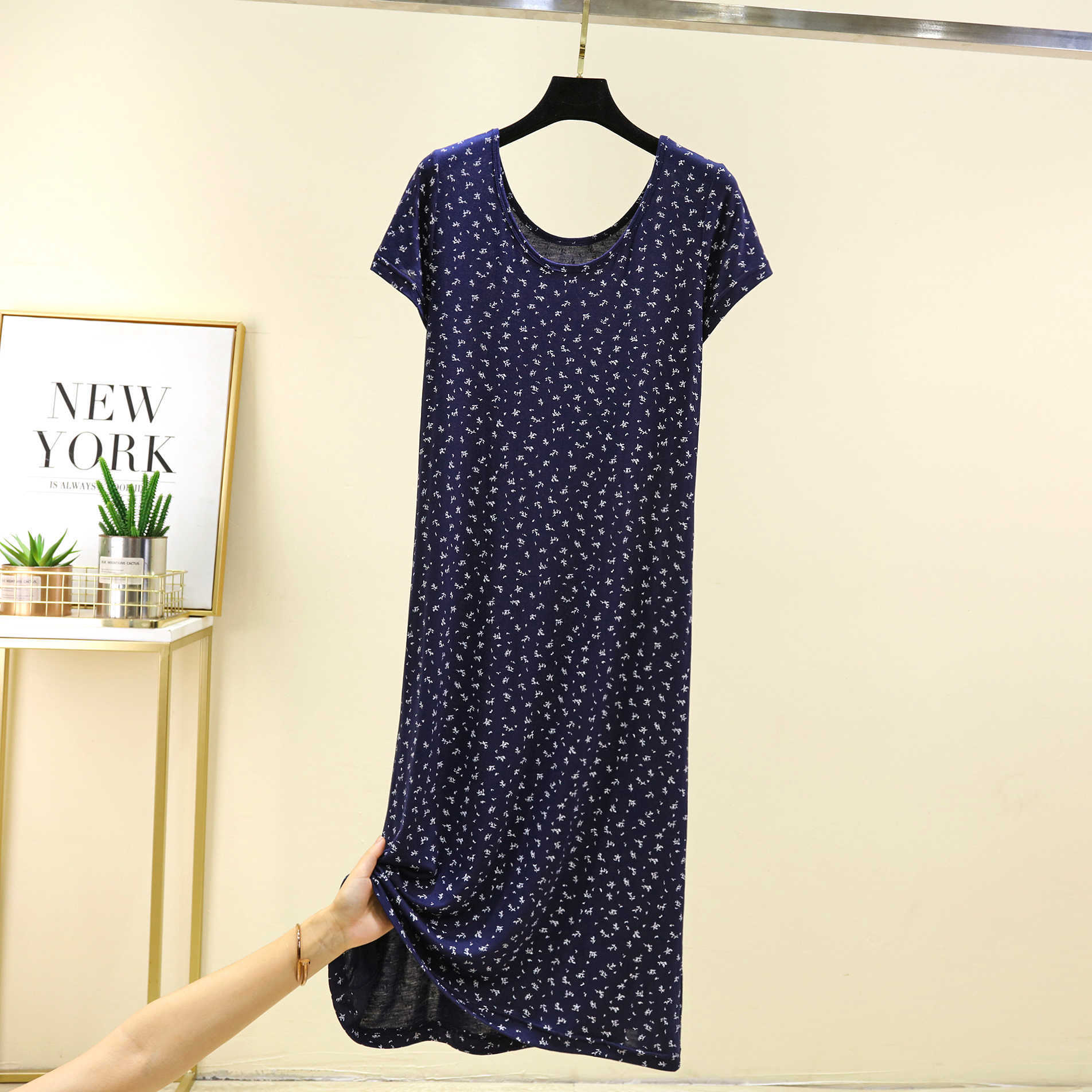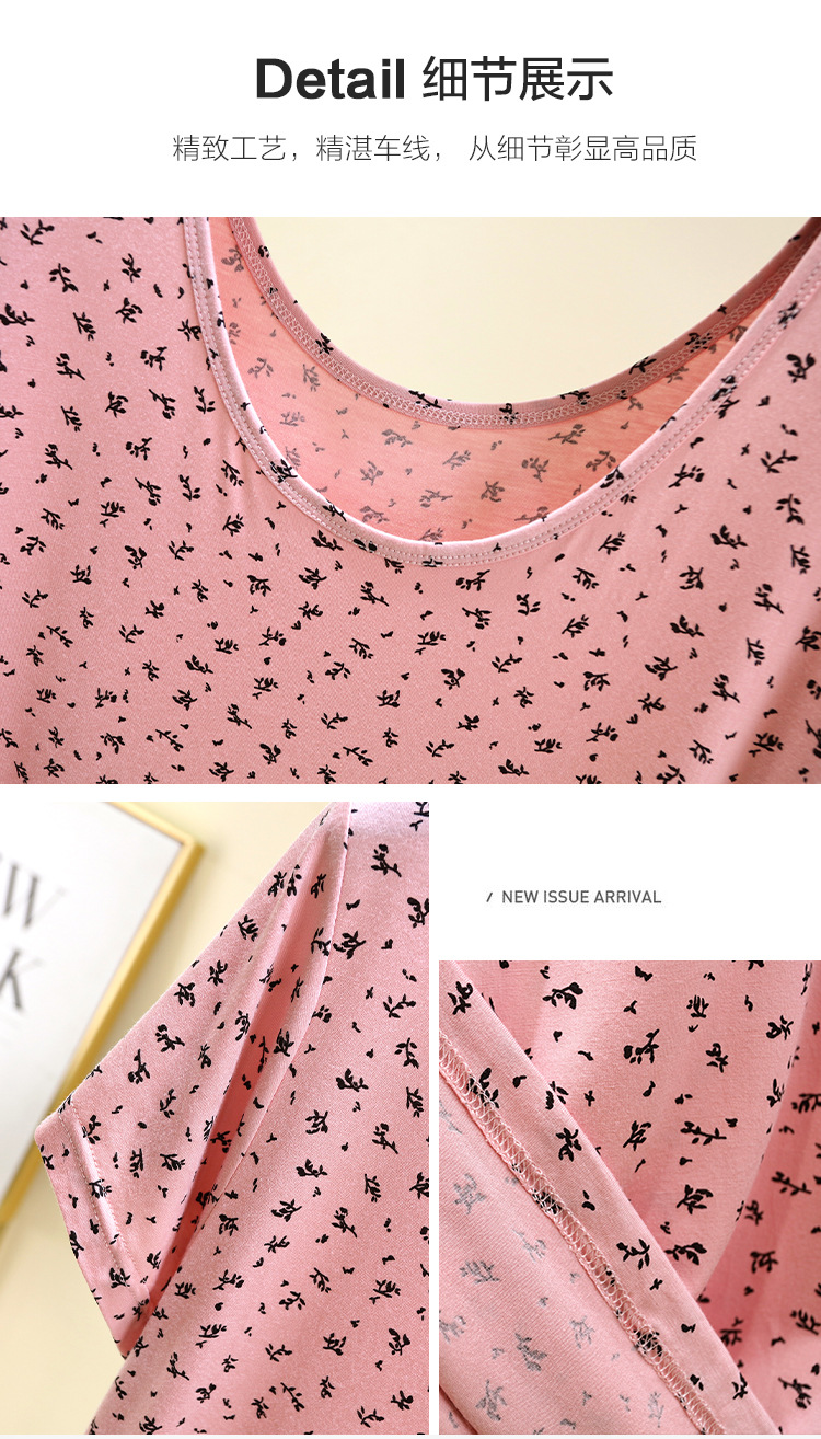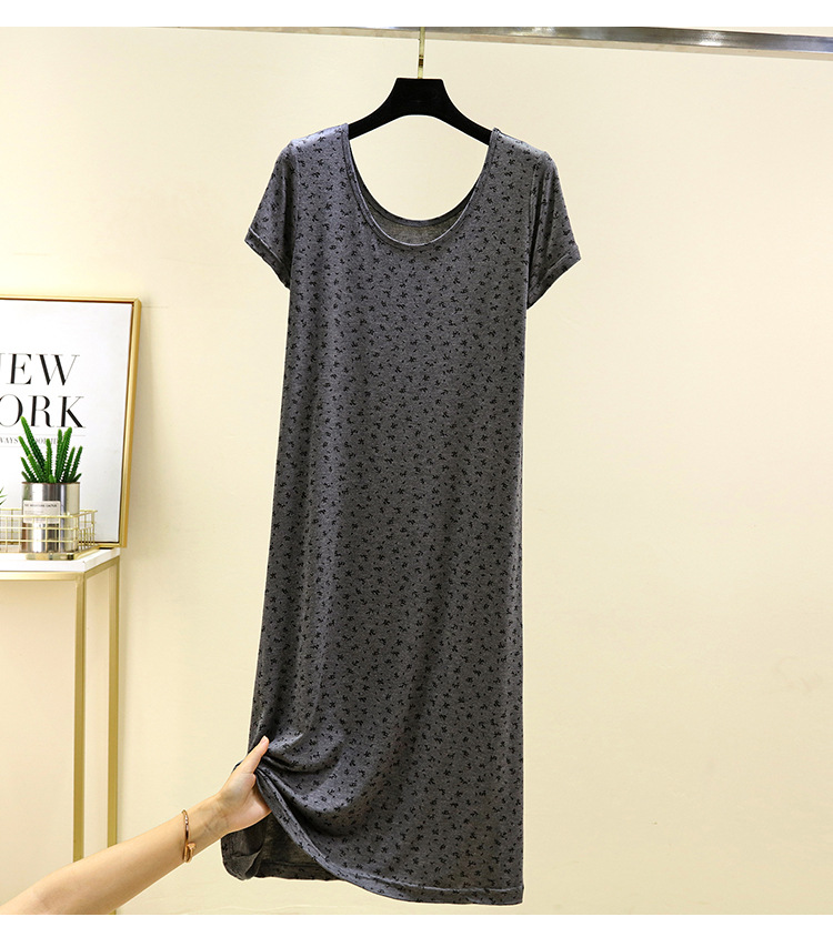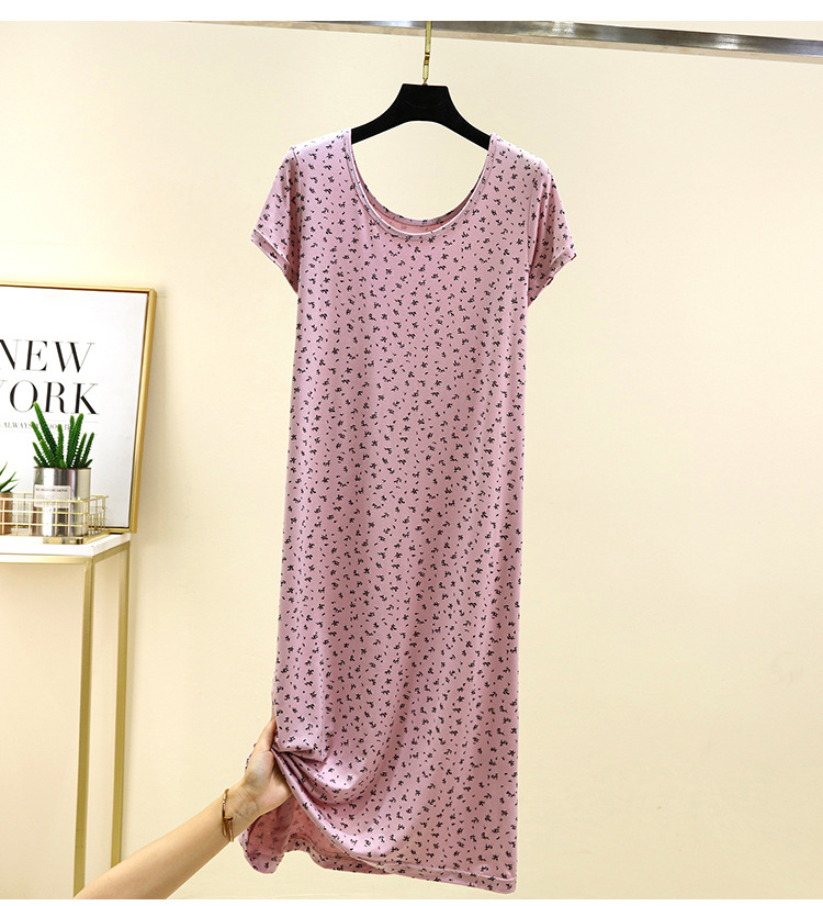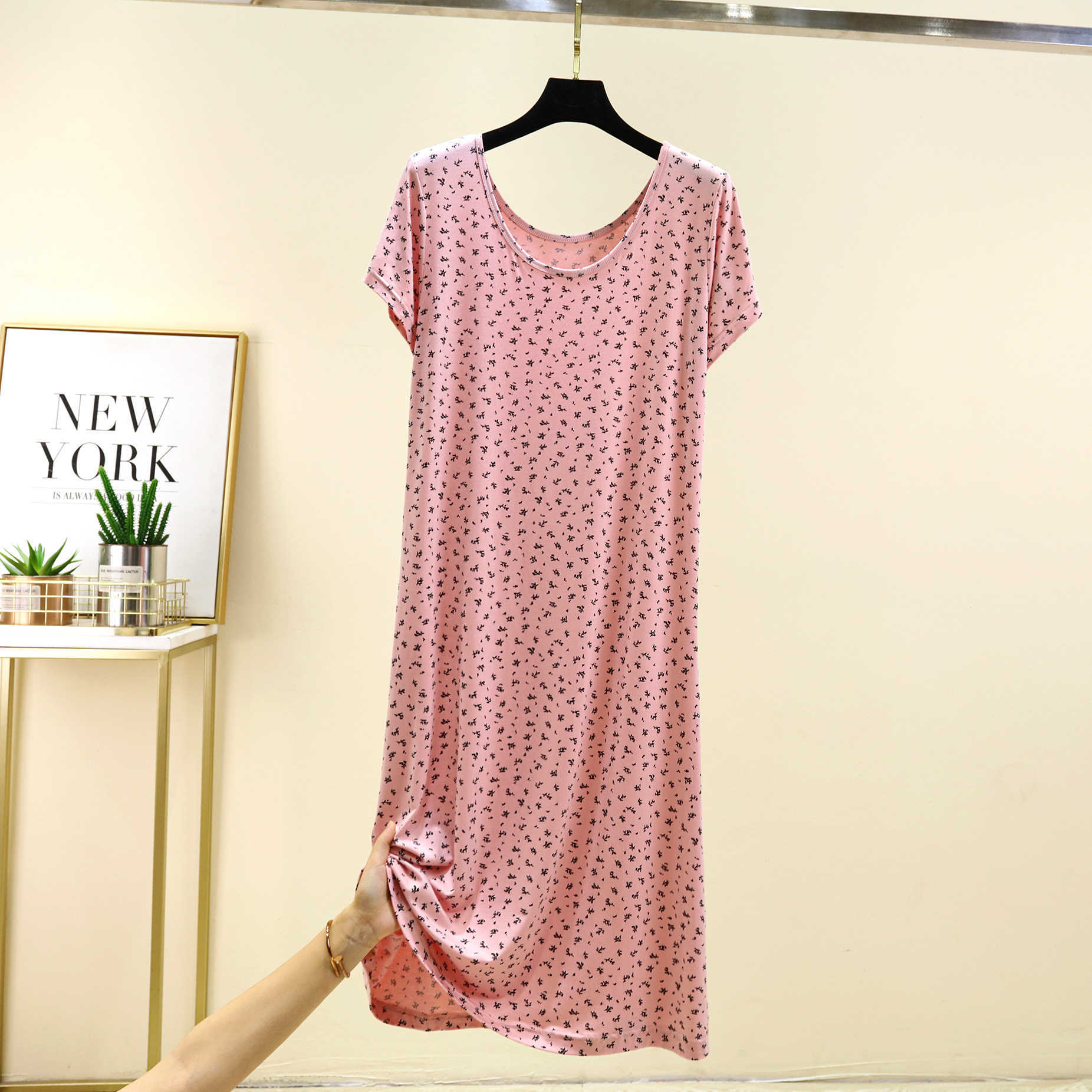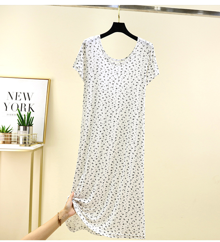 여성을위한 모달 꽃 반팔 잠옷 여름 얇은 홈 드레스 대형 루즈 캐주얼 라운드 넥 롱 스커트스토어 가기