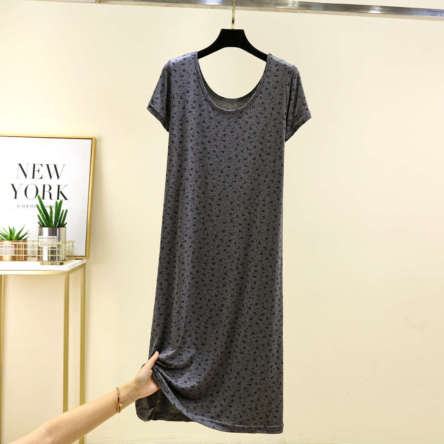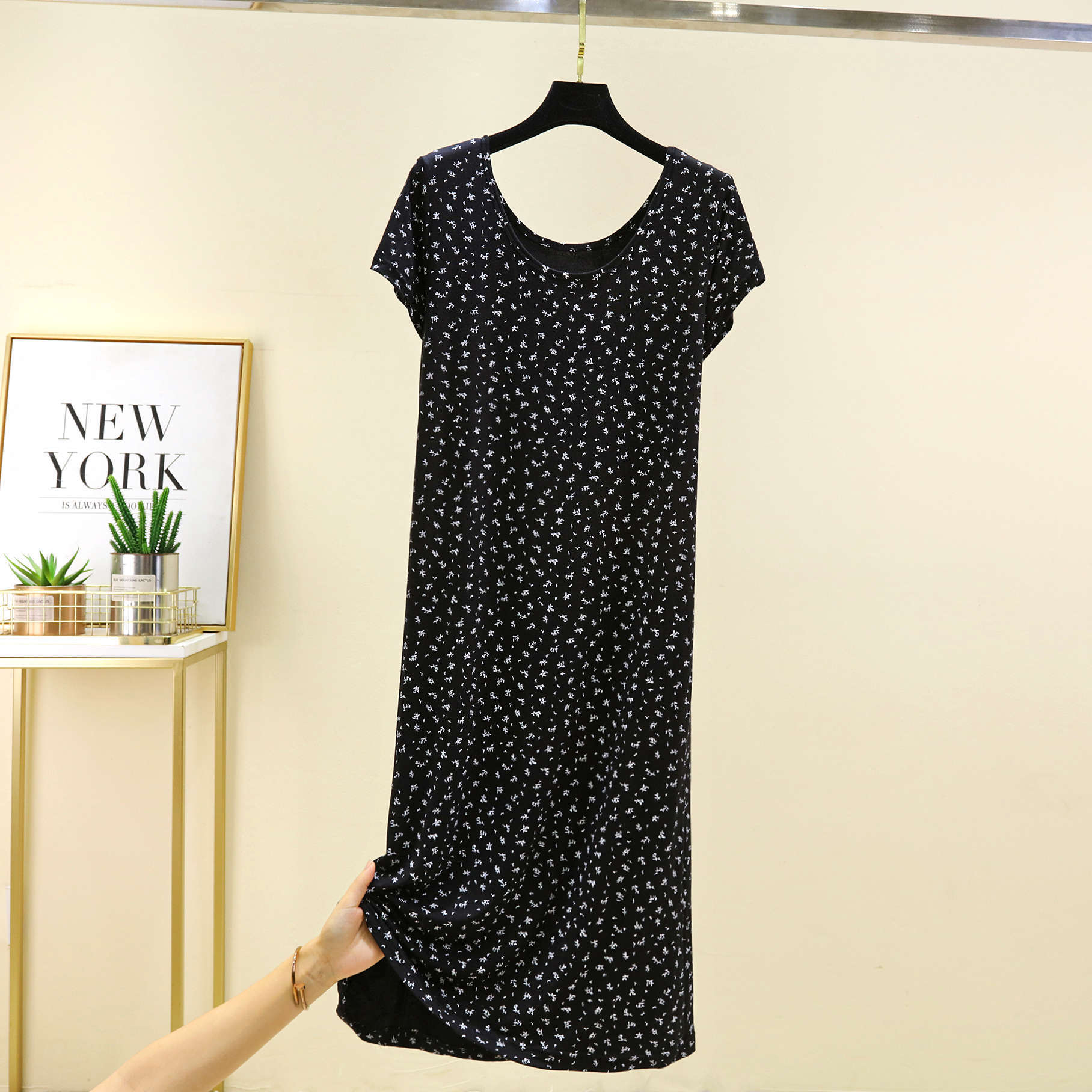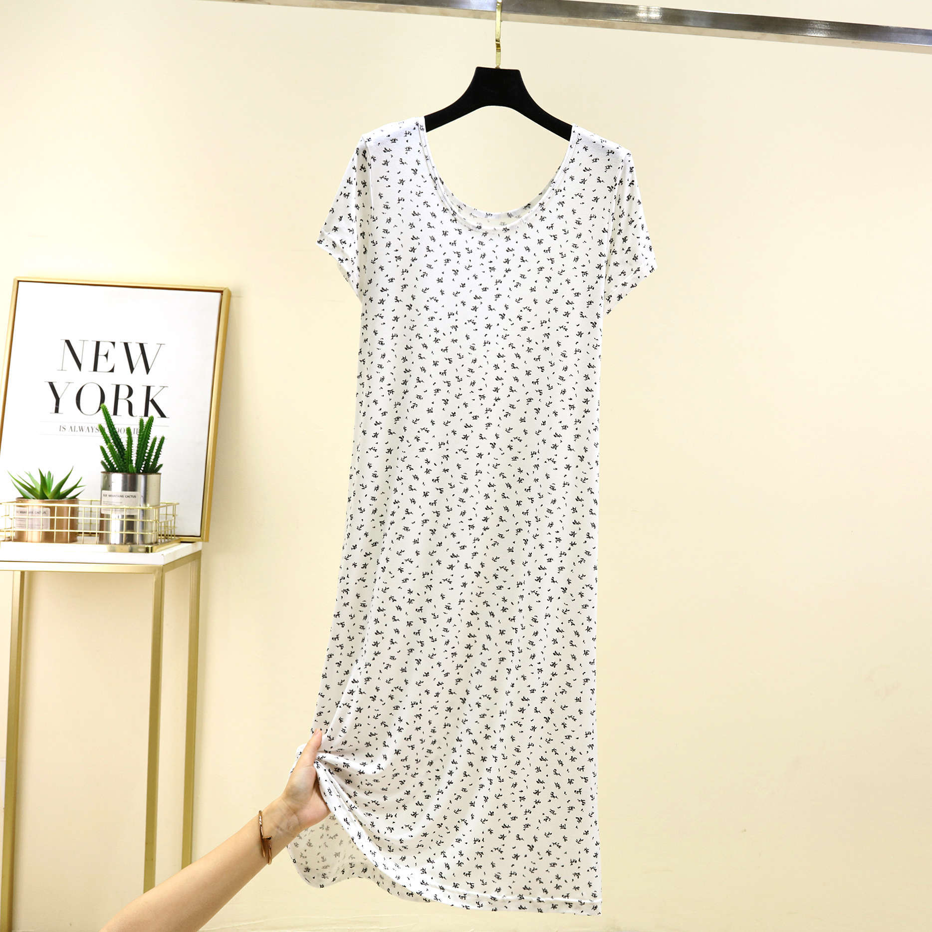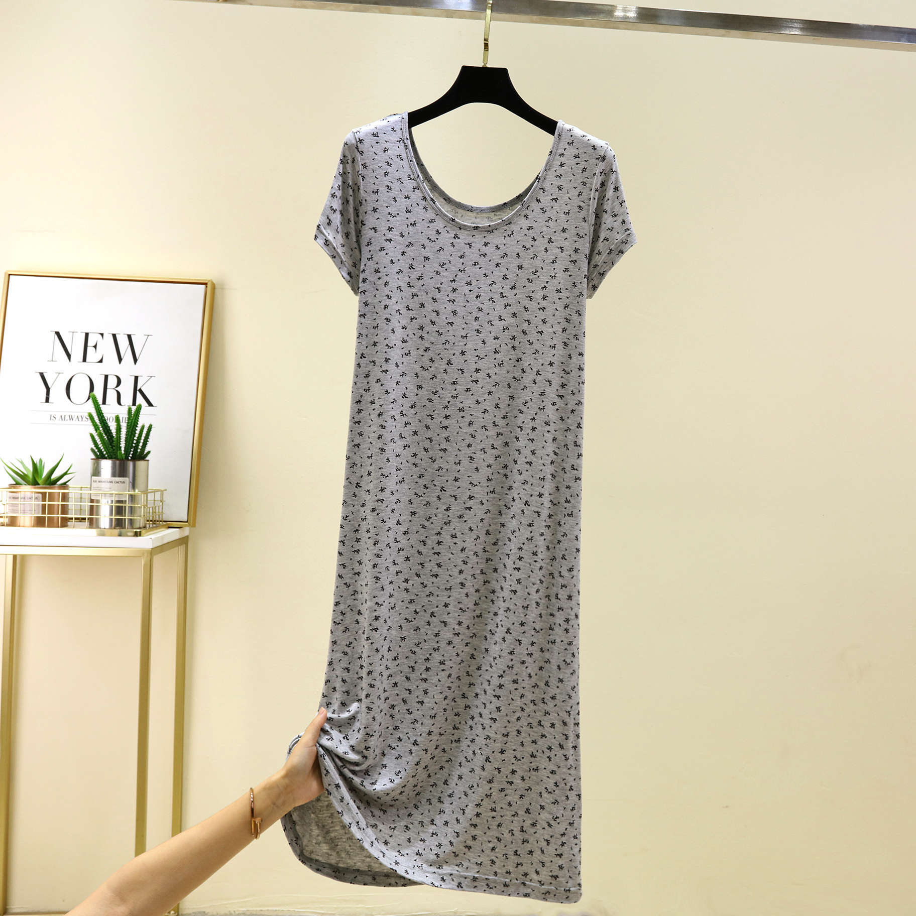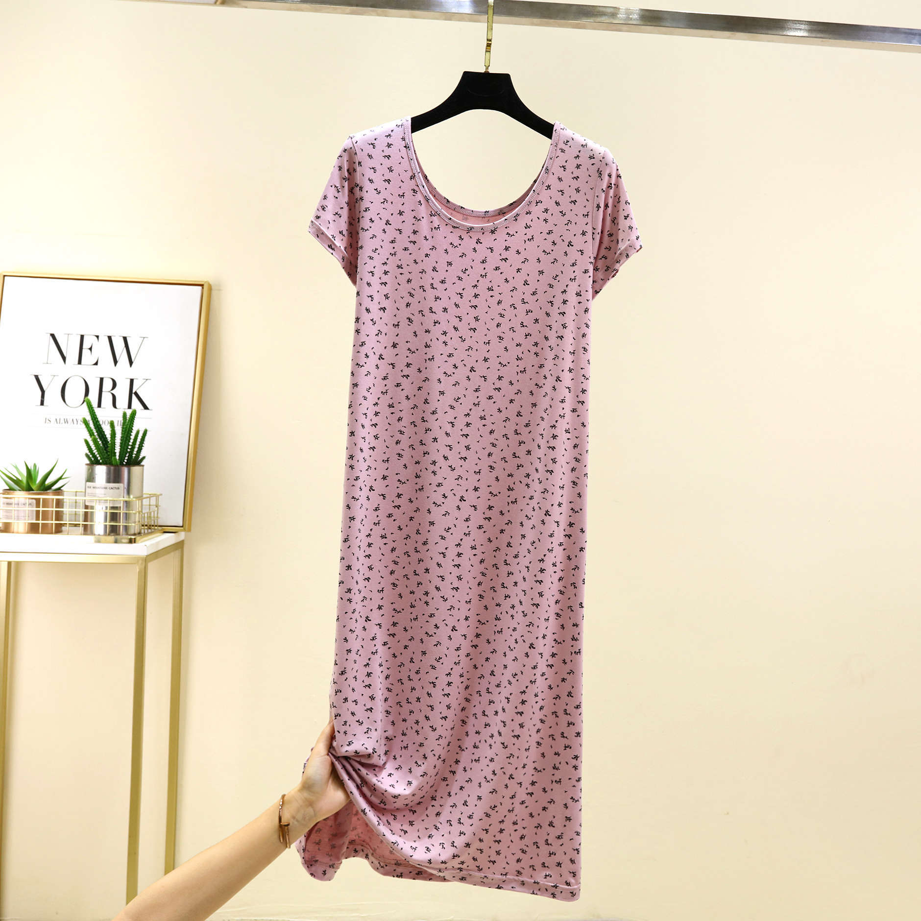 여성을위한 모달 꽃 반팔 잠옷 여름 얇은 홈 드레스 대형 루즈 캐주얼 라운드 넥 롱 스커트스토어 가기