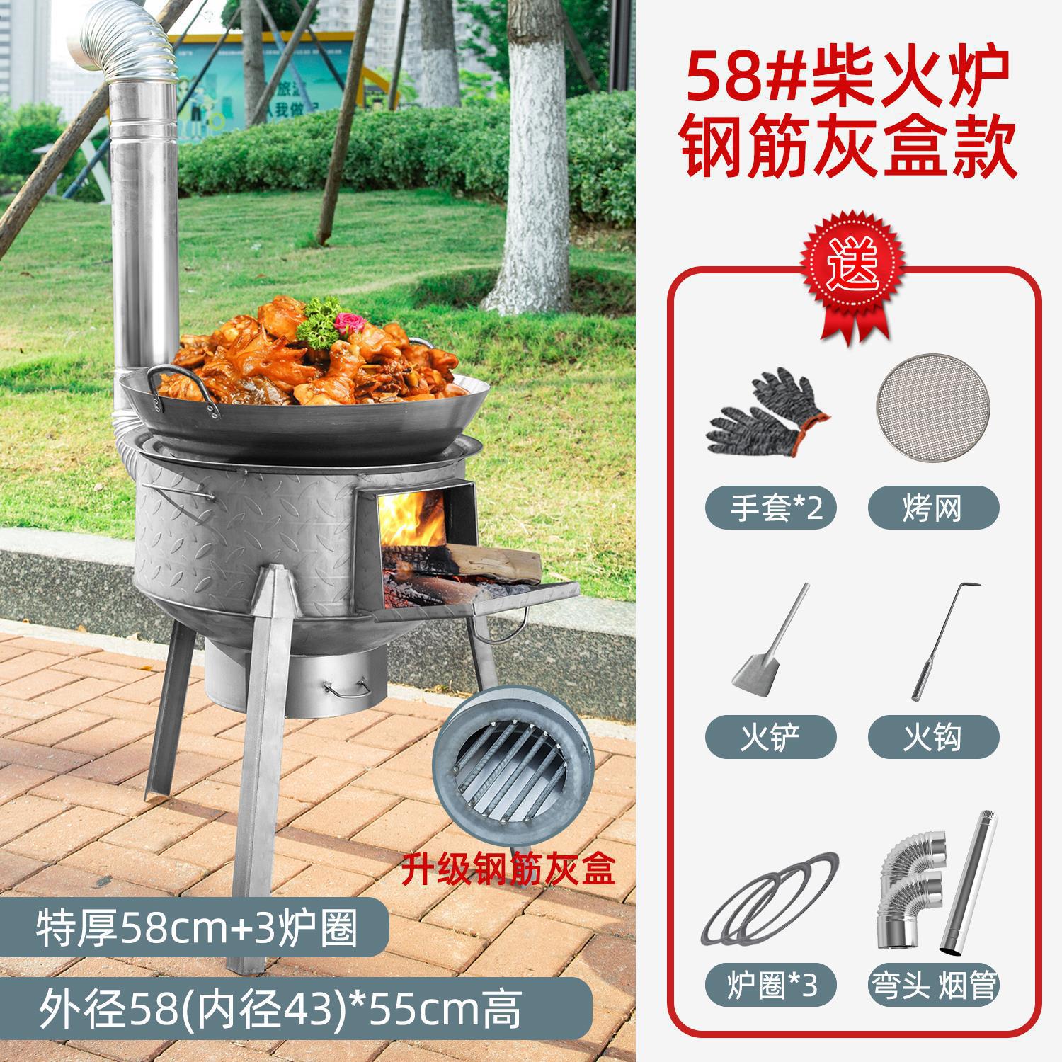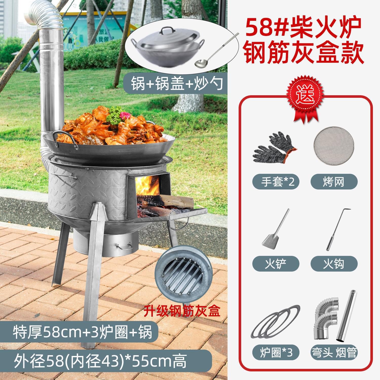 • [강철로 스트립] 두꺼운 회색 상자 모델: 58CM+3개의 난로 고리+양귀 냄비+뚜껑+볶음