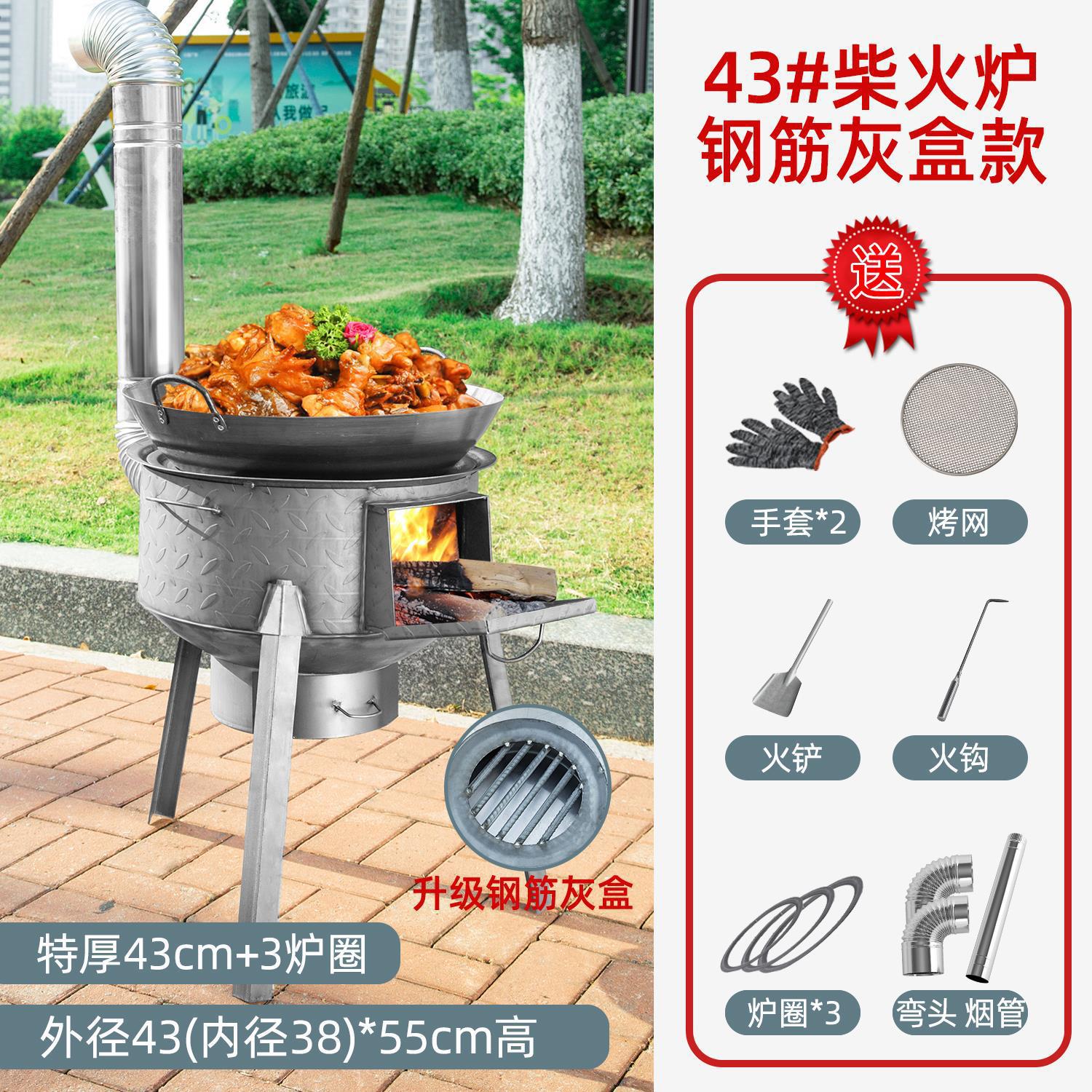 • [강철로 스트립] 두꺼운 회색 상자 모델: 43CM+3개의 난로 고리+이중 귀 냄비+뚜껑+