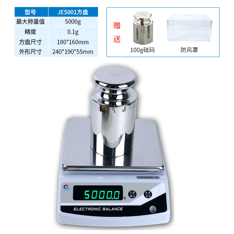 • JE5001 사각 플레이트(5000g/0.1g) + 무게 + 방풍 장치