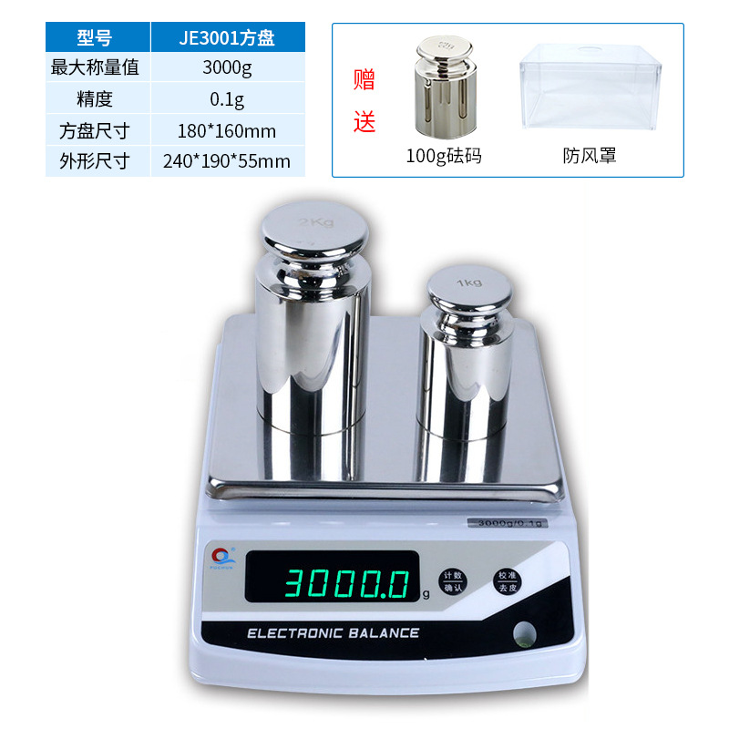 • JE3001 사각접시(3000g/0.1g) + 무게 + 방풍장치