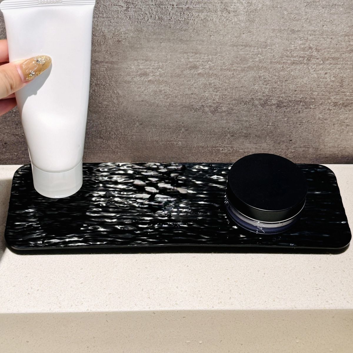 세면대 트레이 스타일 고급스러운 물결무늬 트레이 수납선반 욕실 화장품 데스크탑 수납 트레이