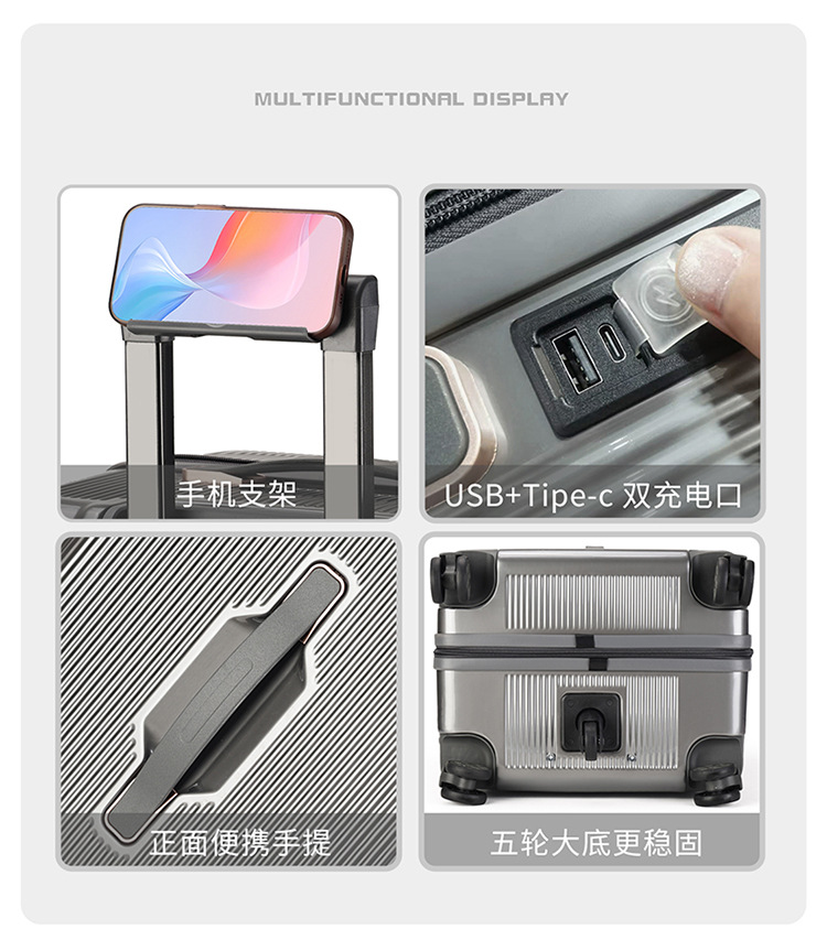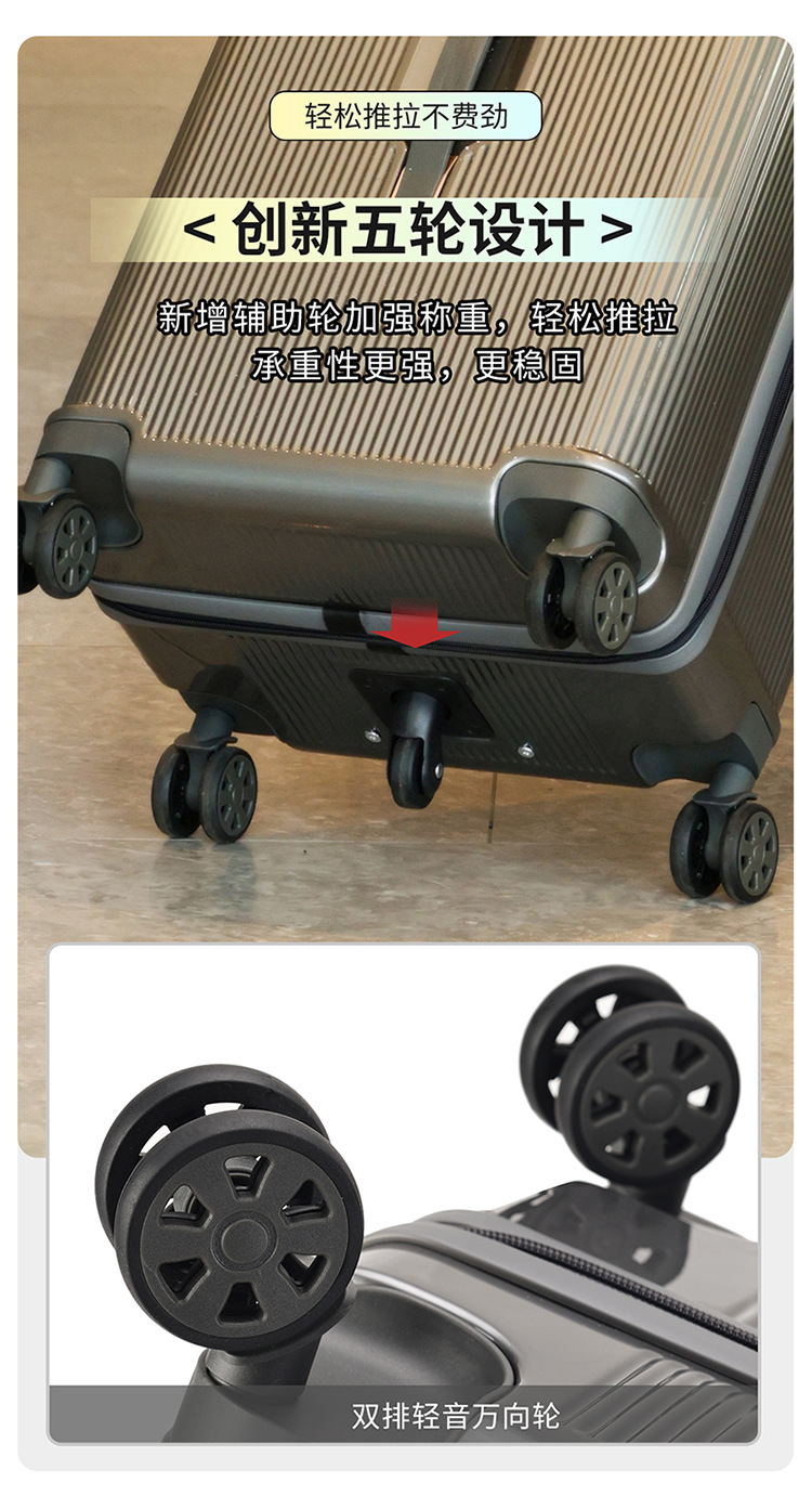 세련된 여행가방 지퍼가 달린 37개의 5륜 다기능 여행가방 남성과 여성을 위한 고품질 탑승 케이스 무소음 바퀴