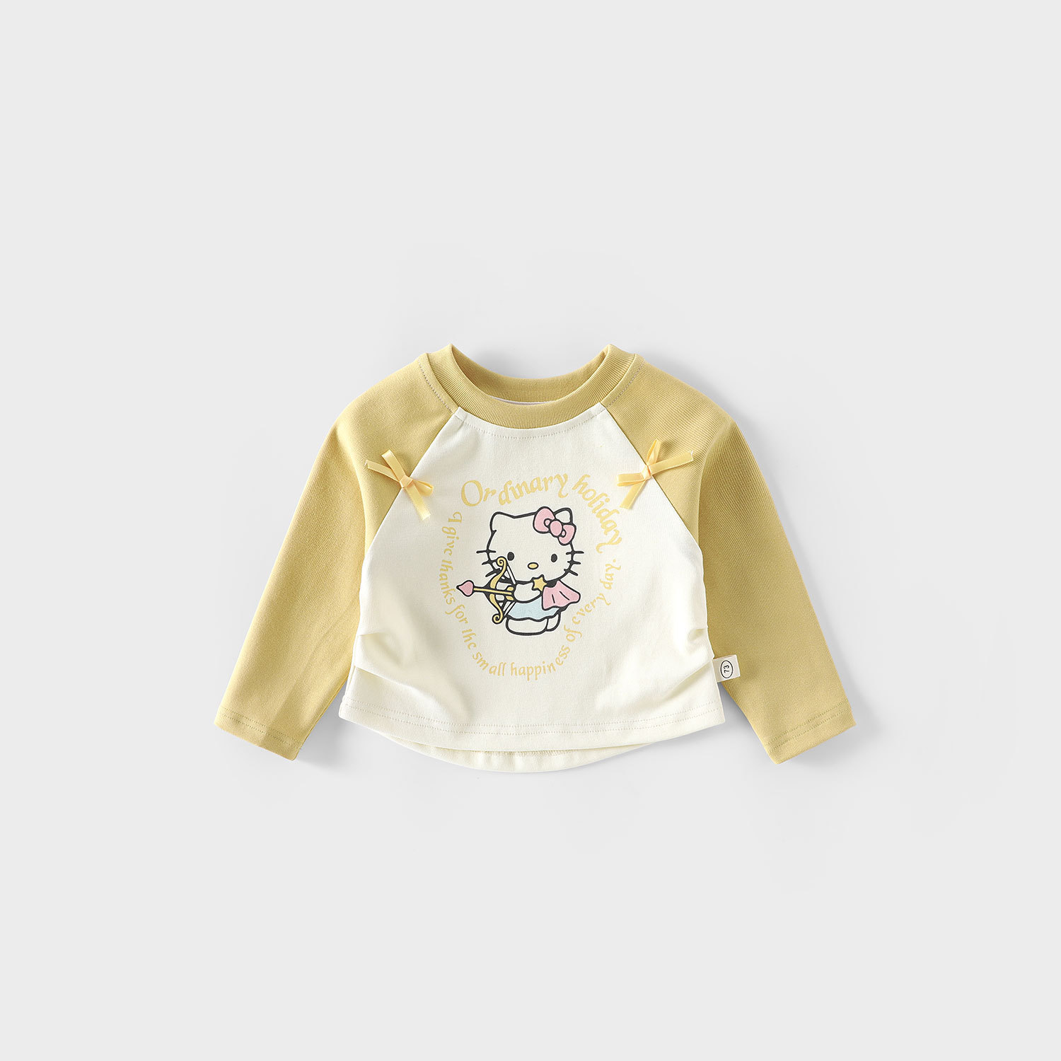 여자 고양이 바닥 셔츠 2025 새로운 가을 아기 스타일 라글란 슬리브 티셔츠 어린이 만화 프린트 탑