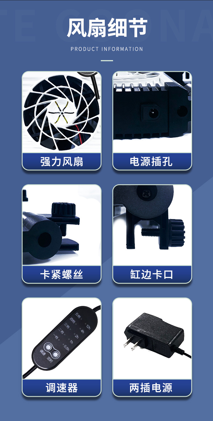 심간항 수조 팬 지능형 냉각 풍속 5단계 조절 가능한 수생 식물 탱크 해수 탱크 새우 탱크 냉각수 온도