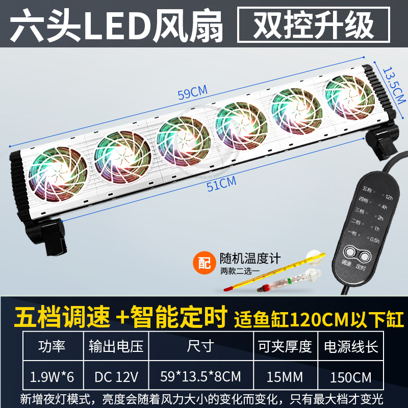 • [LED 조명으로 업그레이드] 헤드 6개, 길이 59cm + 온도계, 120CM 이하 실린더에 적합, 플러그에는 3C 인증이 있음