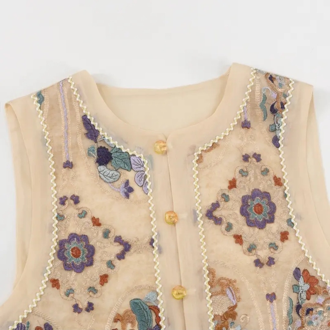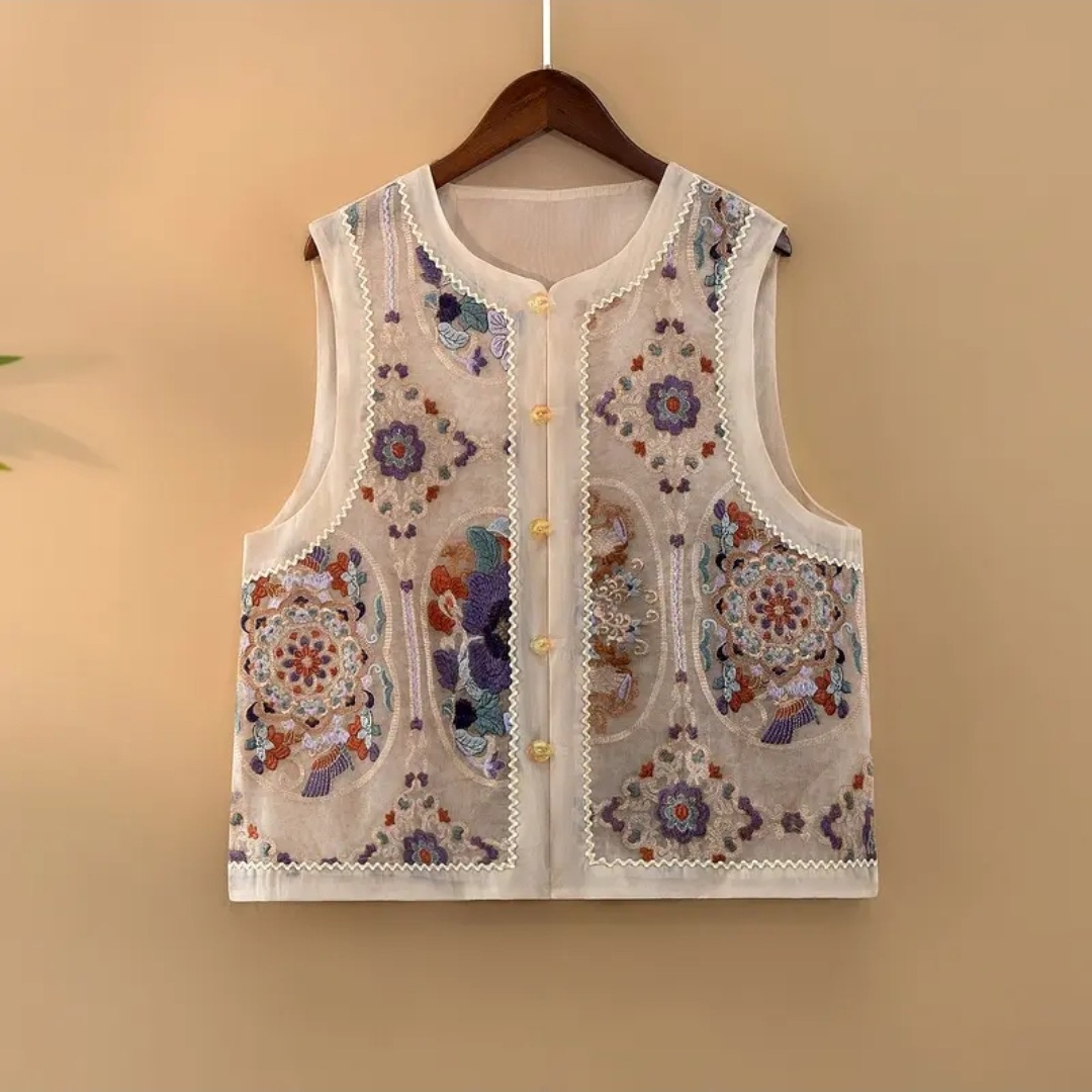 [꽃말] 여름 얇은 민소매 조끼 여성의 새로운 중국 스타일 민족 스타일 조끼 패션 자수 민족 스타일 조끼