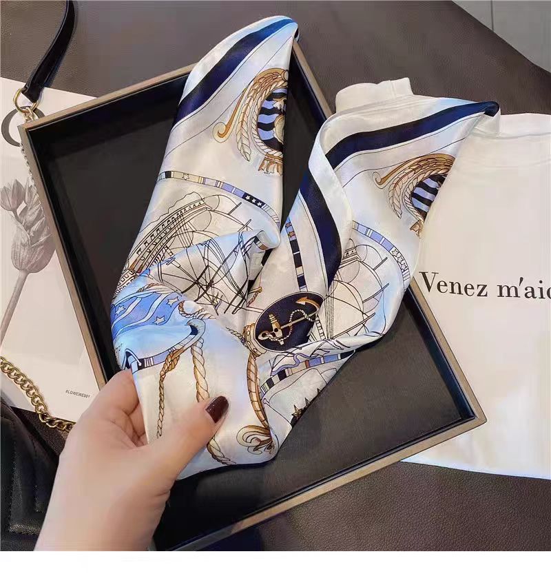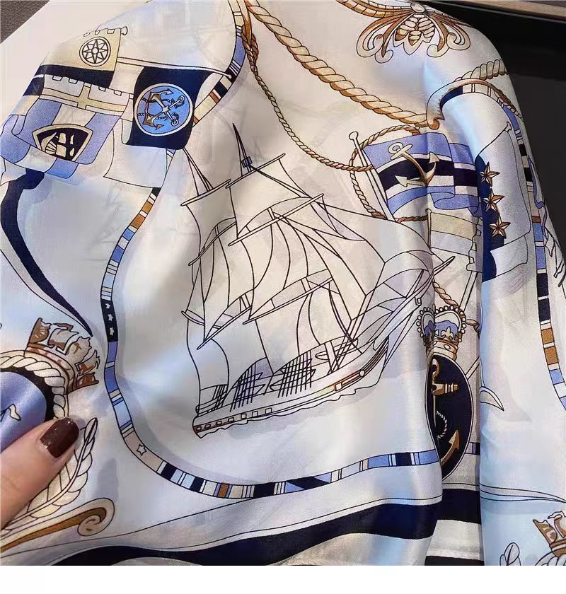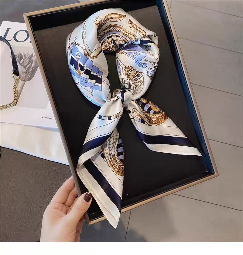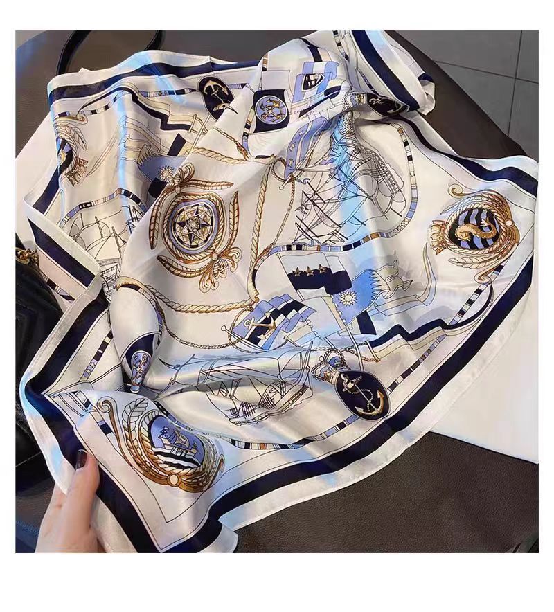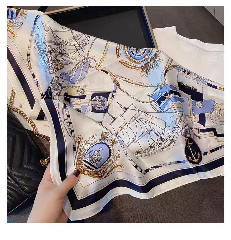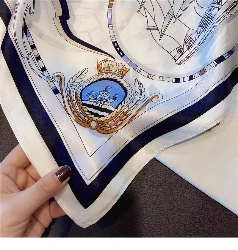 100% 뽕나무 실크 크레이프 새틴 해상 지도 스퀘어 스카프 여성용 하이 엔드 다목적 여성 봄, 가을, 여름 선물 실크 스카프스토어 가기