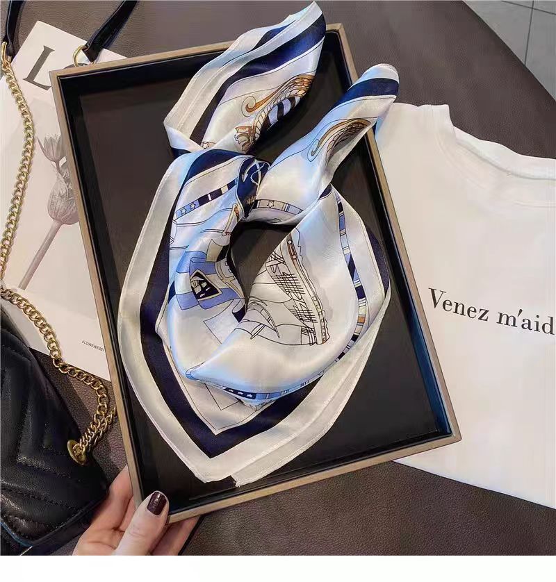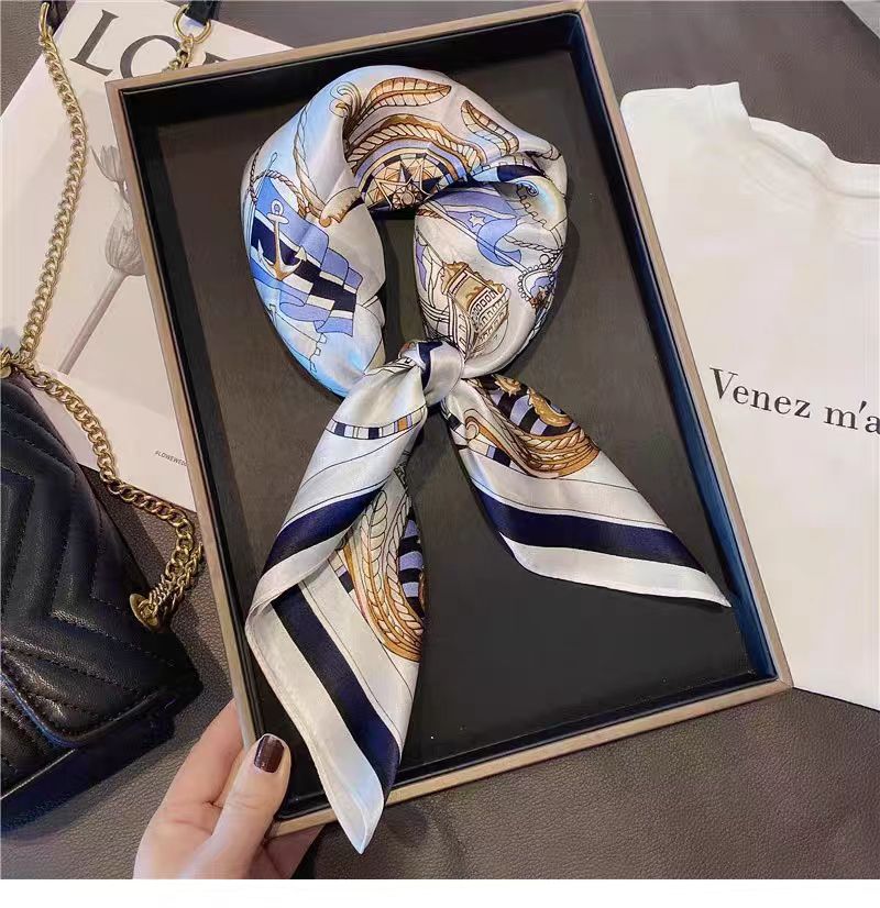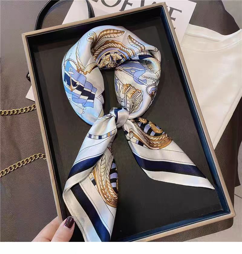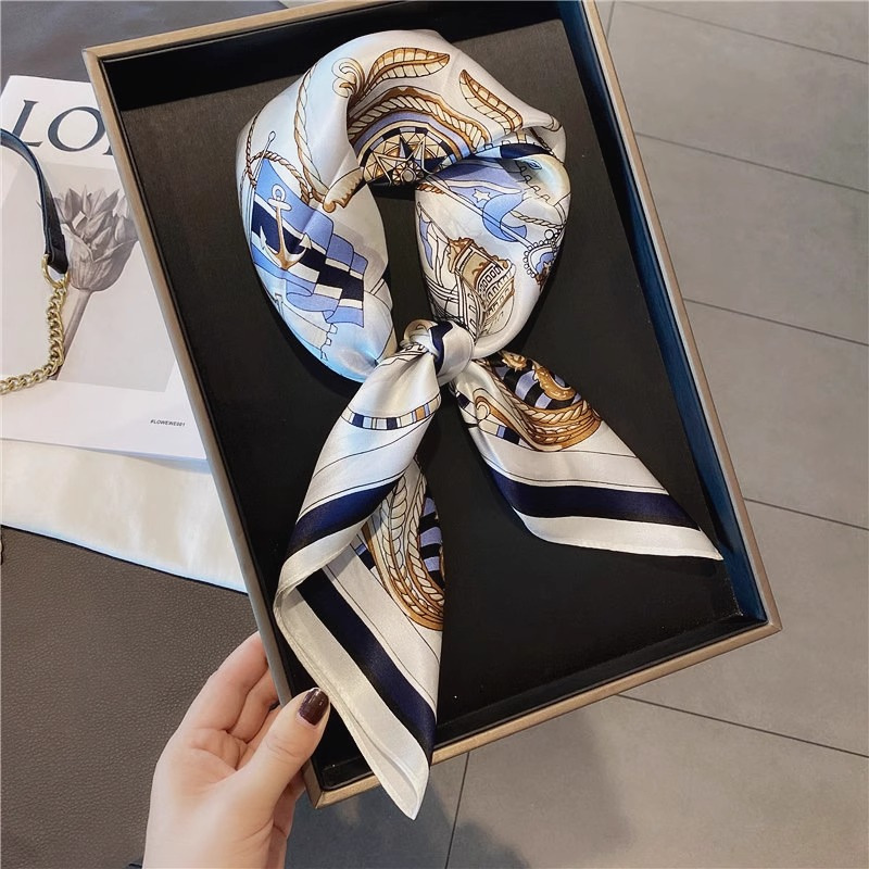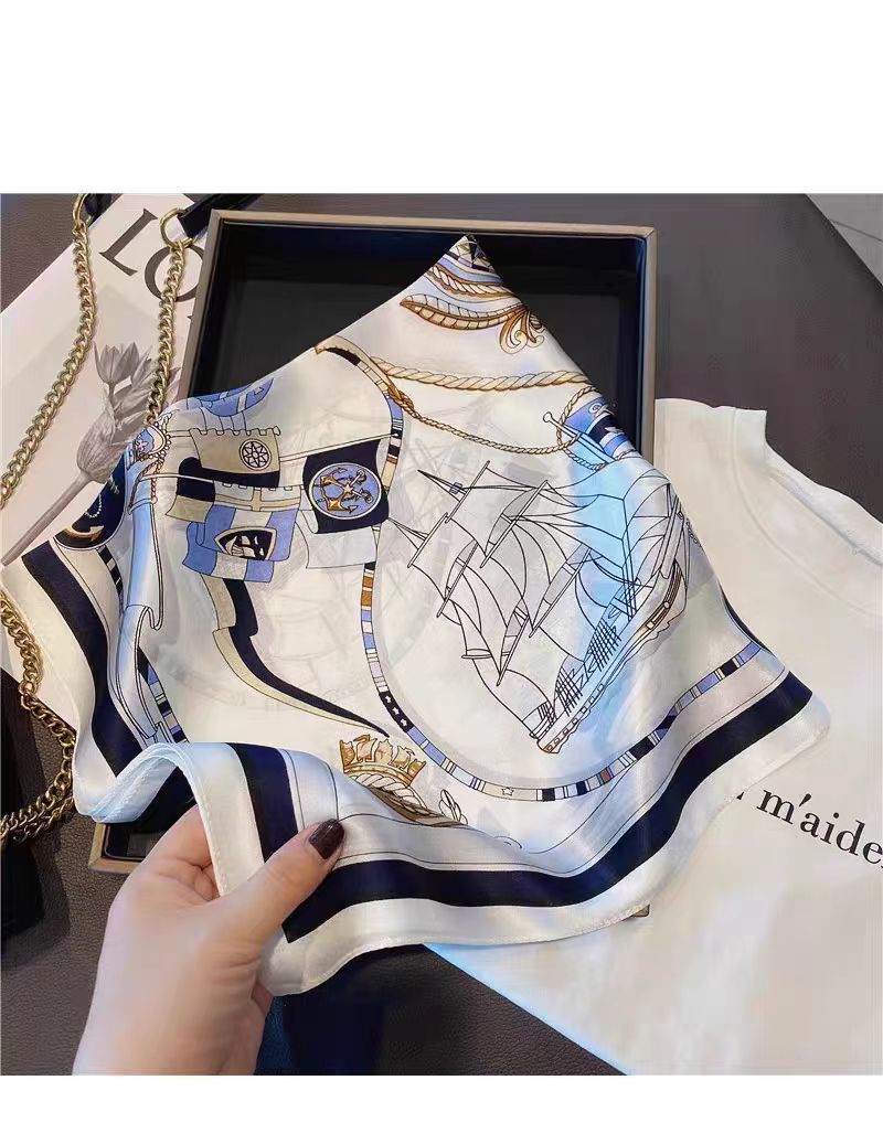 100% 뽕나무 실크 크레이프 새틴 해상 지도 스퀘어 스카프 여성용 하이 엔드 다목적 여성 봄, 가을, 여름 선물 실크 스카프스토어 가기