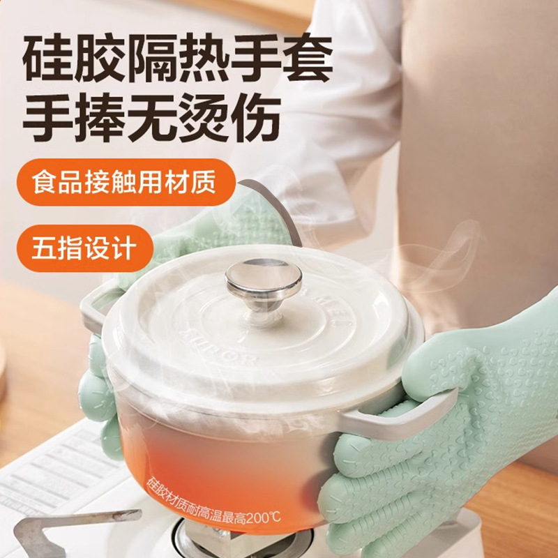 단열 주방 전자 레인지 장갑 실리콘 오븐 서빙 베이킹 도구 내열성 세척 가능한 다기능 고무 장갑스토어 가기
