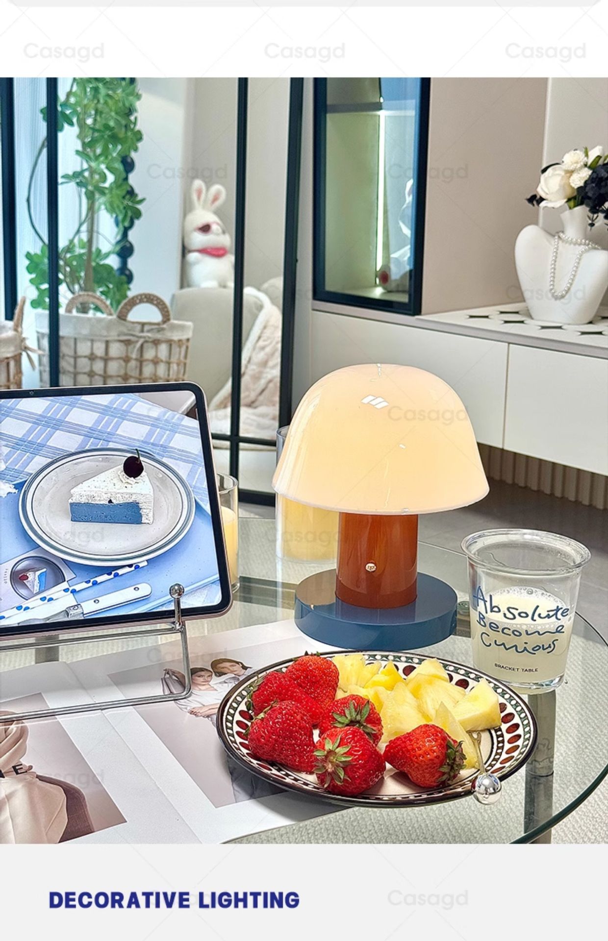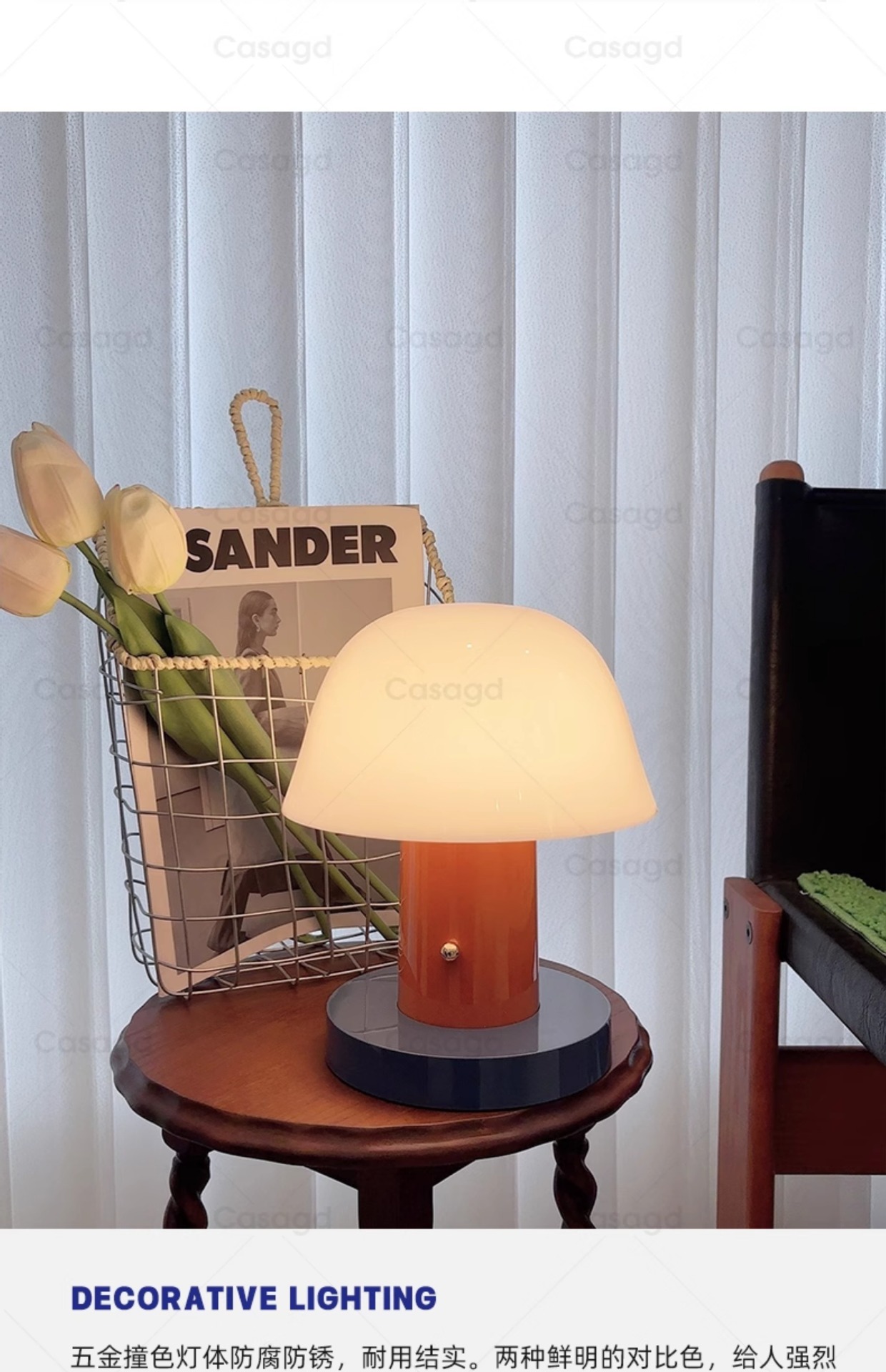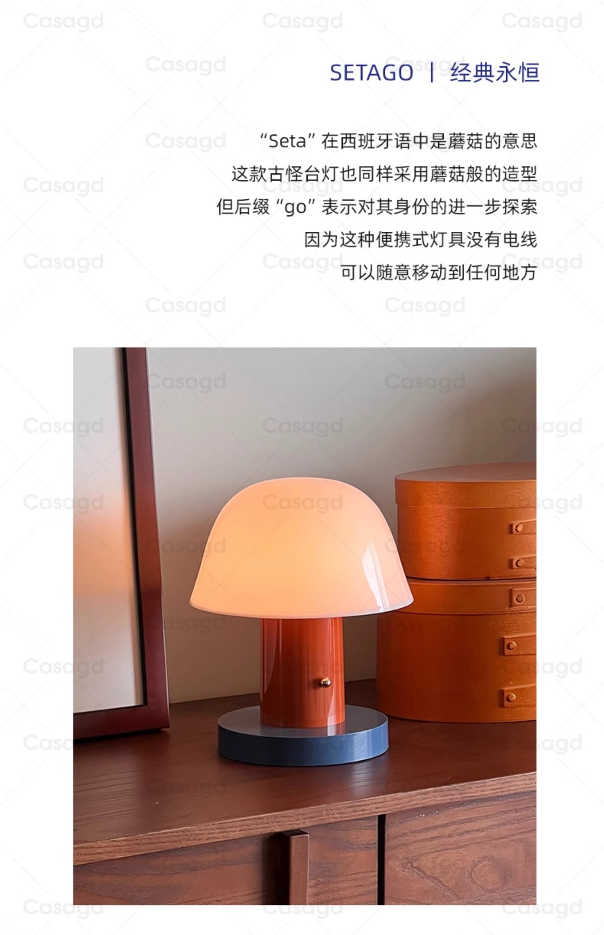스페인어 라이트 럭셔리 충전식 무선 터치 테이블 램프 복고풍 침실 머리맡 분위기 램프 북유럽 버섯 램프 casagd스토어 가기