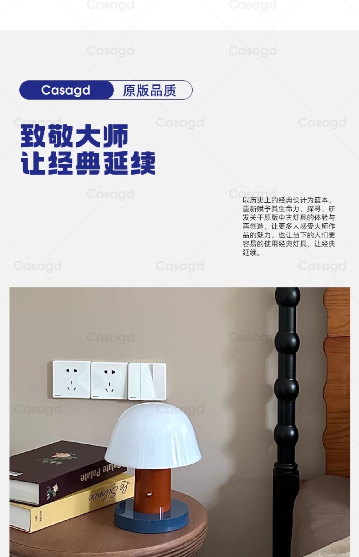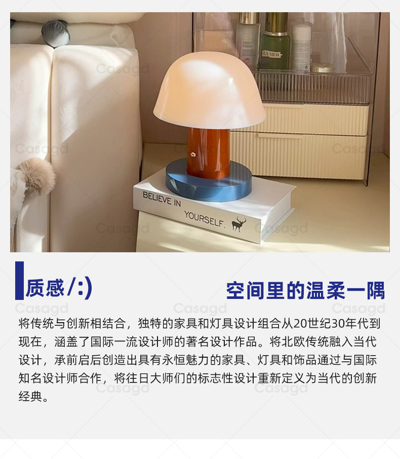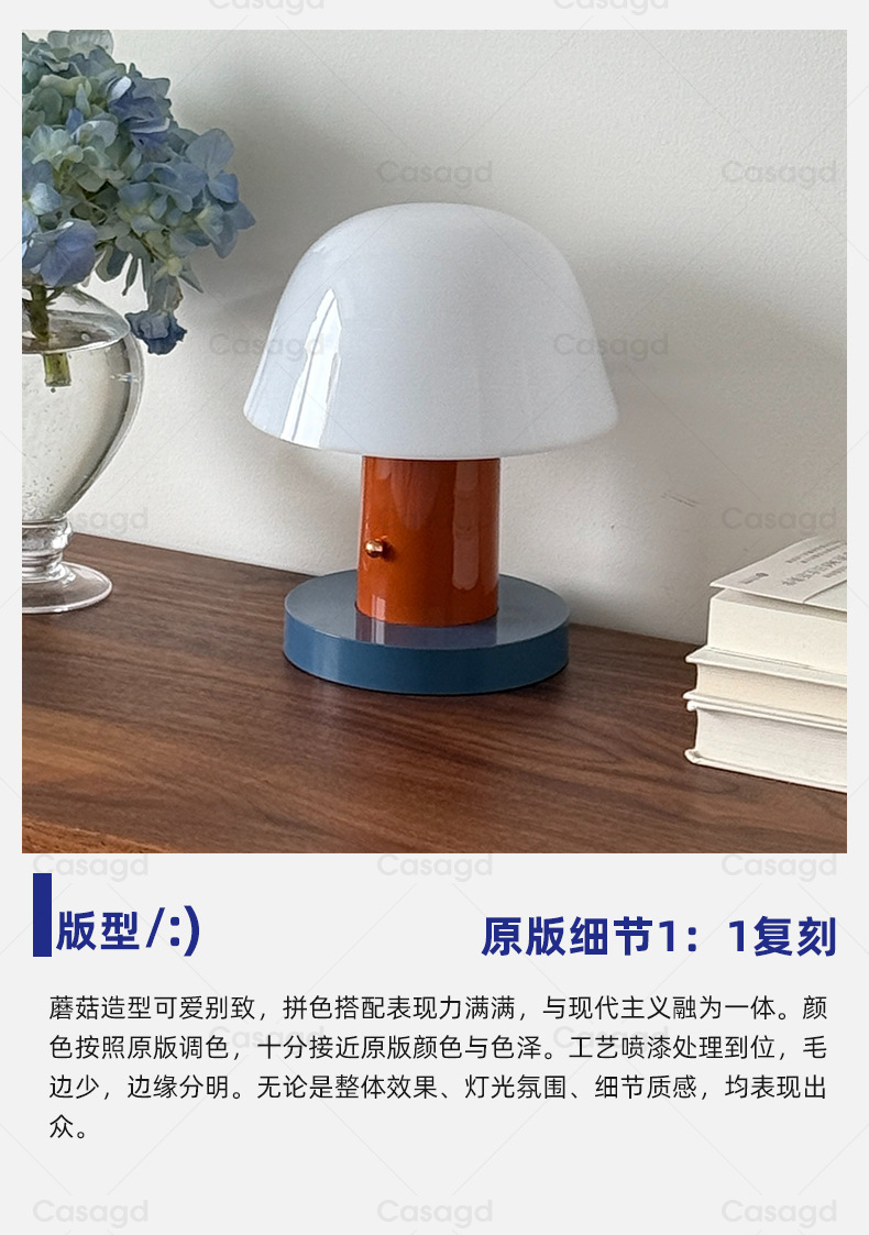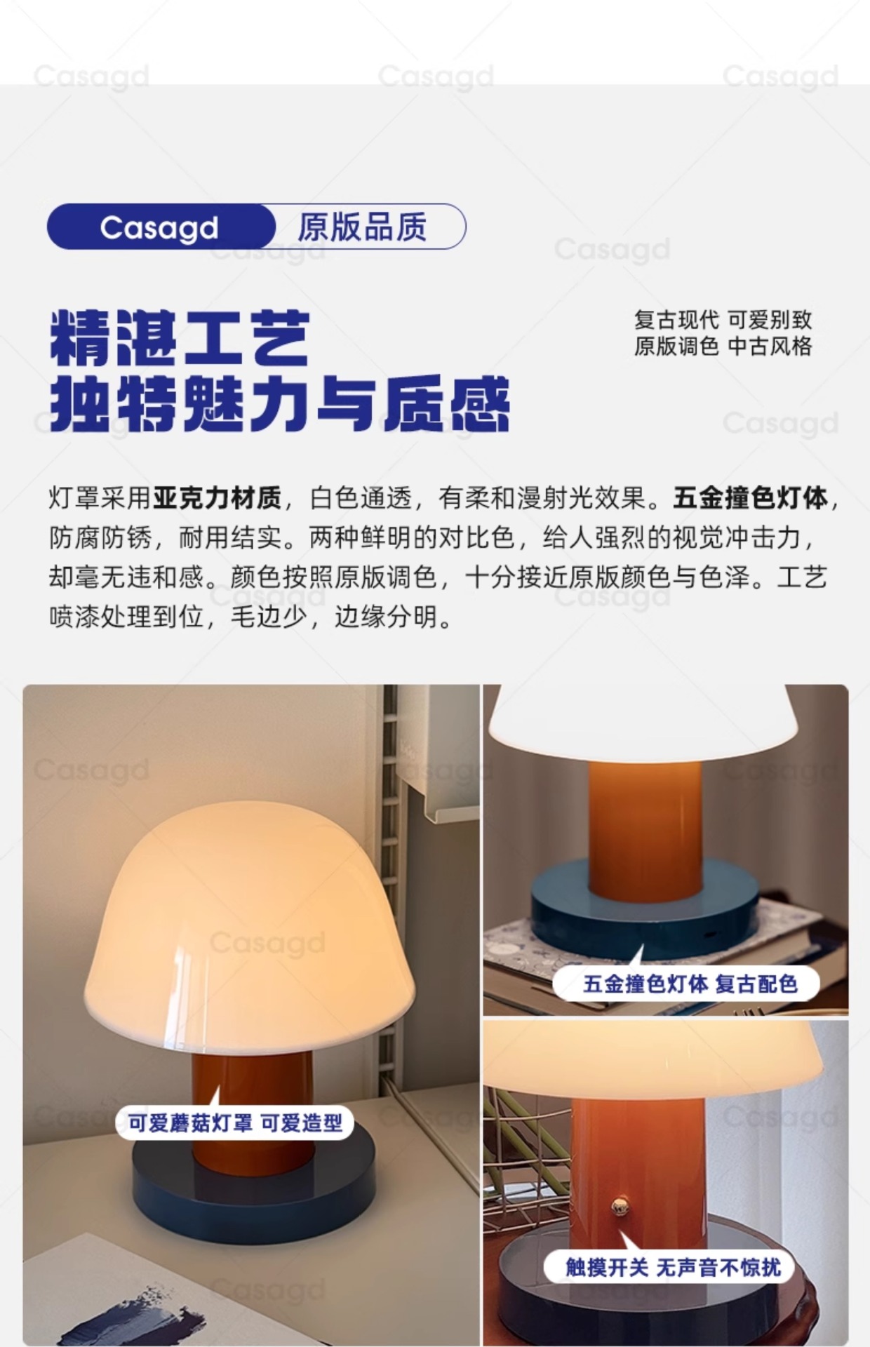 스페인어 라이트 럭셔리 충전식 무선 터치 테이블 램프 복고풍 침실 머리맡 분위기 램프 북유럽 버섯 램프 casagd스토어 가기