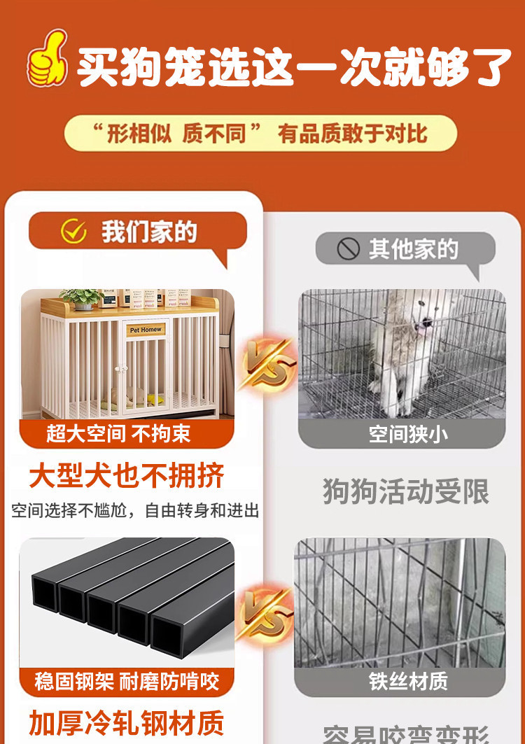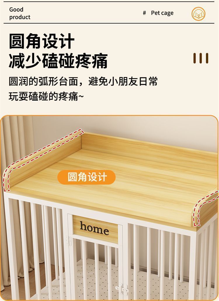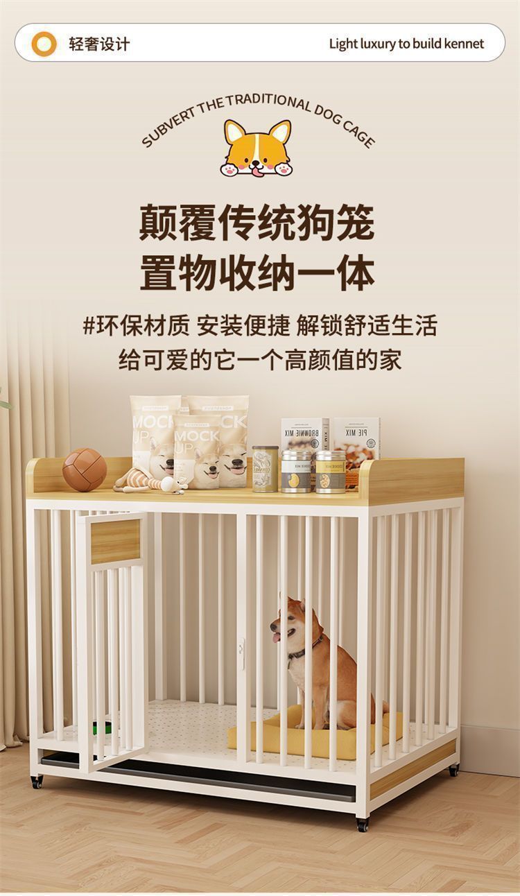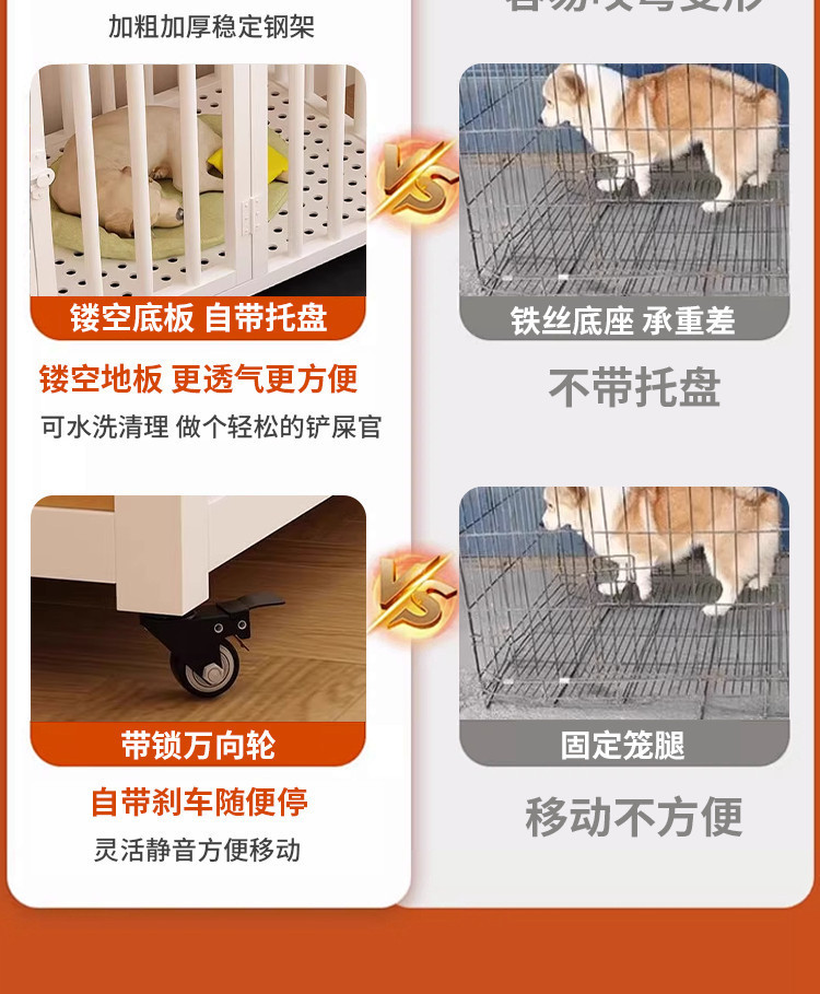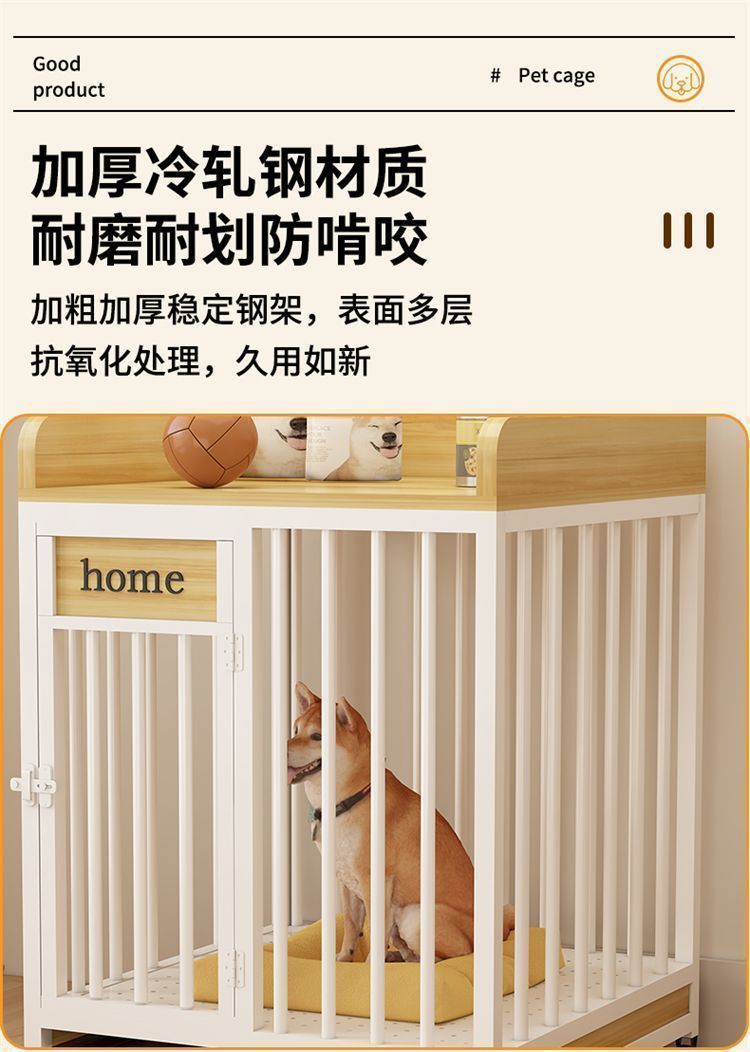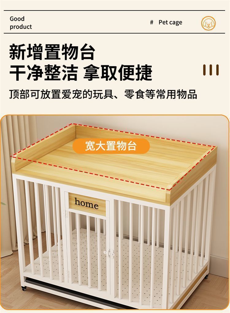 실내 대형 및 중형견용 개집, 화장실 분리형 발코니 개집, 가정용 두꺼운 울타리용 풀리가 있는 애완동물 케이지스토어 가기
