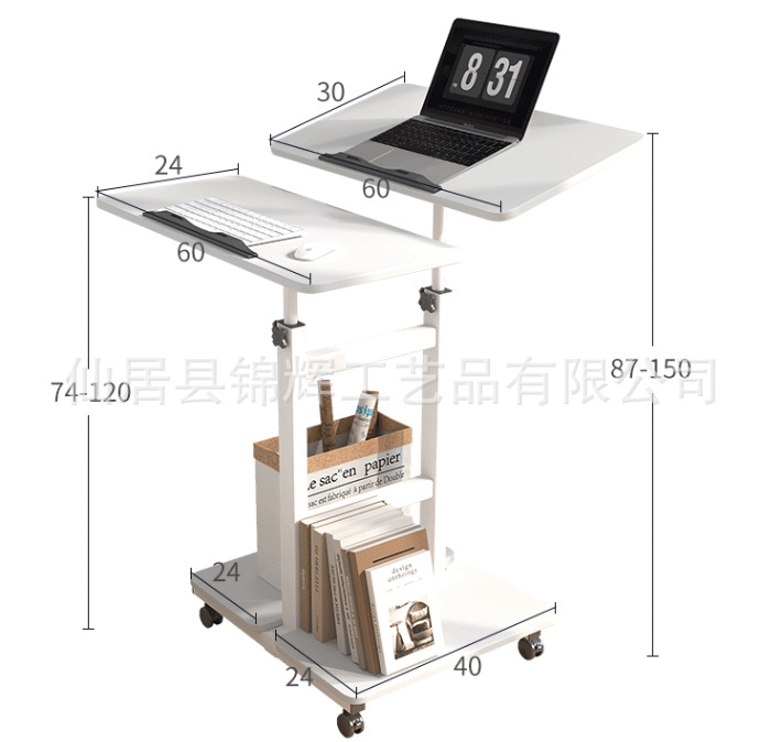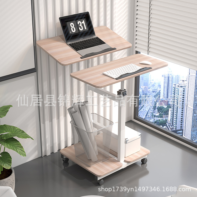 소스 공장 강철 및 목재 컴퓨터 책상 사무실 학습 홈 모바일 리프팅 간단한 책상 개폐식 침대 옆 테이블스토어 가기