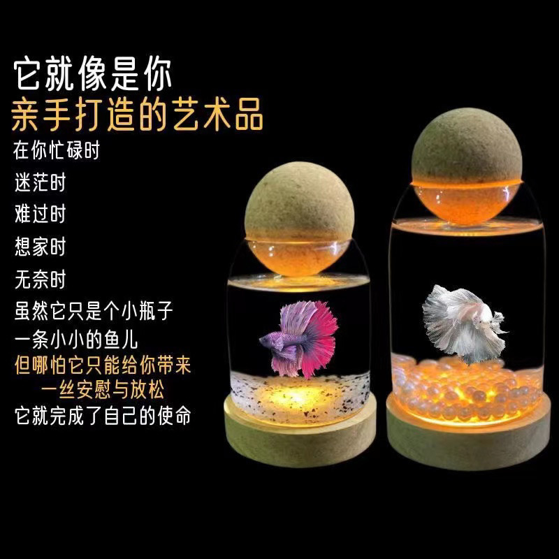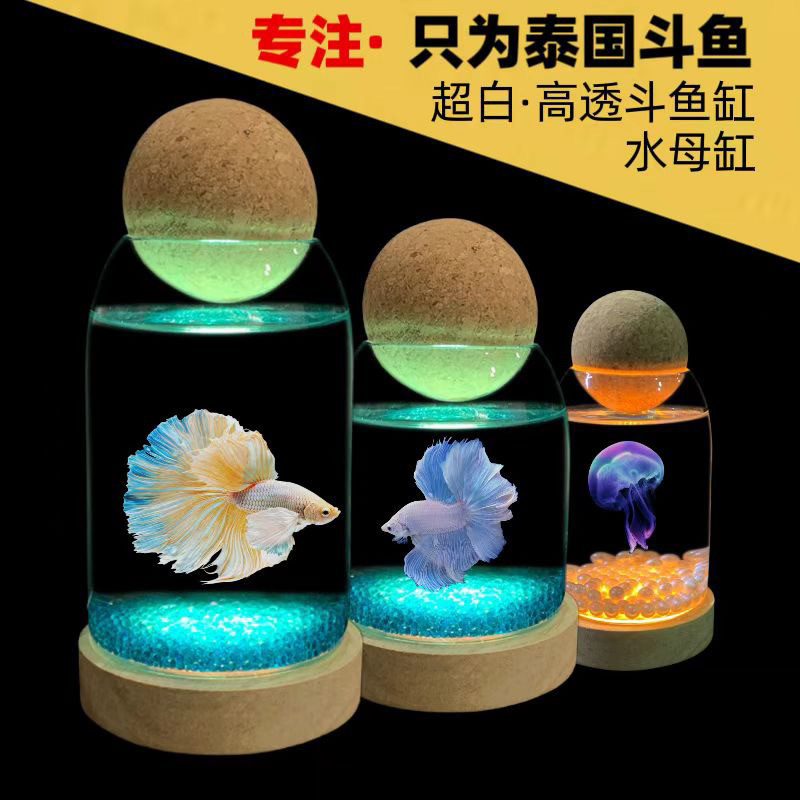 태국 Betta 탱크 크리 에이 티브 해파리 탱크 슈퍼 화이트 유리 사무실 데스크탑 생태 조명 작은 마이크로 풍경스토어 가기