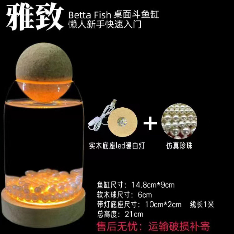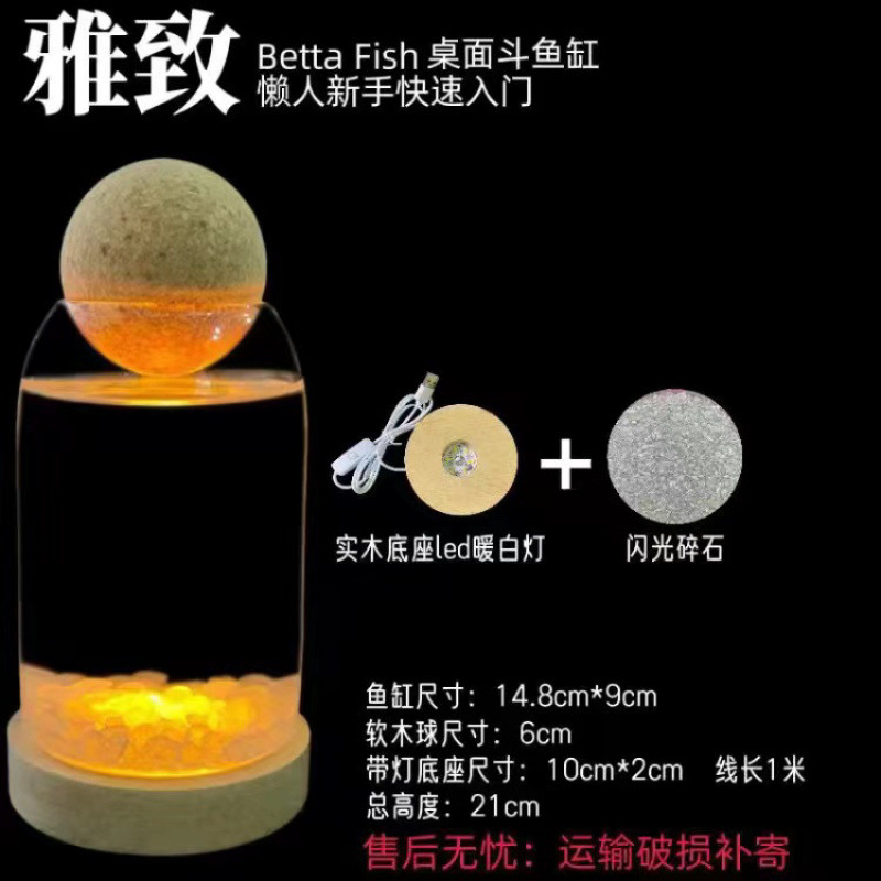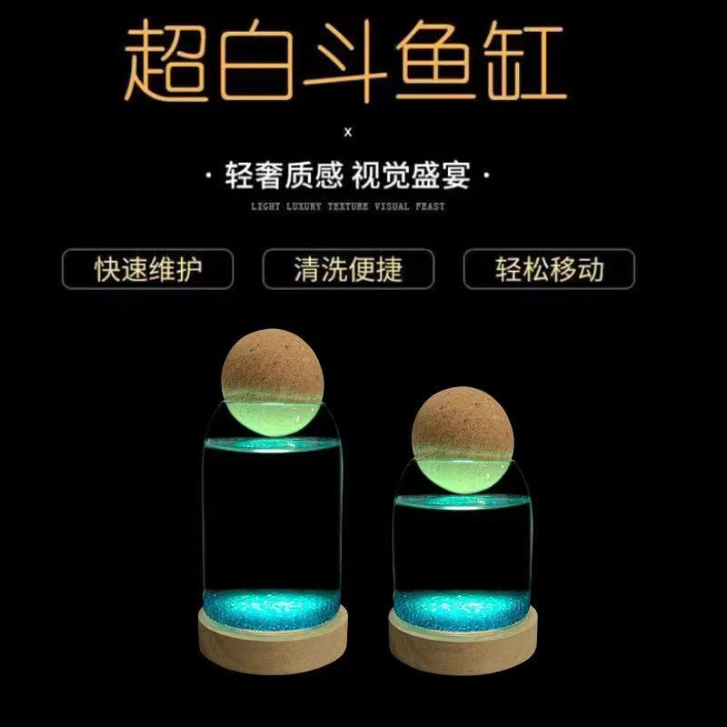 태국 Betta 탱크 크리 에이 티브 해파리 탱크 슈퍼 화이트 유리 사무실 데스크탑 생태 조명 작은 마이크로 풍경