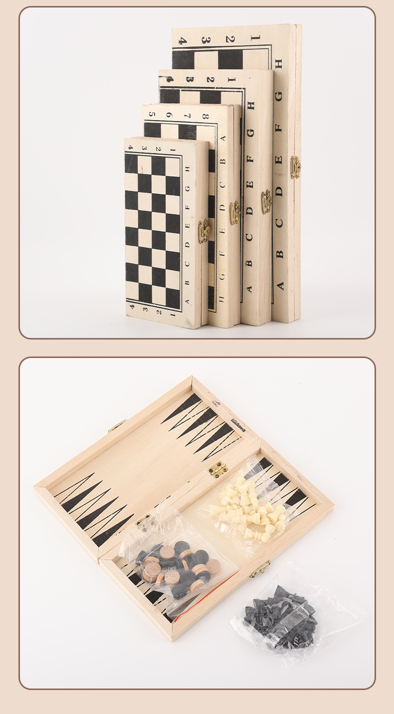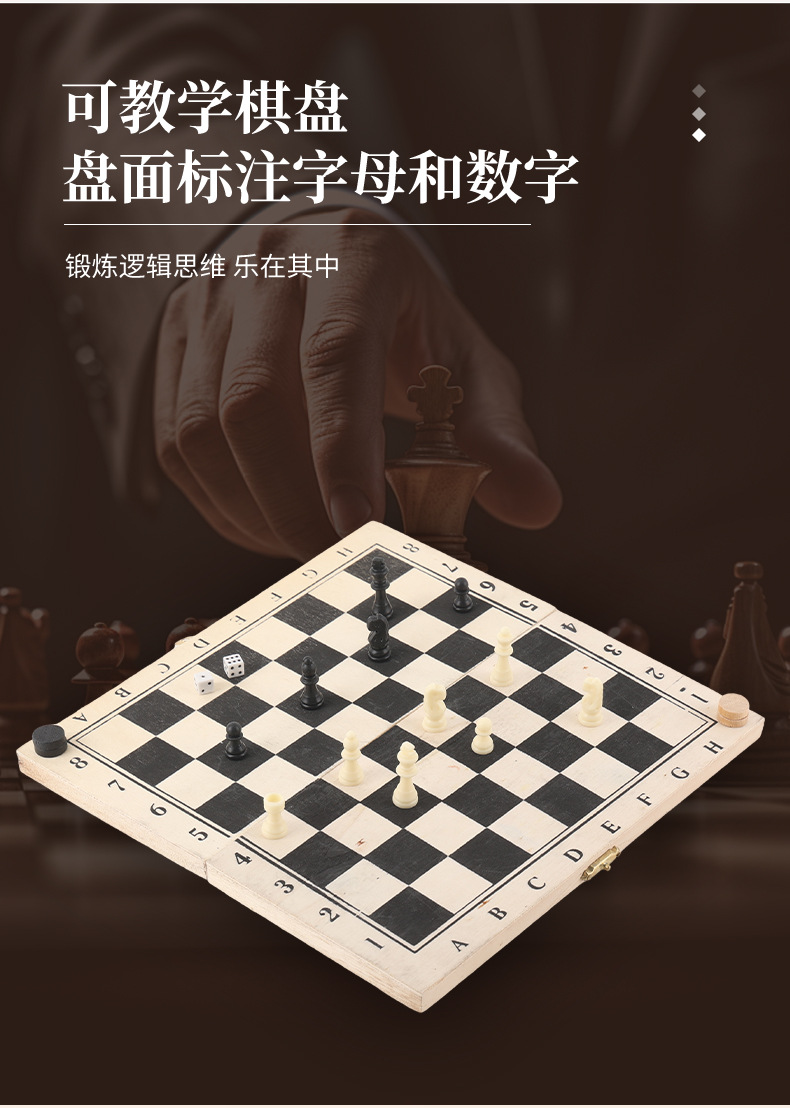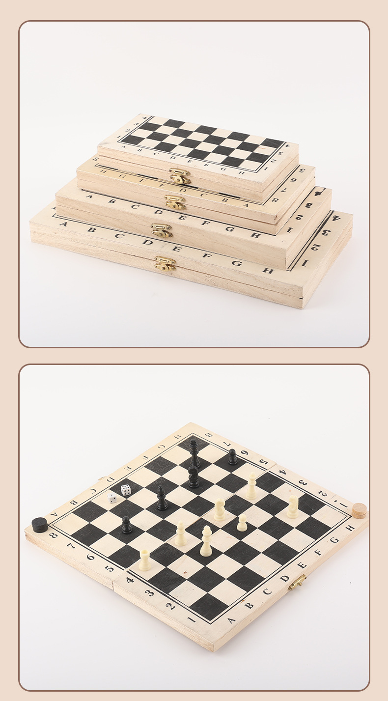 소형 체스 3-in-1 세트 체스, 바둑, 중국 체스 접이식 나무 외국 무역용 흑백 체스