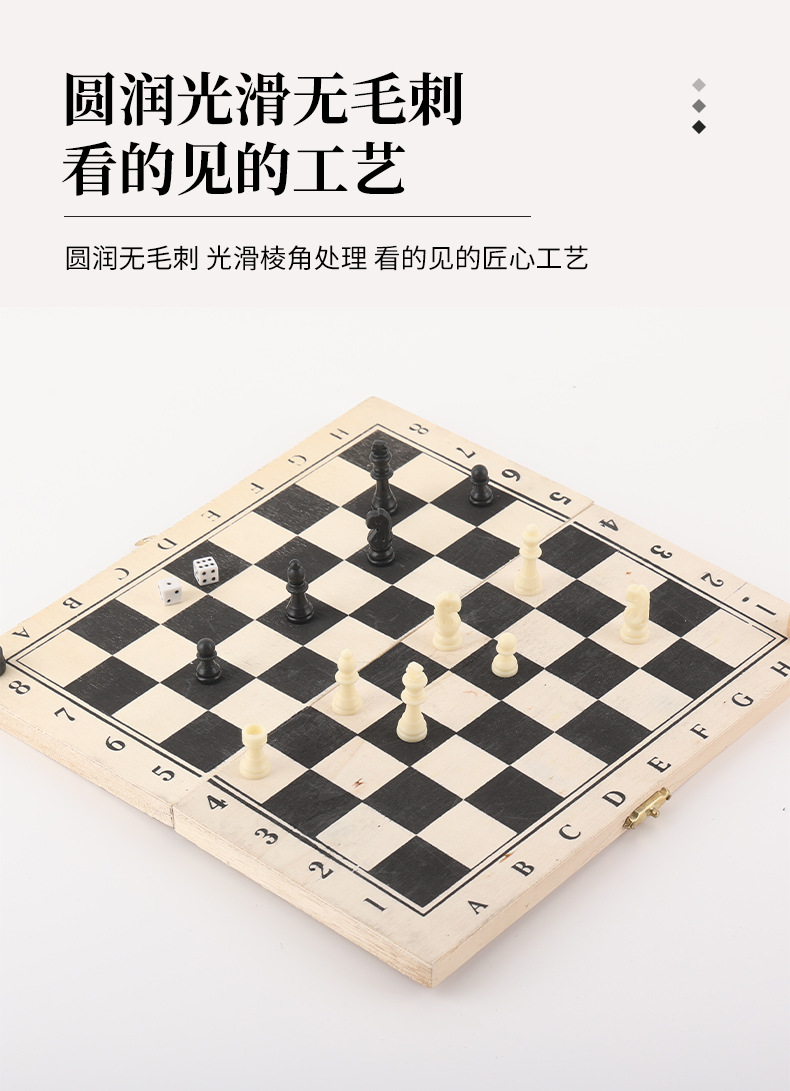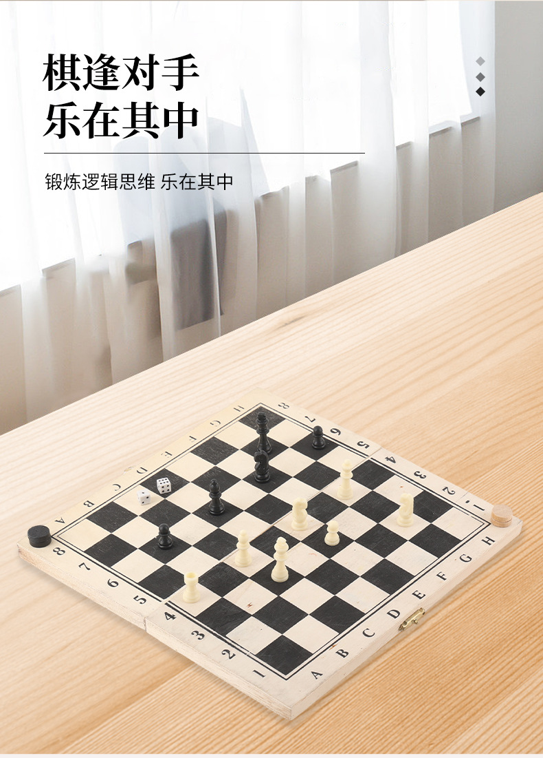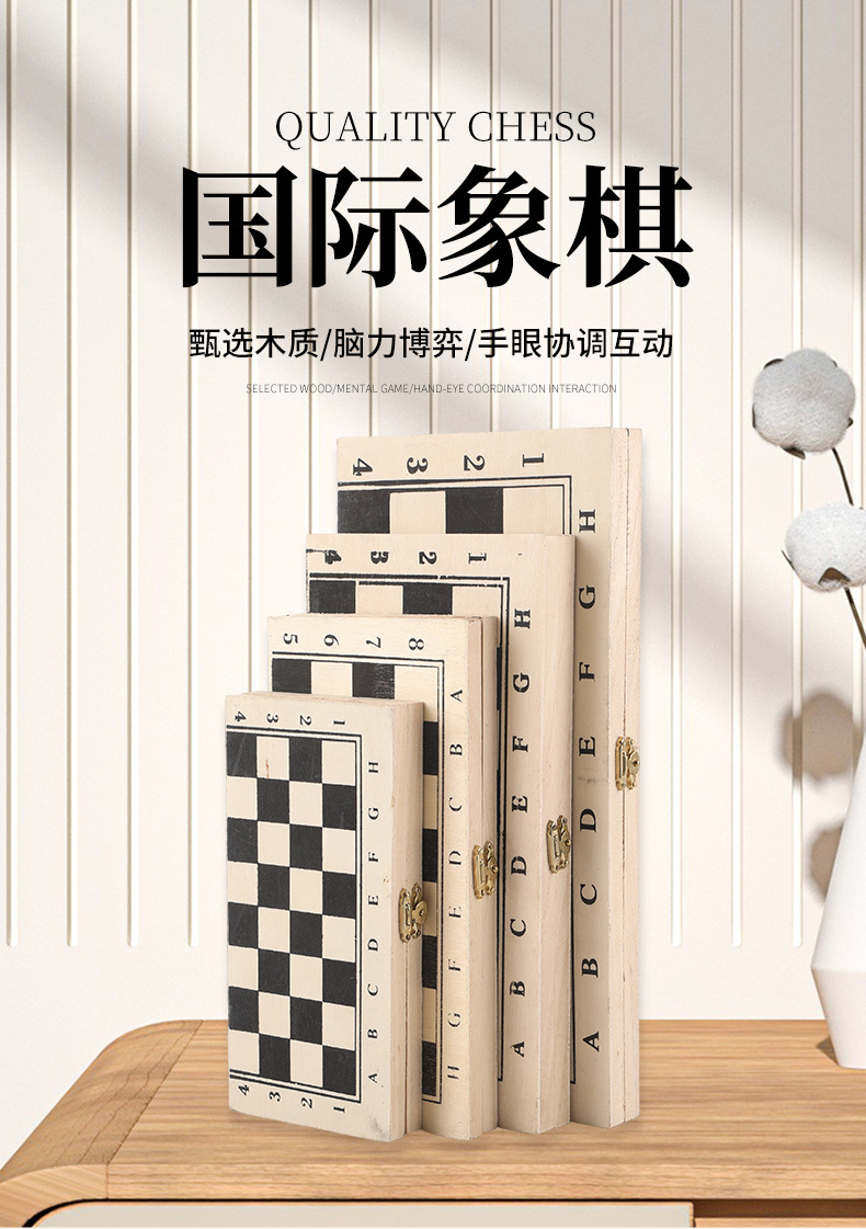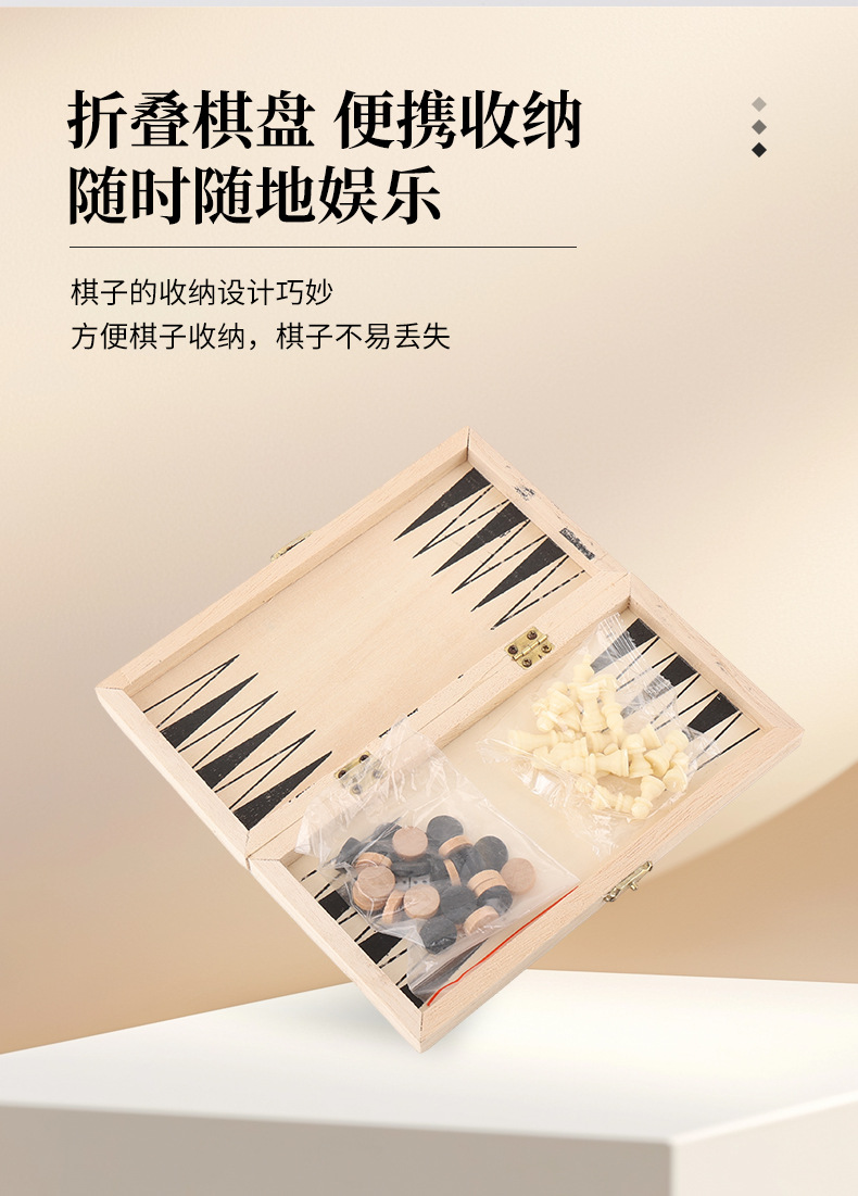 소형 체스 3-in-1 세트 체스, 바둑, 중국 체스 접이식 나무 외국 무역용 흑백 체스스토어 가기