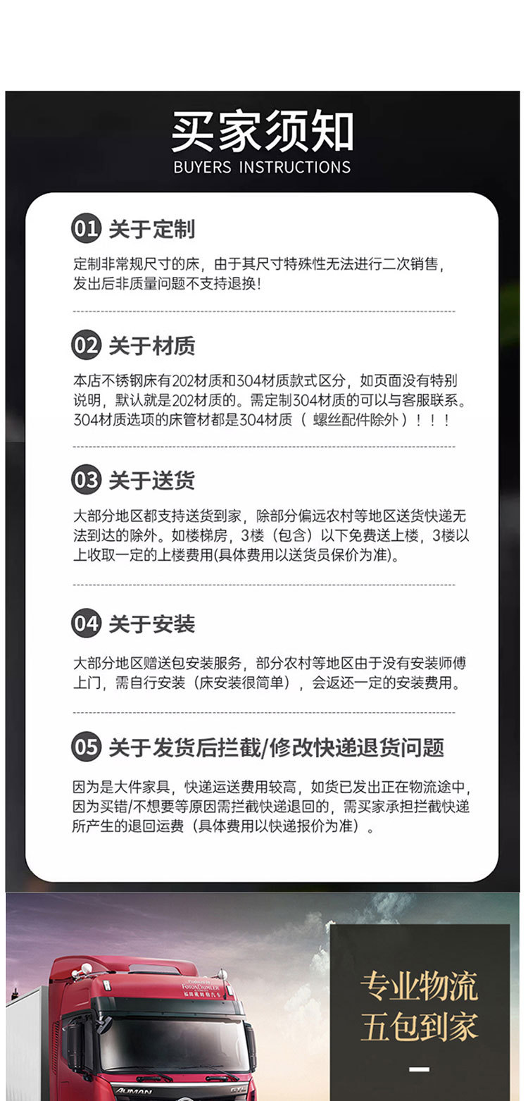 • 두꺼운 304 소재 침대 프레임 + 강철 침대 보드