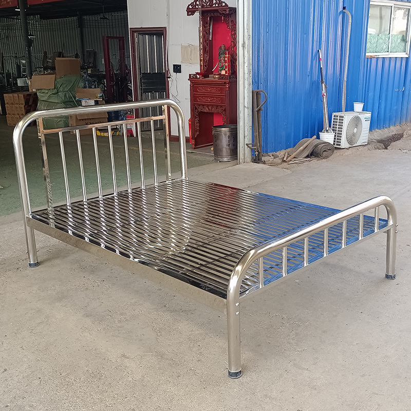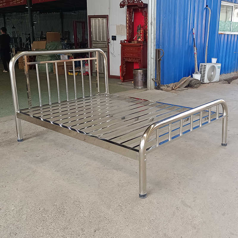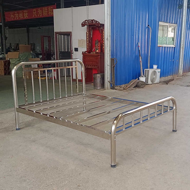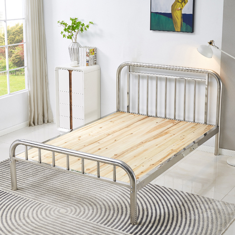 304 두꺼운 스테인레스 스틸 침대 1.8m 싱글 침대 1.5m 더블 아파트 침실 강철 프레임 현대 간단한 철 침대스토어 가기