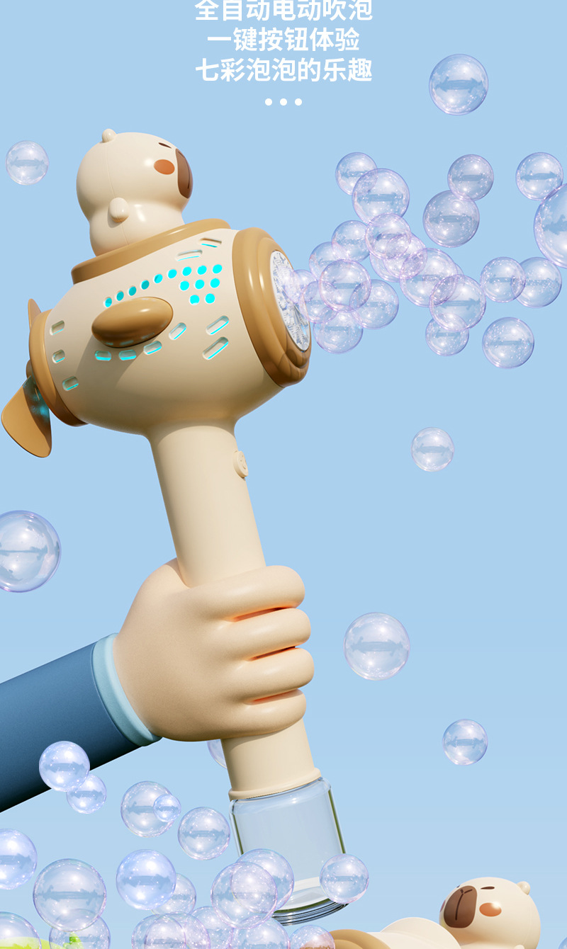 새로운 어린이 Kapibala 버블 스틱 어린이 휴대용 전기 완전 자동 버블 부는 소년과 소녀 버블 장난감스토어 가기