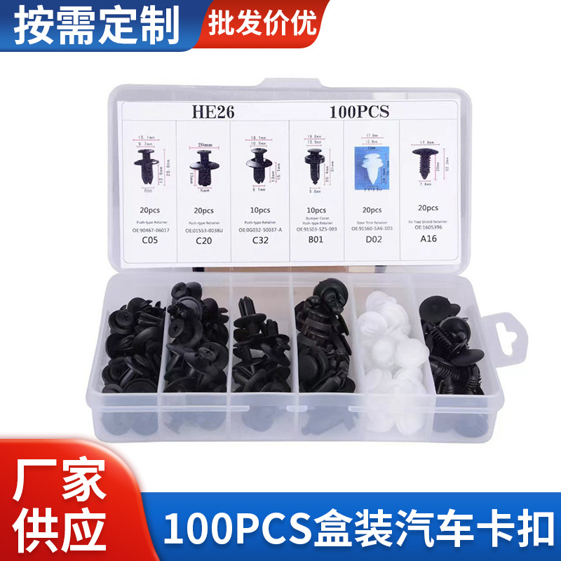 100PCS 박스형 버클 범용 범퍼 펜더 도어 패널 내부 확장 나사 클립 자동차 버클
