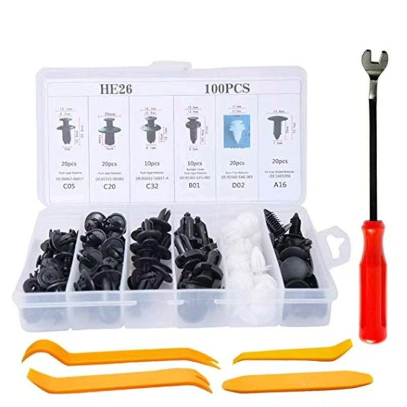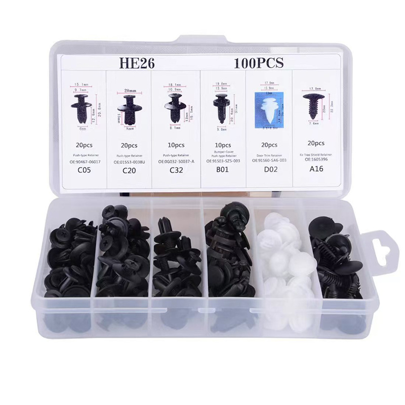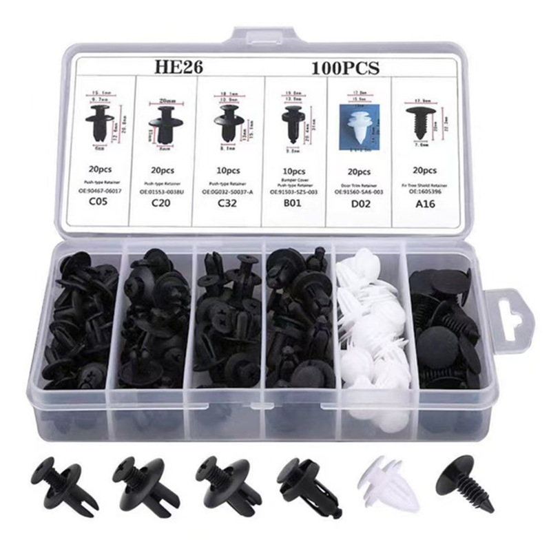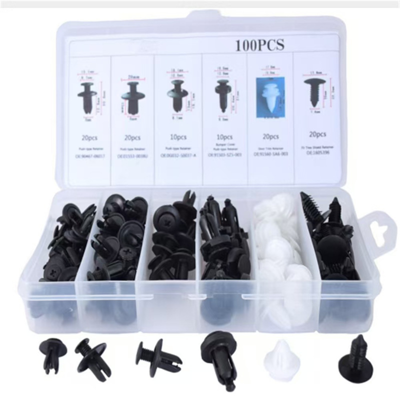 100PCS 박스형 버클 범용 범퍼 펜더 도어 패널 내부 확장 나사 클립 자동차 버클스토어 가기