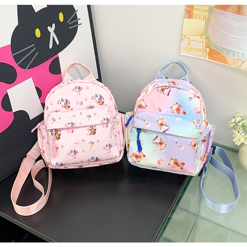 국경 간 만화 산리오 배낭 Kuromi 어린이 작은 학교 가방 Capibala 배낭 귀여운 학생 가방