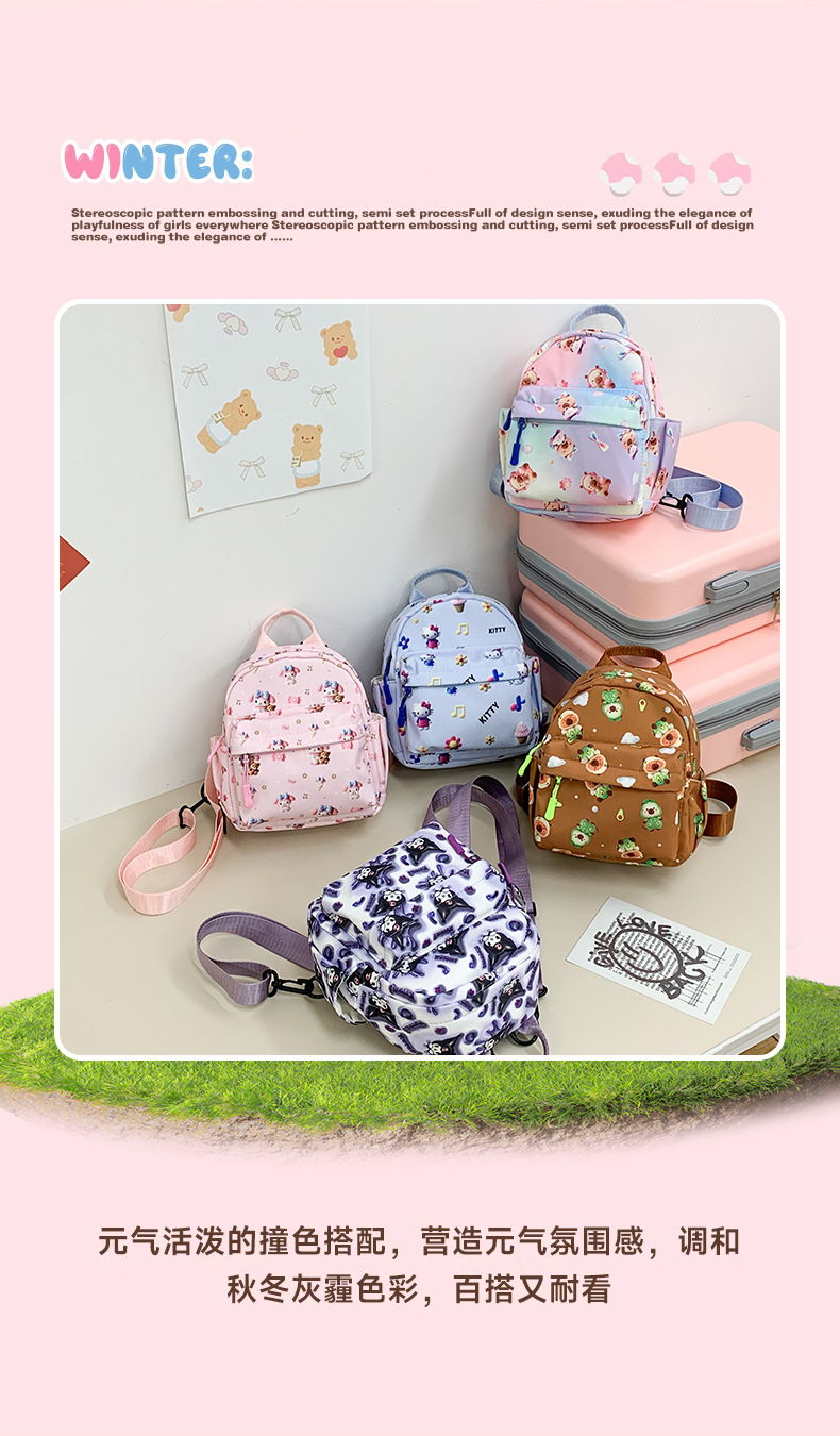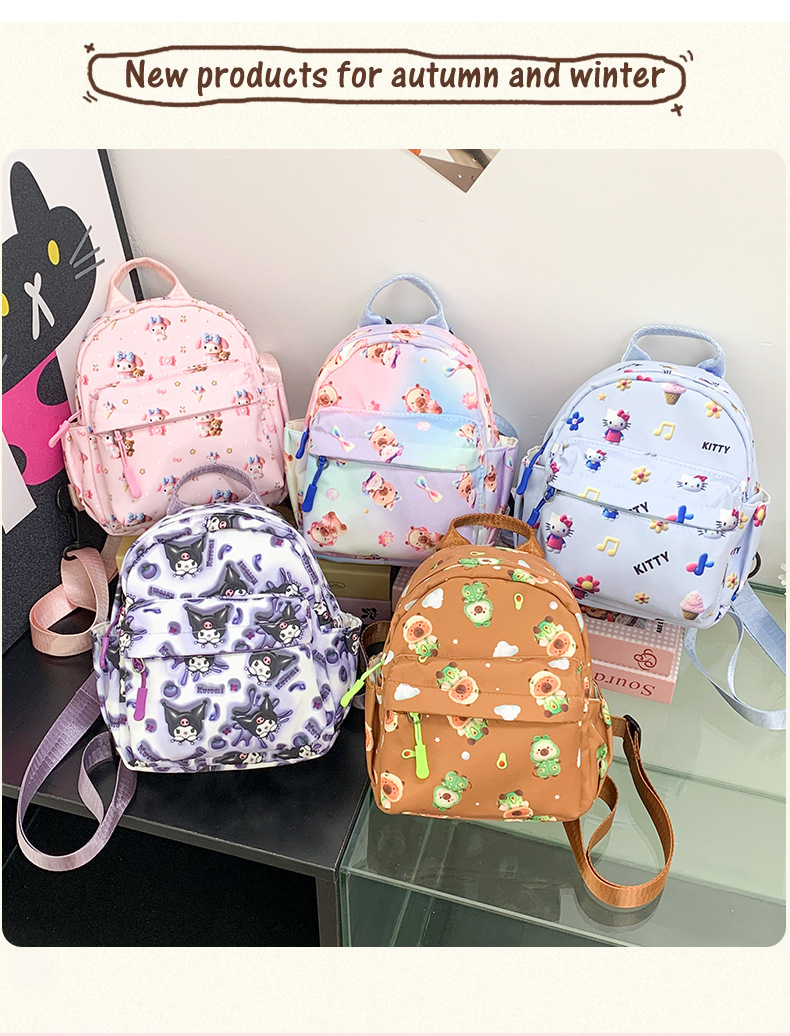 국경 간 만화 산리오 배낭 Kuromi 어린이 작은 학교 가방 Capibala 배낭 귀여운 학생 가방스토어 가기