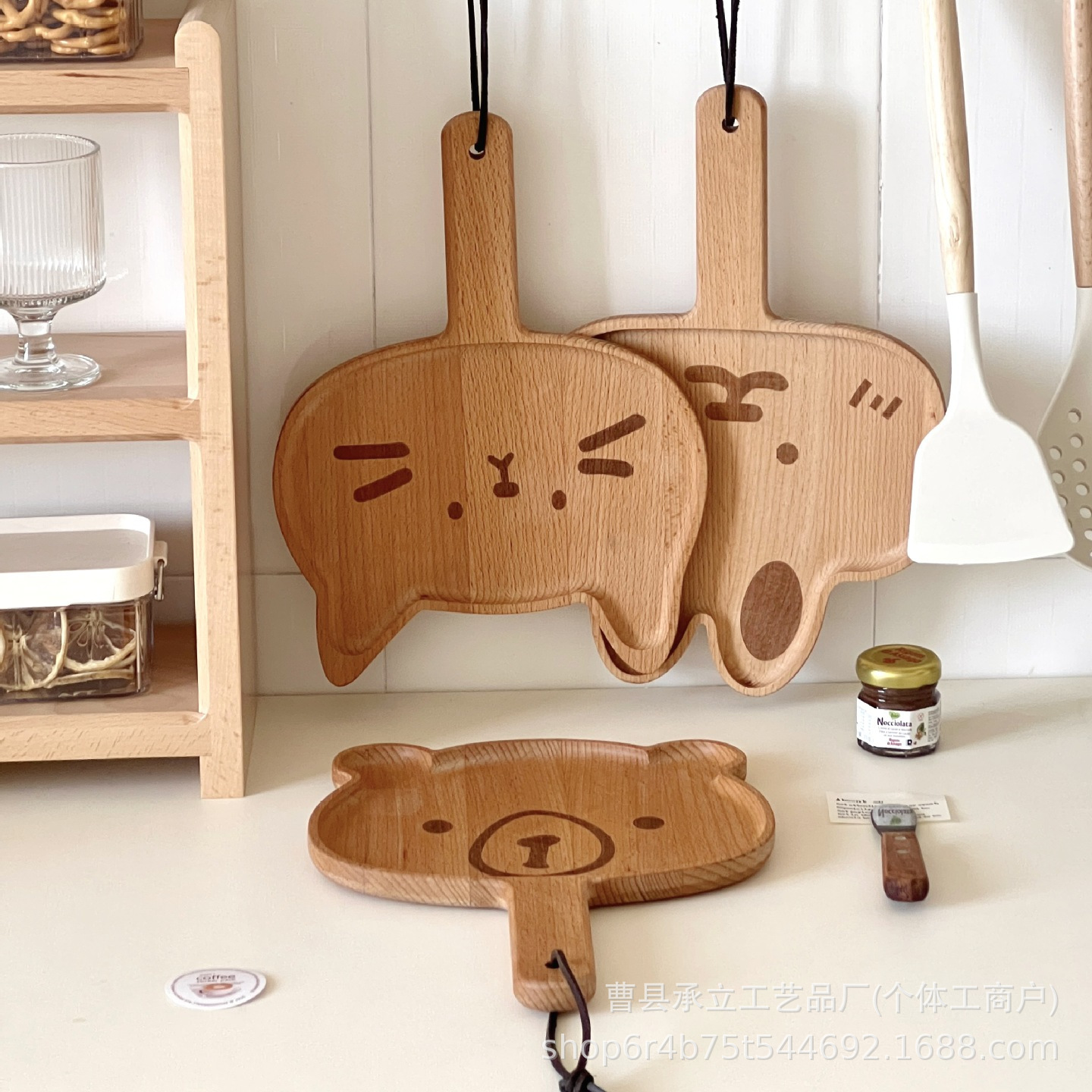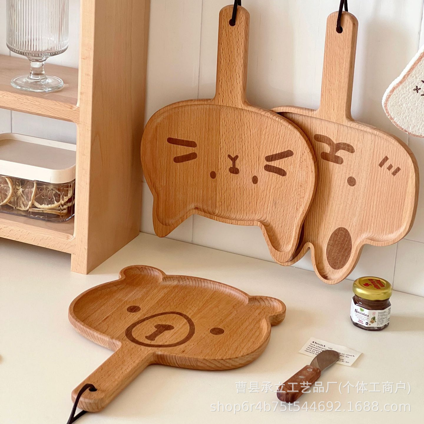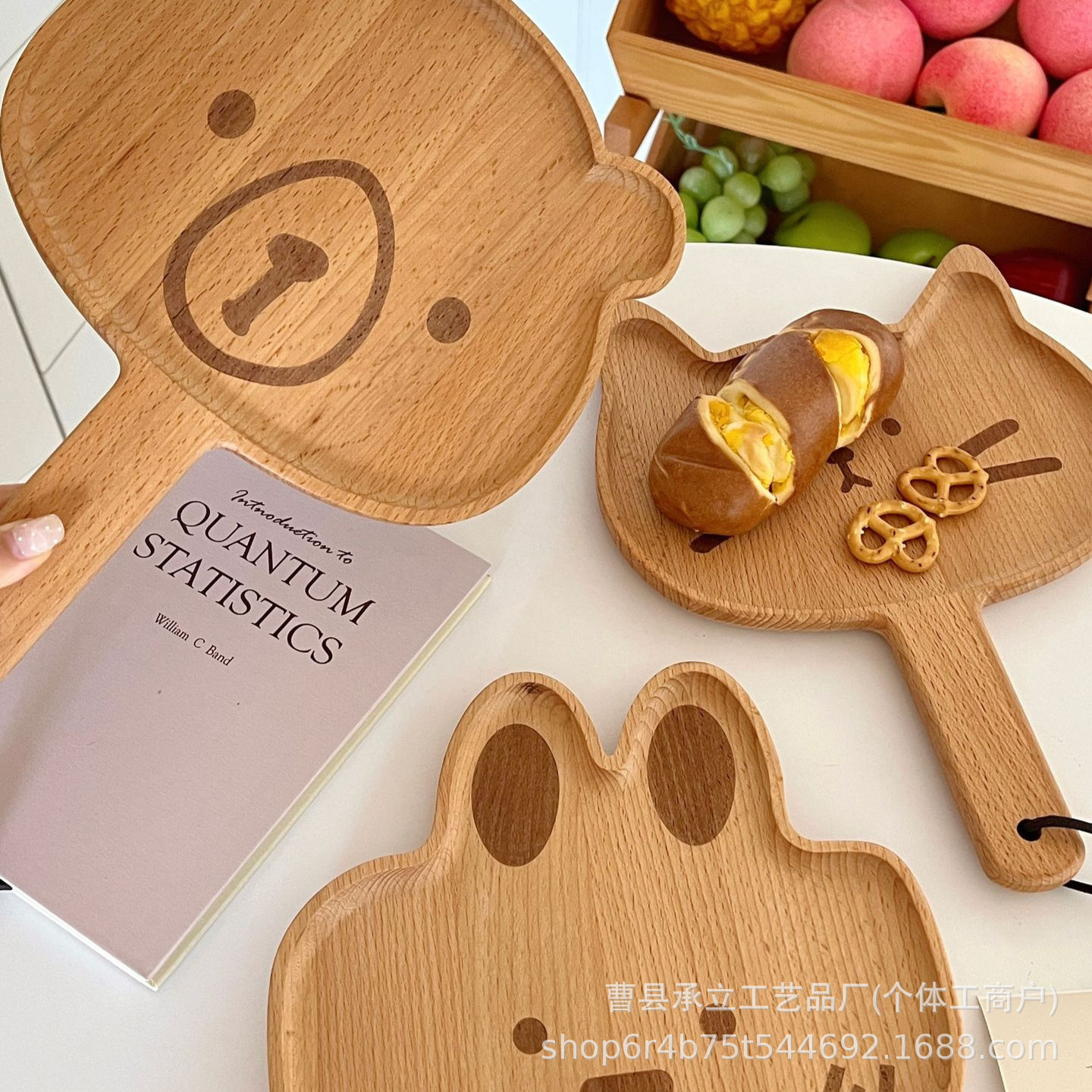맞춤형 너도밤나무 트레이, 손잡이가 있는 주방 서빙 트레이, 만화 어린이 아침 식사 트레이, 과일 스낵 트레이스토어 가기