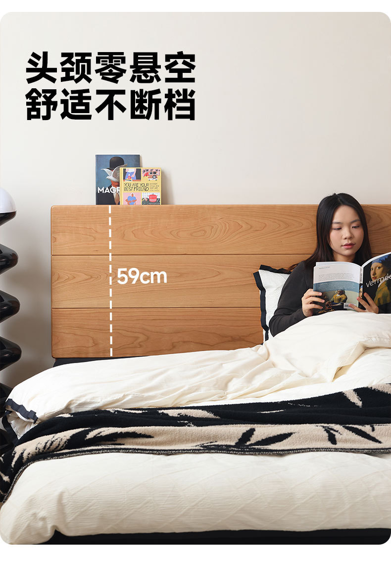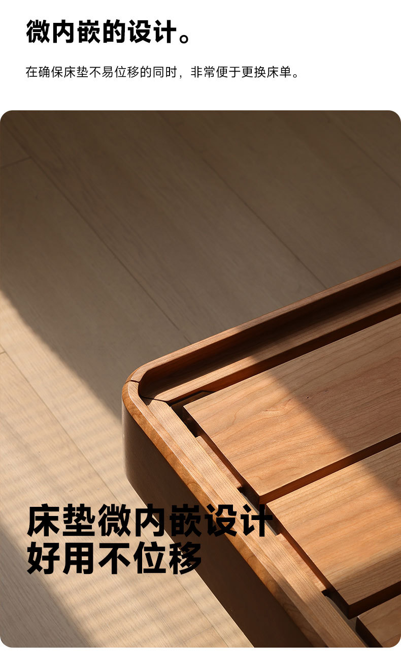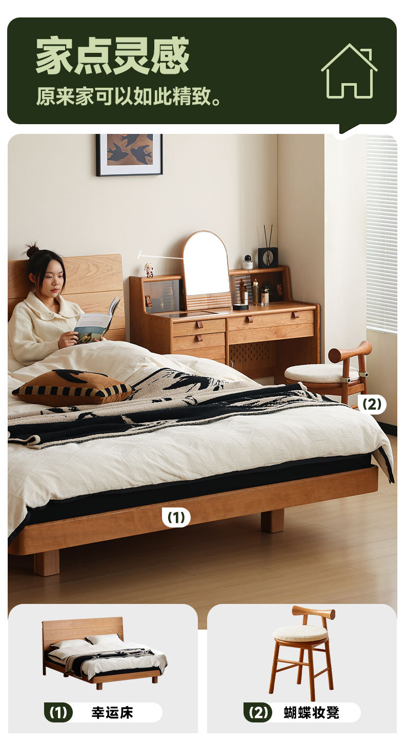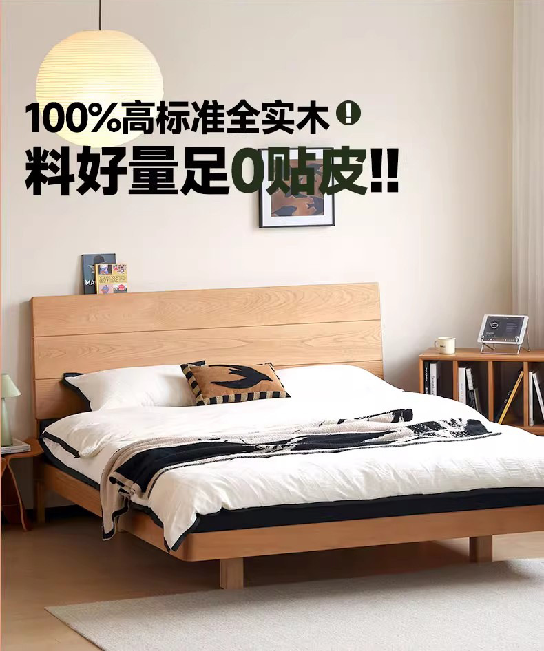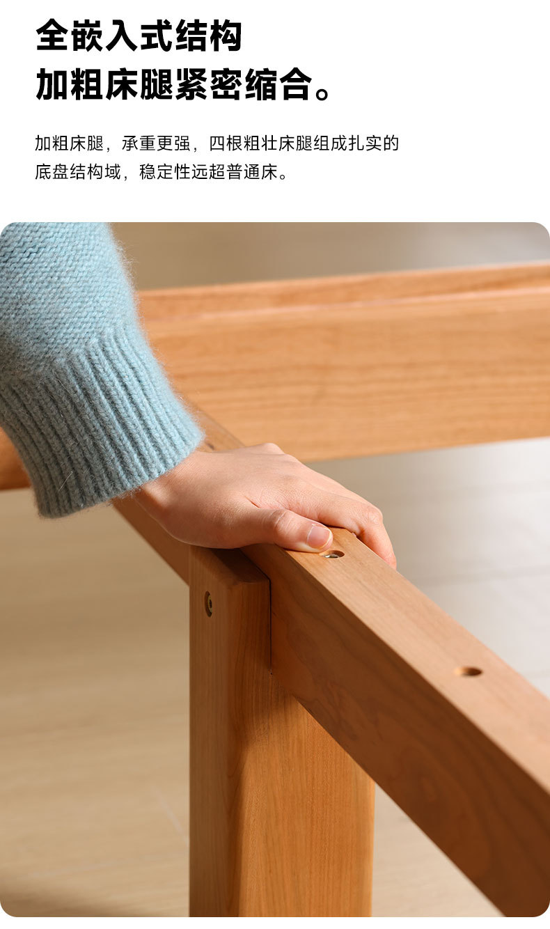 북유럽 3피스 원목 웨딩 침대, 소형 아파트, 전체 체리 우드 서스펜션 침대, 모던하고 심플한 일본식 통나무 더블 침대스토어 가기