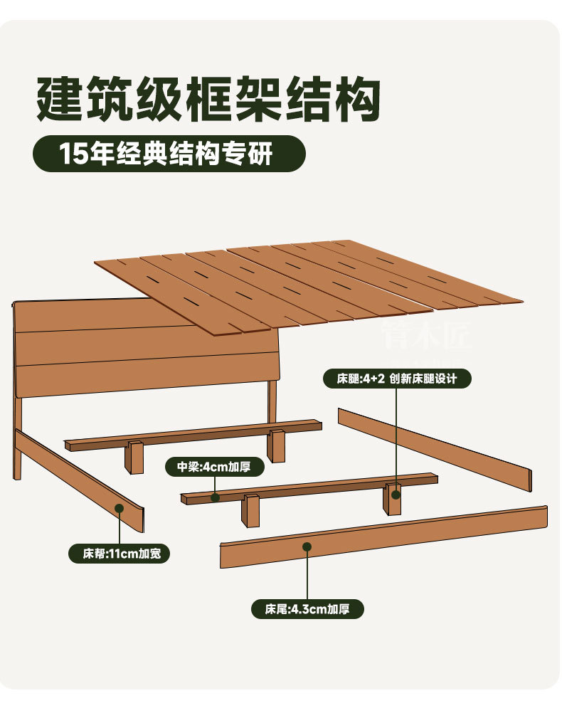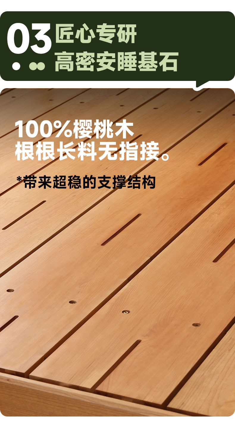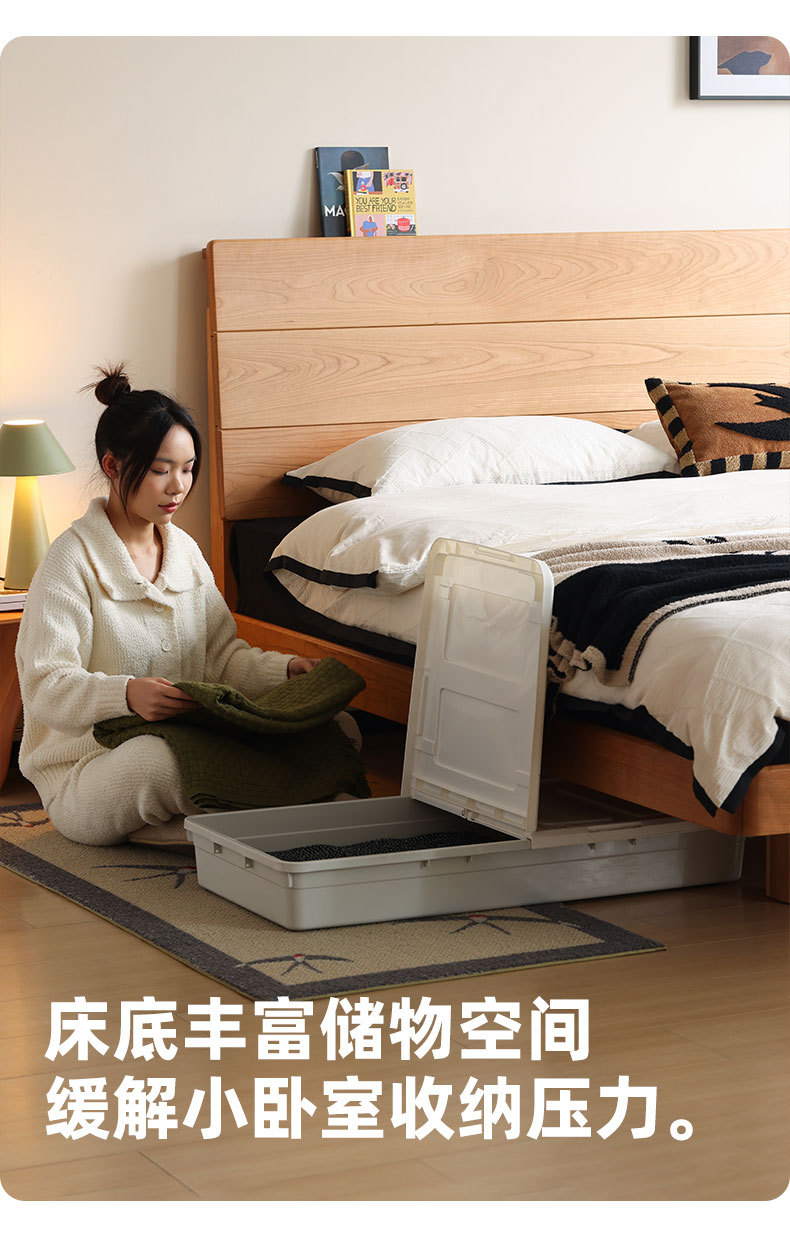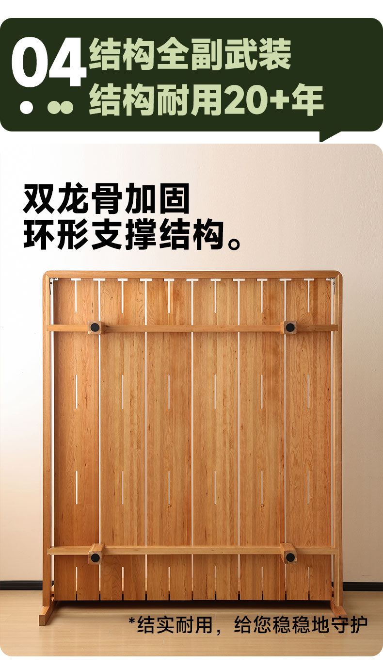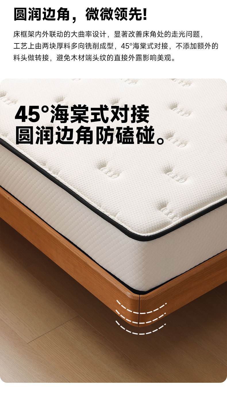 북유럽 3피스 원목 웨딩 침대, 소형 아파트, 전체 체리 우드 서스펜션 침대, 모던하고 심플한 일본식 통나무 더블 침대스토어 가기