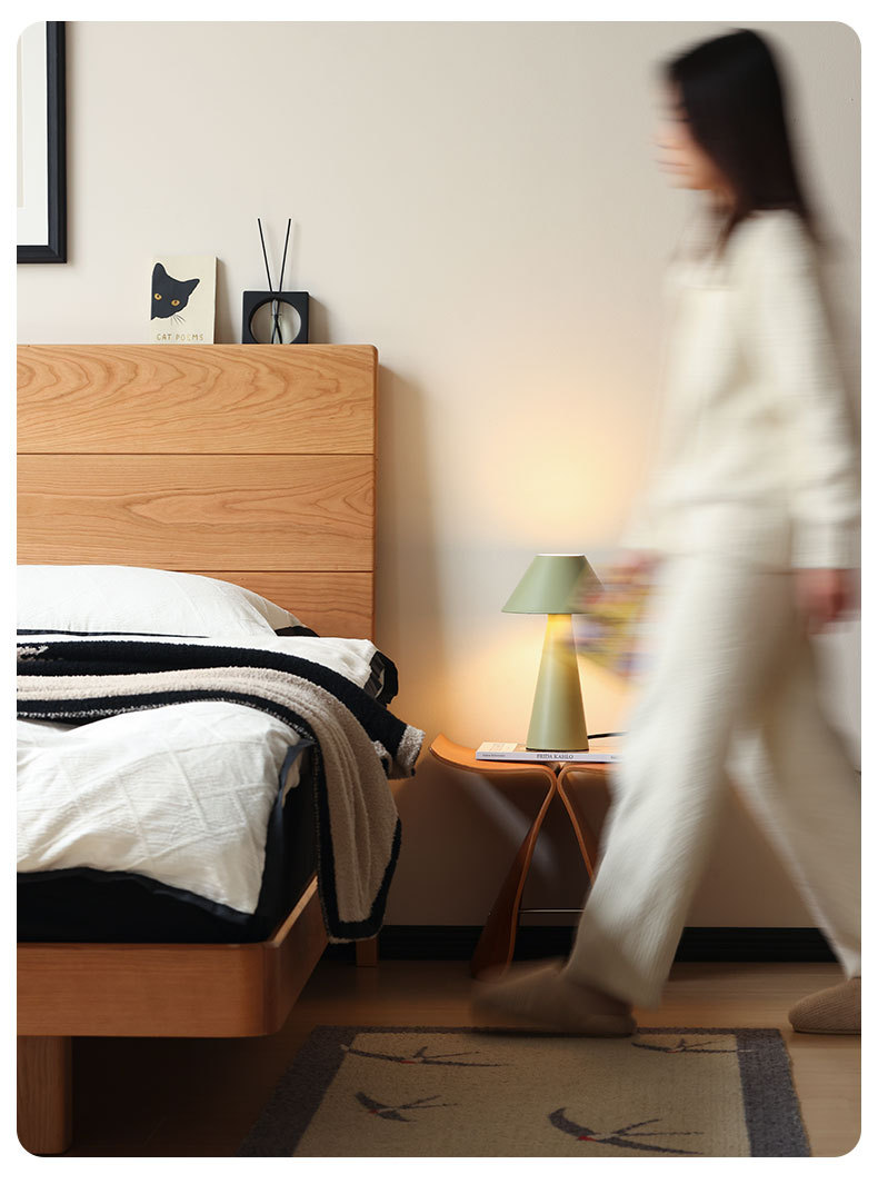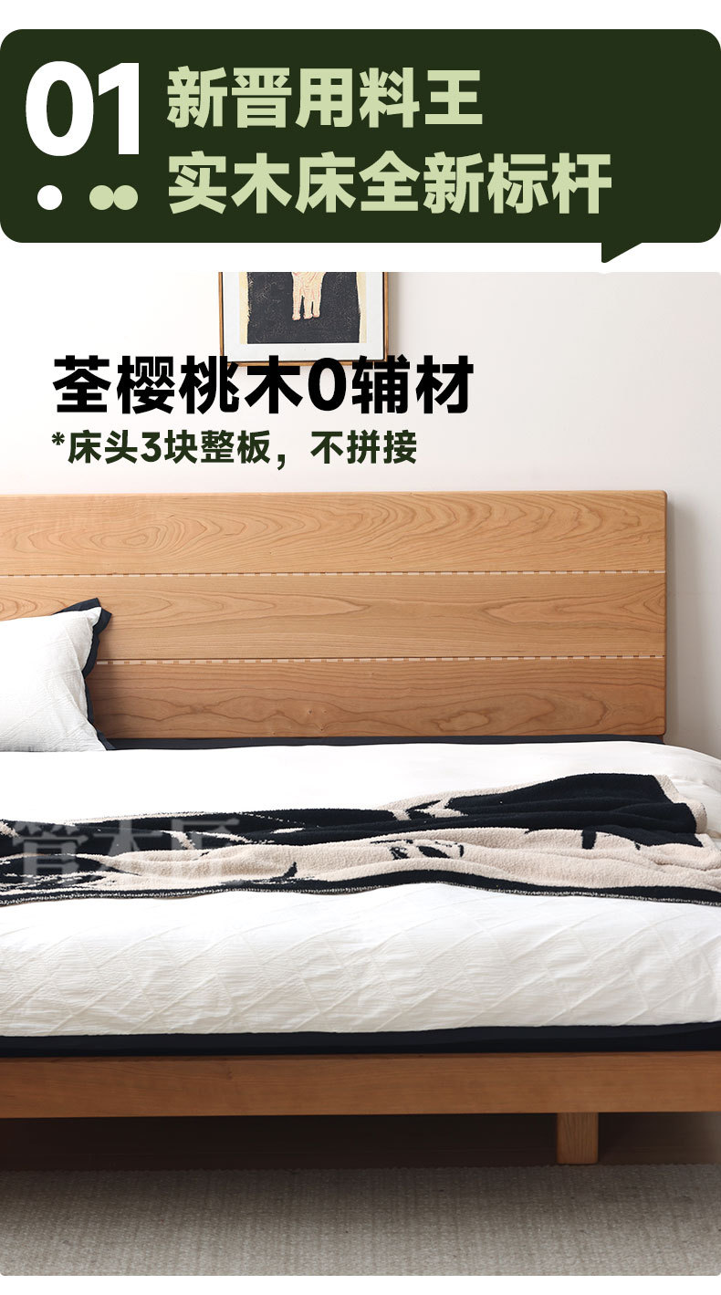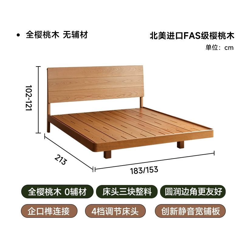 북유럽 3피스 원목 웨딩 침대, 소형 아파트, 전체 체리 우드 서스펜션 침대, 모던하고 심플한 일본식 통나무 더블 침대