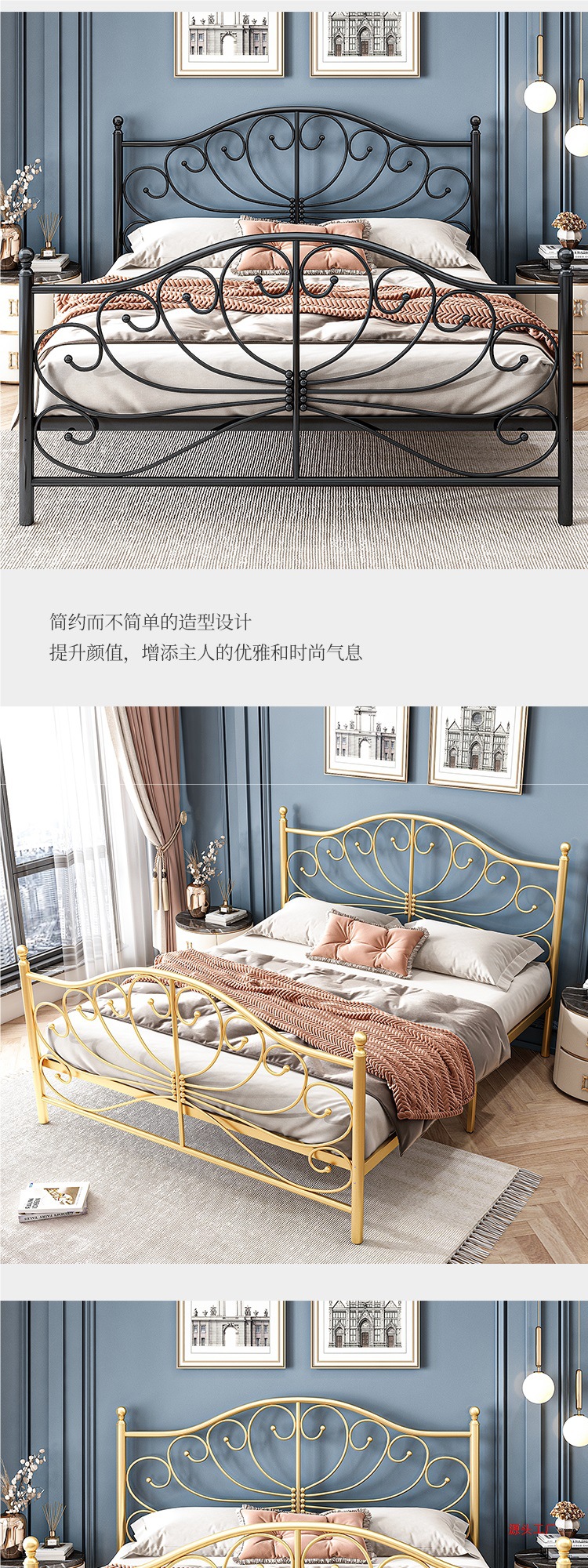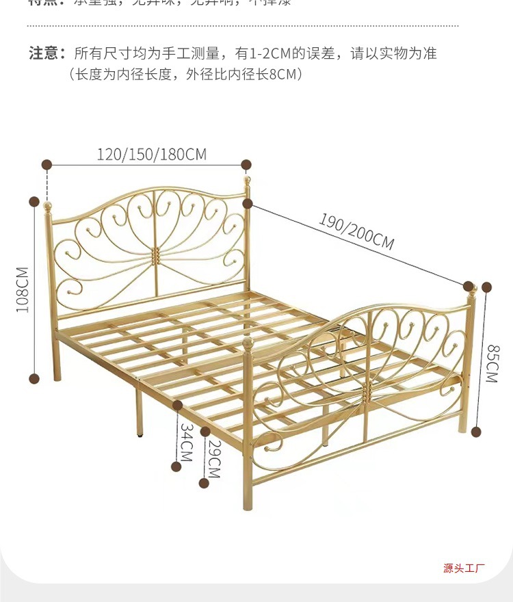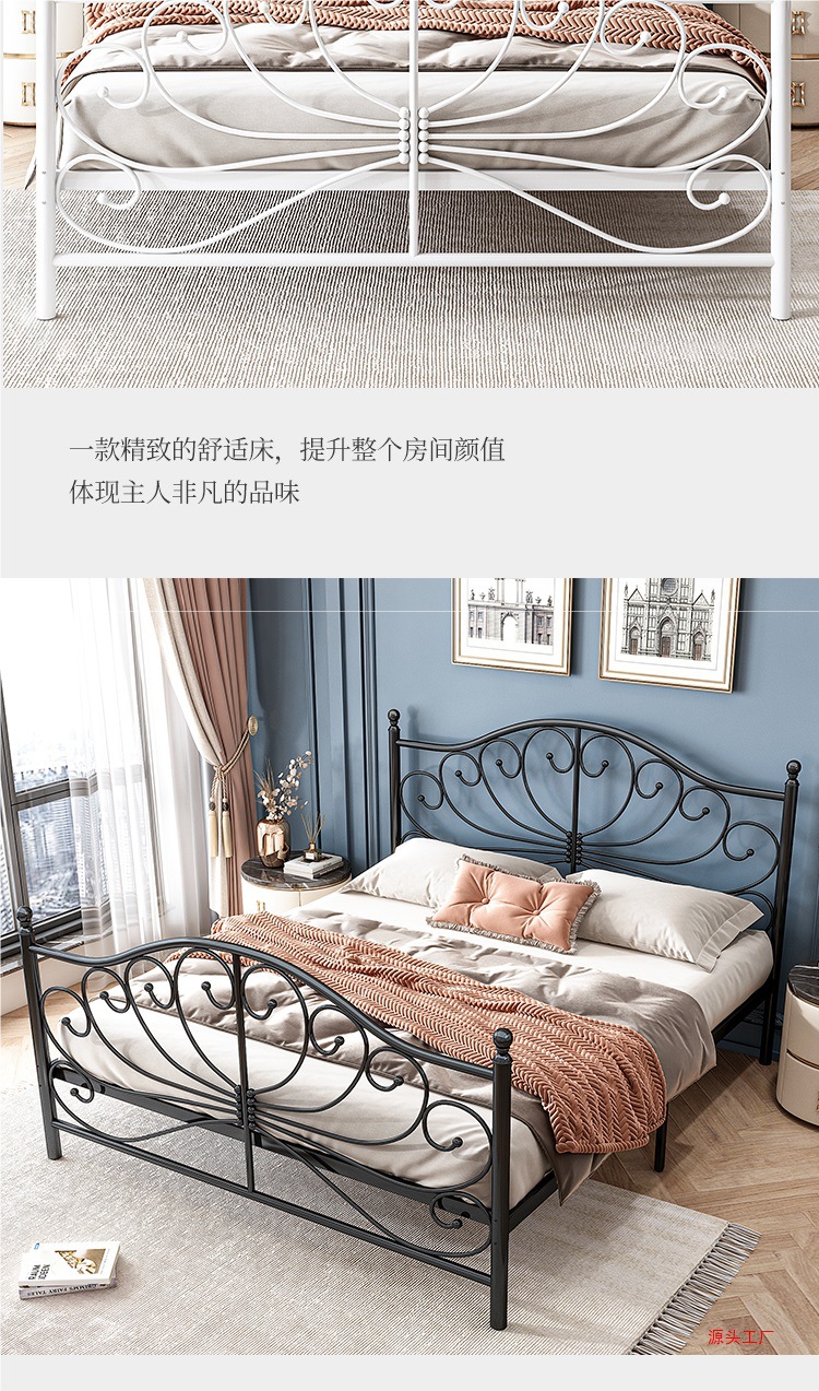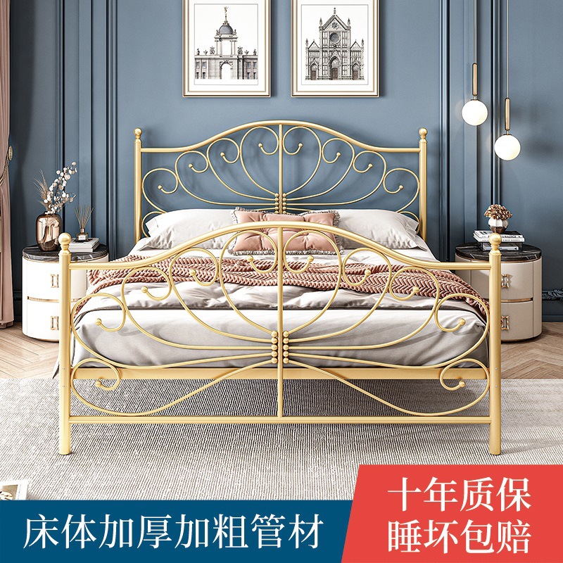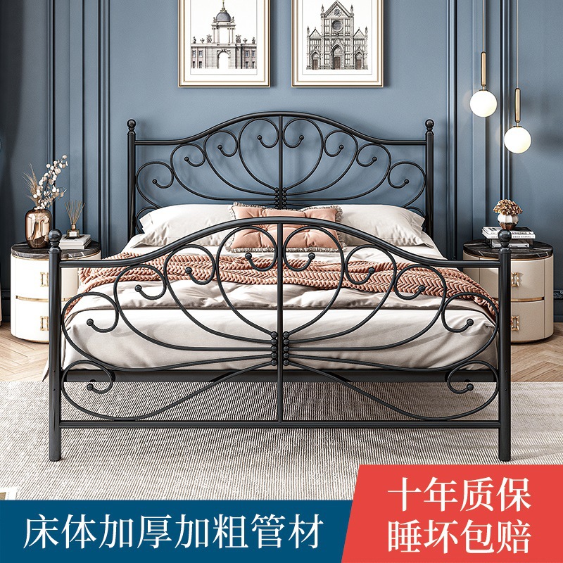 공주 철 침대 유럽 스타일 가정용 더블 철 침대 여자 기숙사 철 프레임 침대 1.68m 두꺼운 아파트 침대스토어 가기