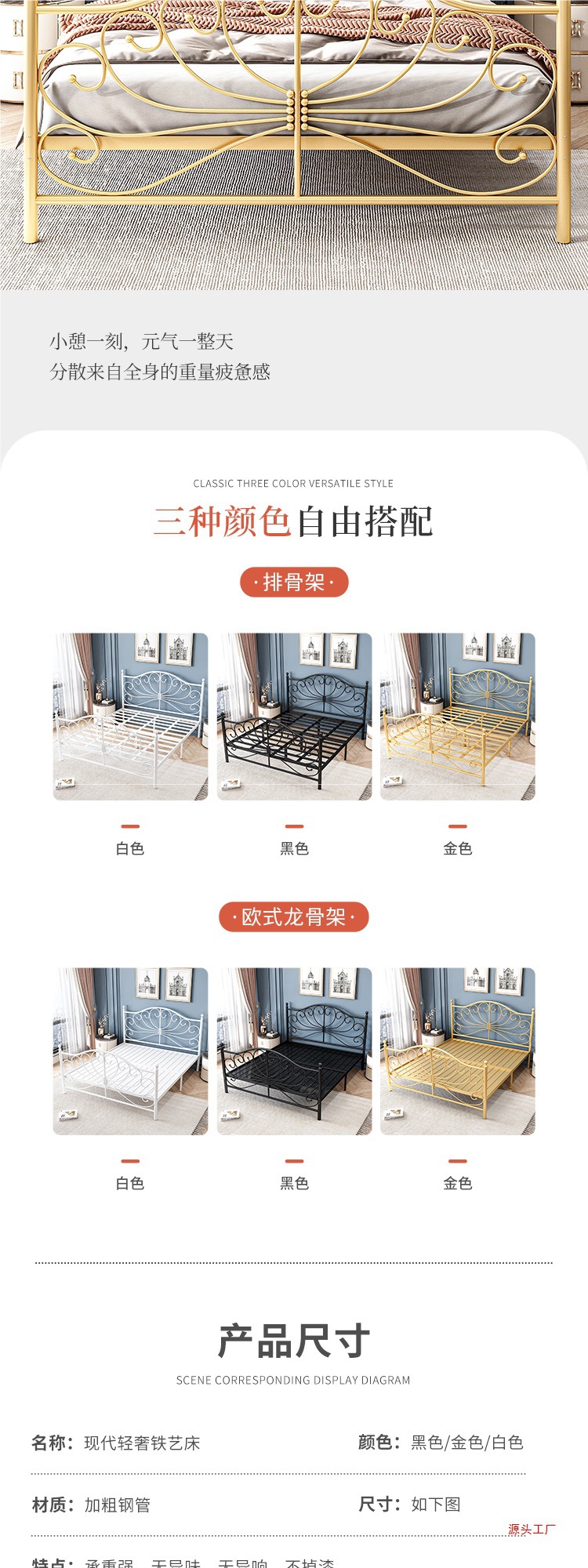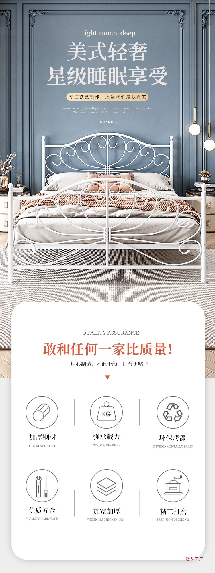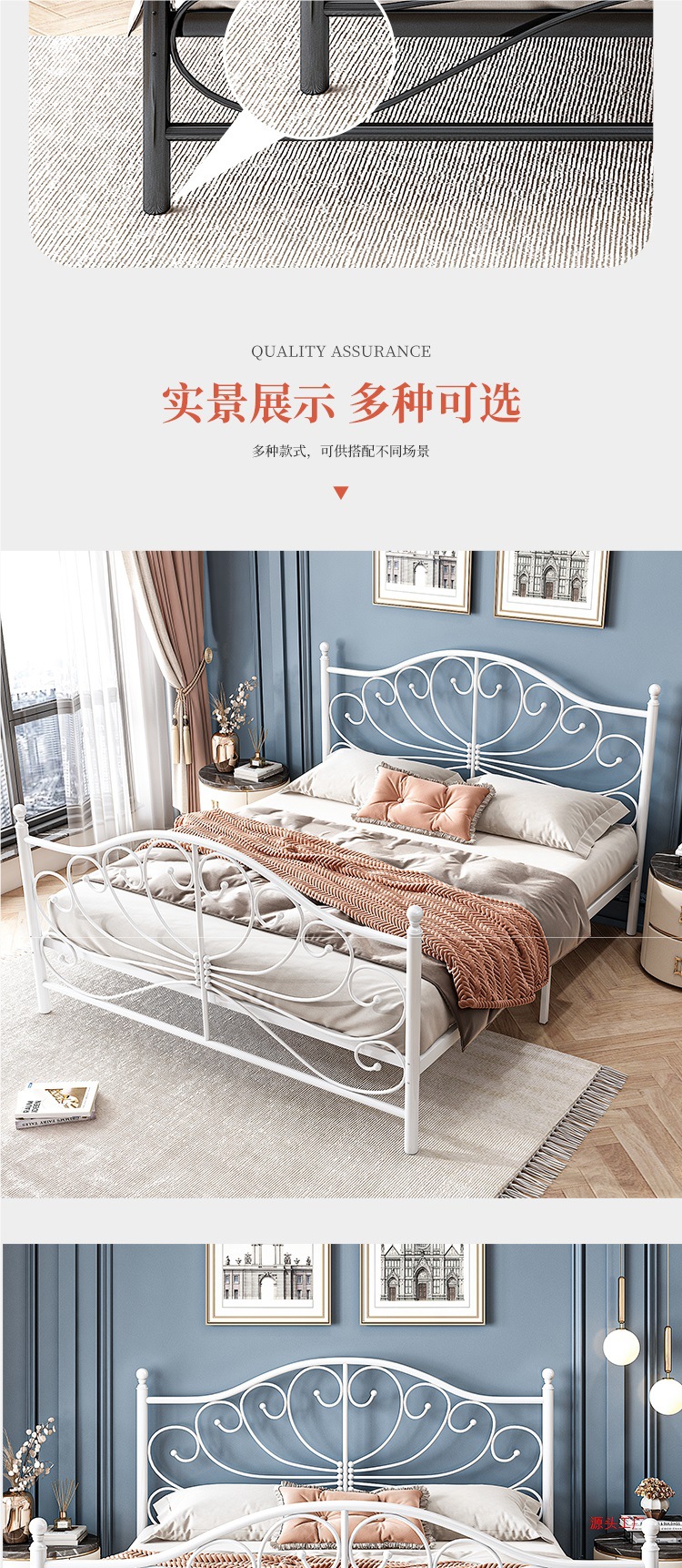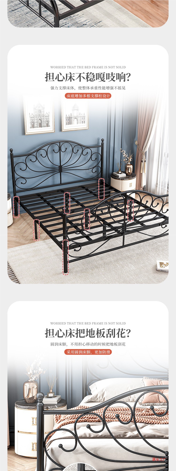 공주 철 침대 유럽 스타일 가정용 더블 철 침대 여자 기숙사 철 프레임 침대 1.68m 두꺼운 아파트 침대스토어 가기
