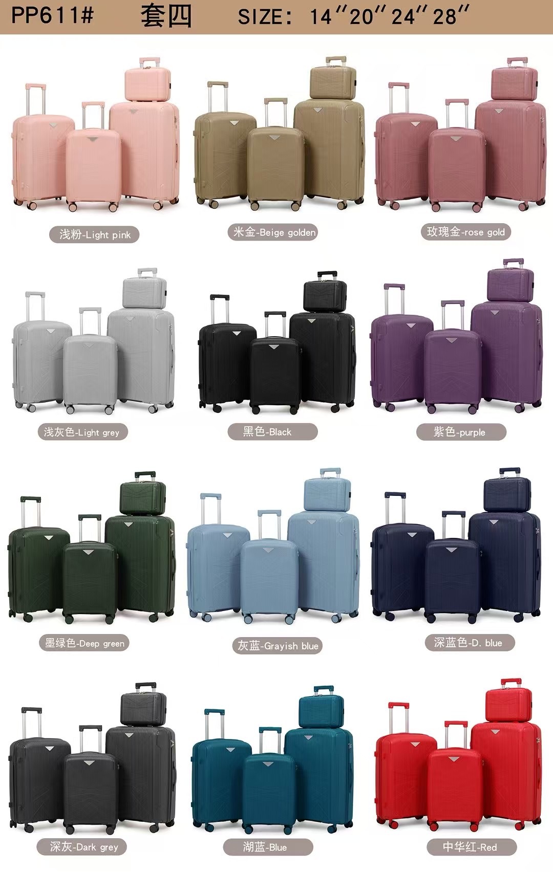 대용량 가방 새로운 pp 트롤리 케이스 14-20-24-28 단색 가방 자동 휠 제조 업체 도매스토어 가기